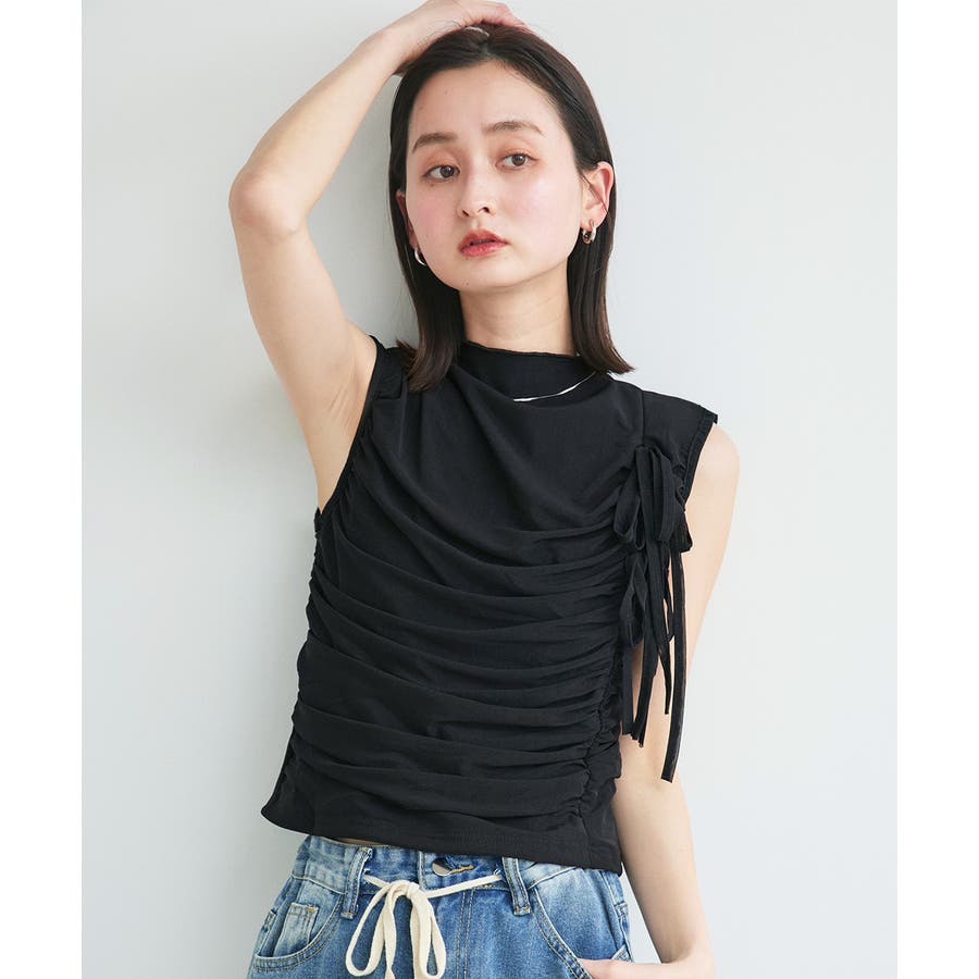サイドリボンギャザートップス