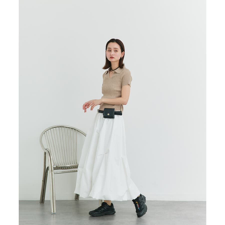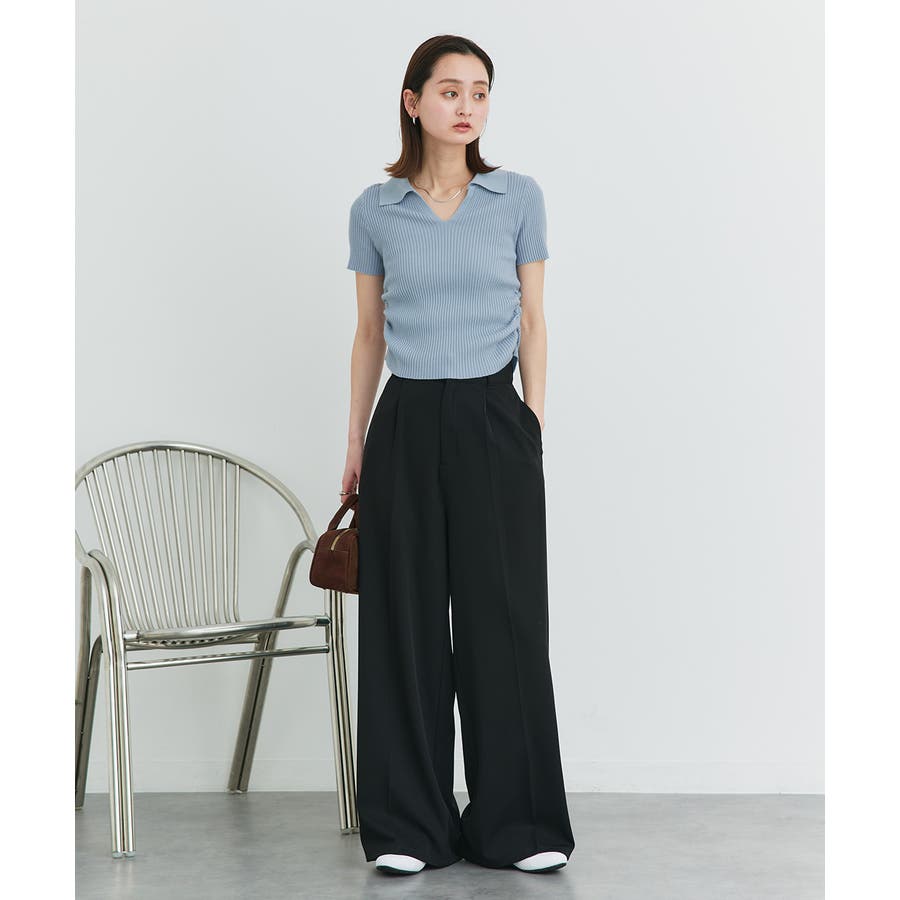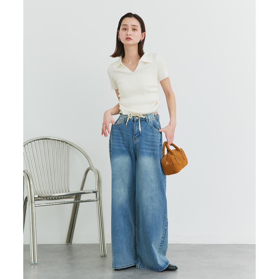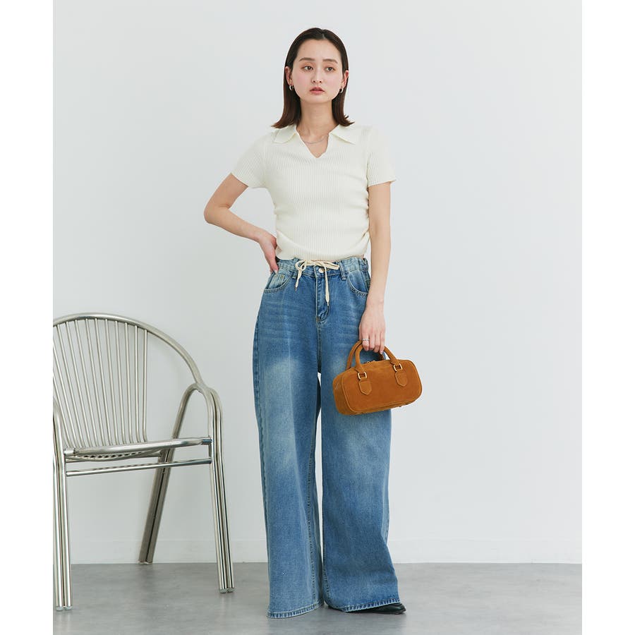 ハイウエスト&ワイドなシルエットのボトムスと合わせるとバランス良く着こなせます。