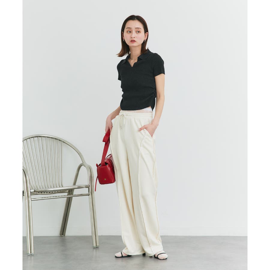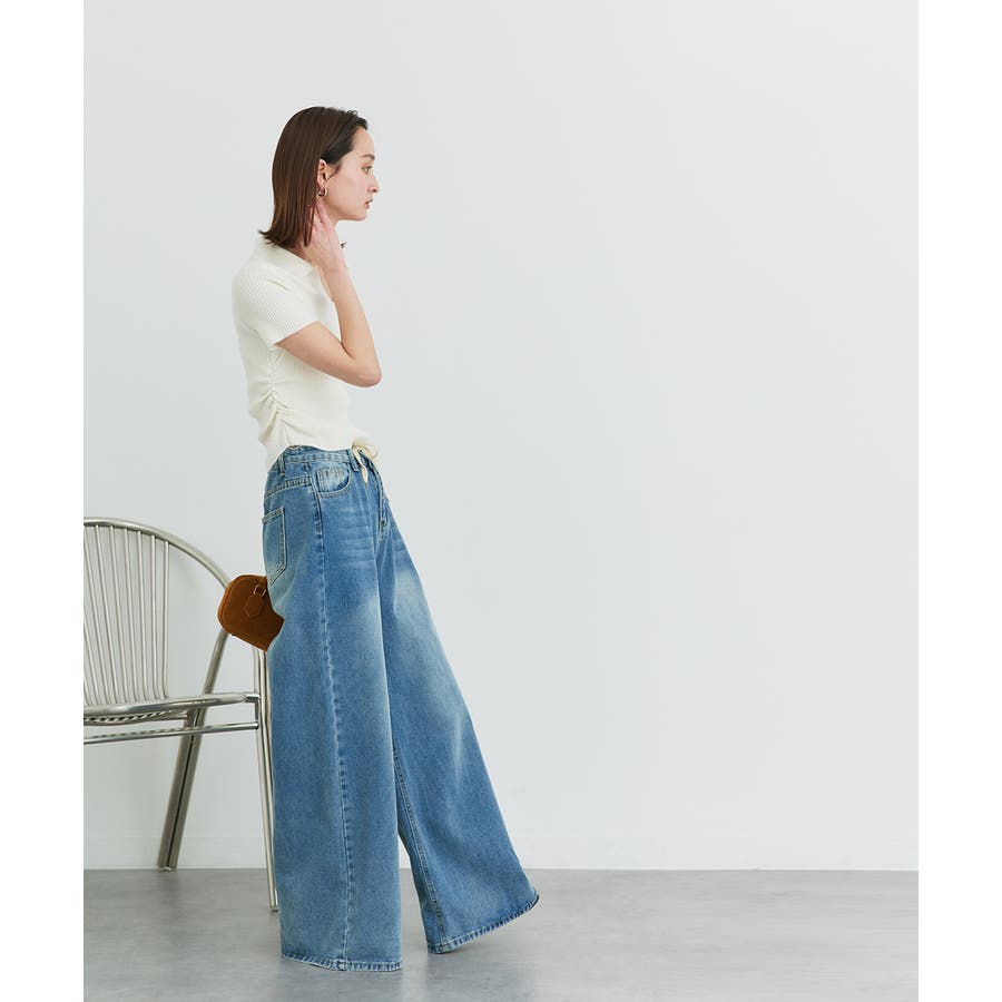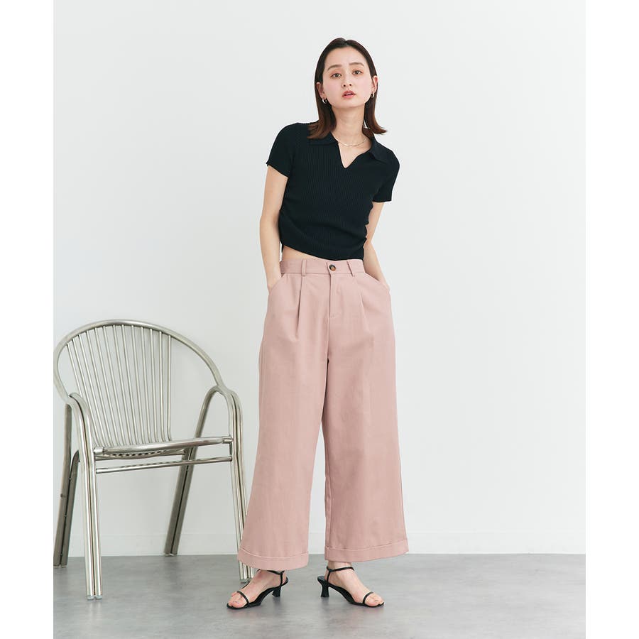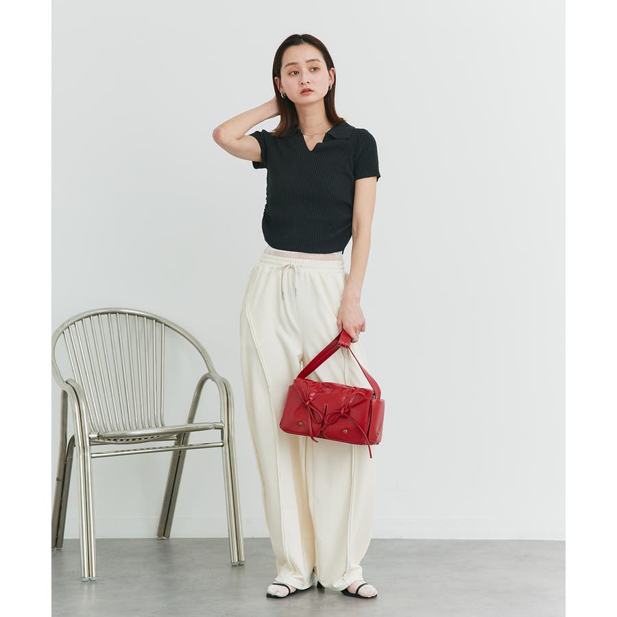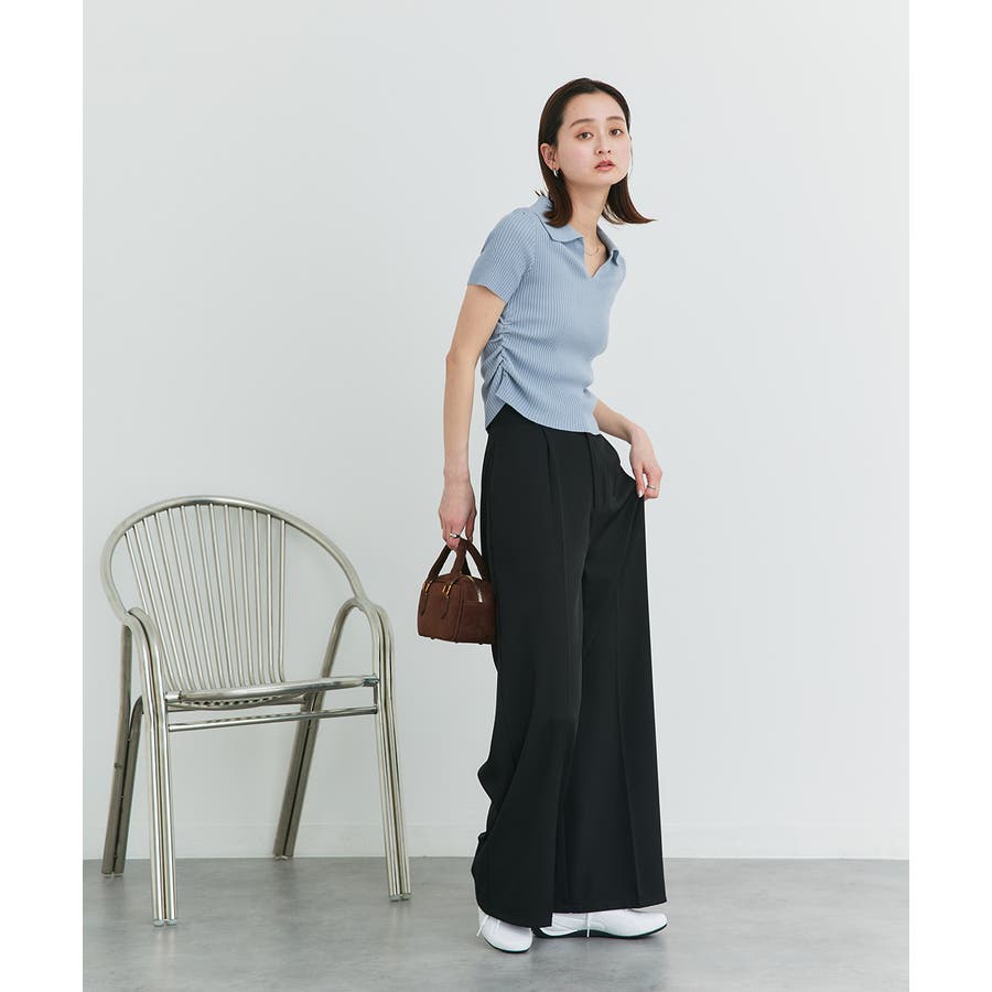 ハイウエスト&ワイドなシルエットのボトムスと合わせるとバランス良く着こなせます。