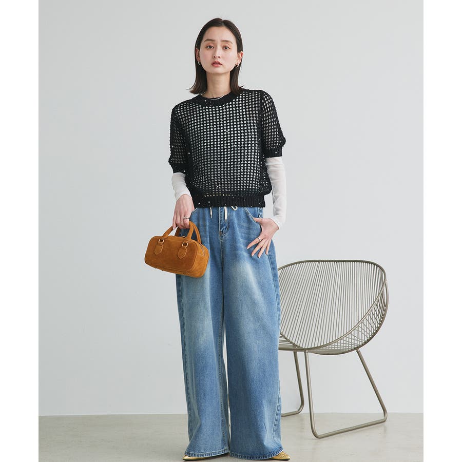 リラクシーなサイジングとスパンコールのラメ感でコーデが一気に華やかに。