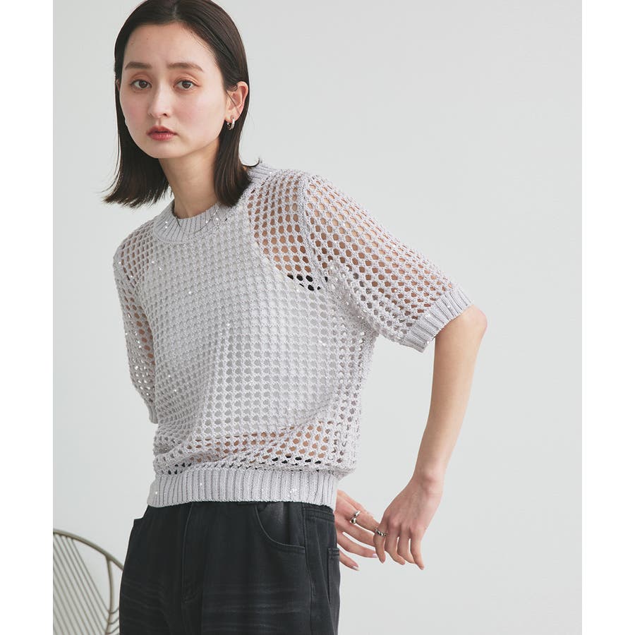 コーデに華やかさをプラスするスパンコールメッシュニット