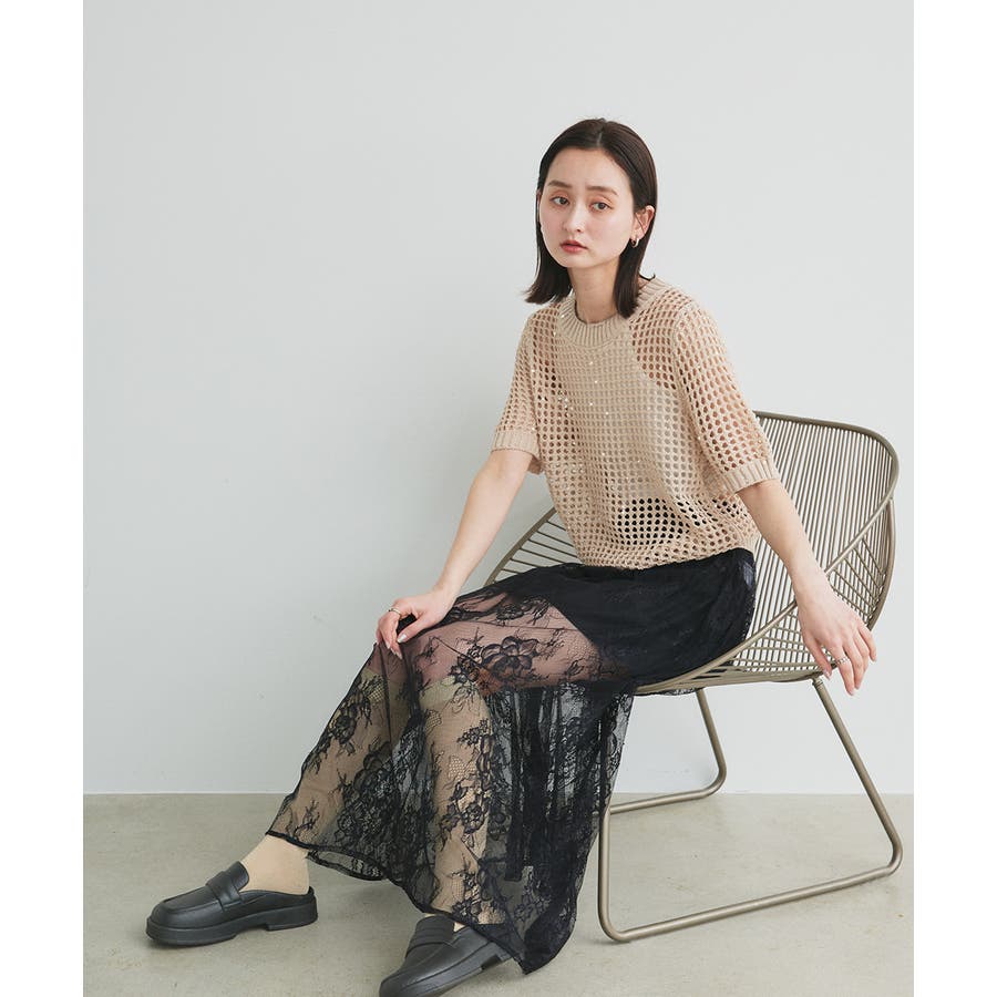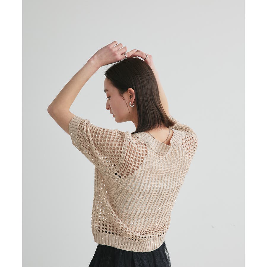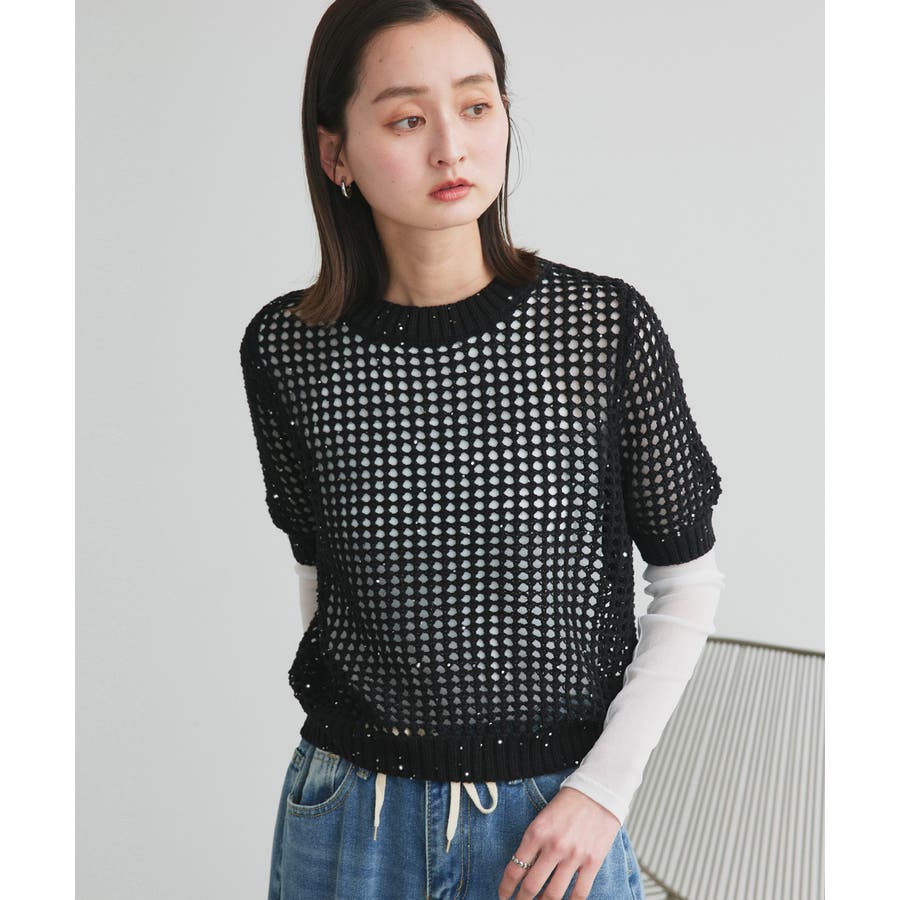 スパンコールメッシュニットプルオーバー