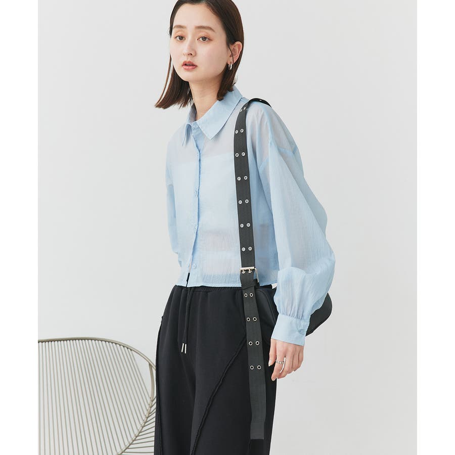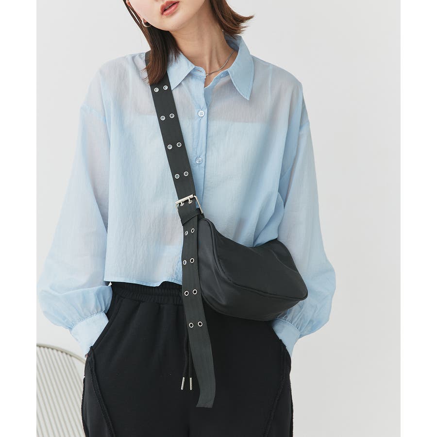ハトメデザインのショルダーがコーデにアクセントをプラスしてくれます。