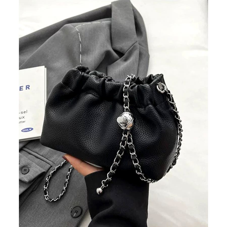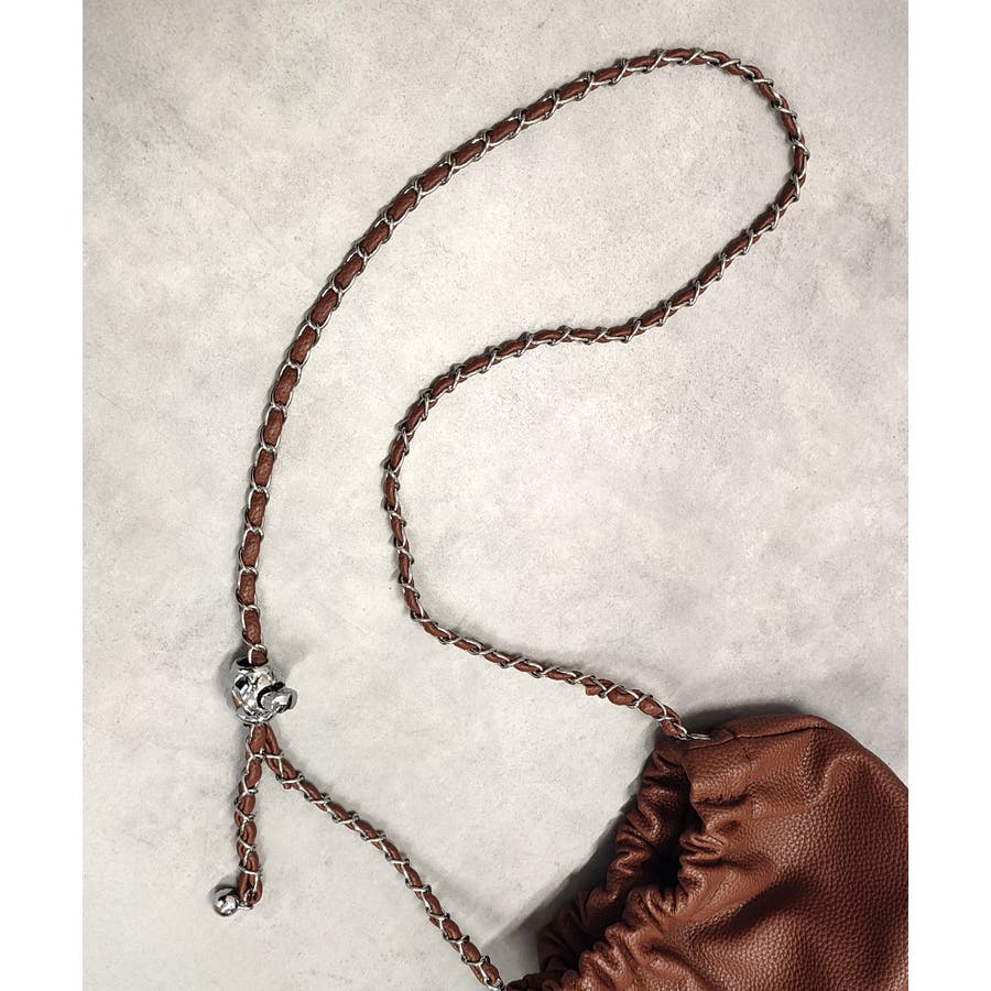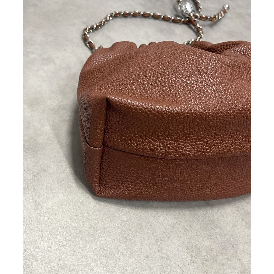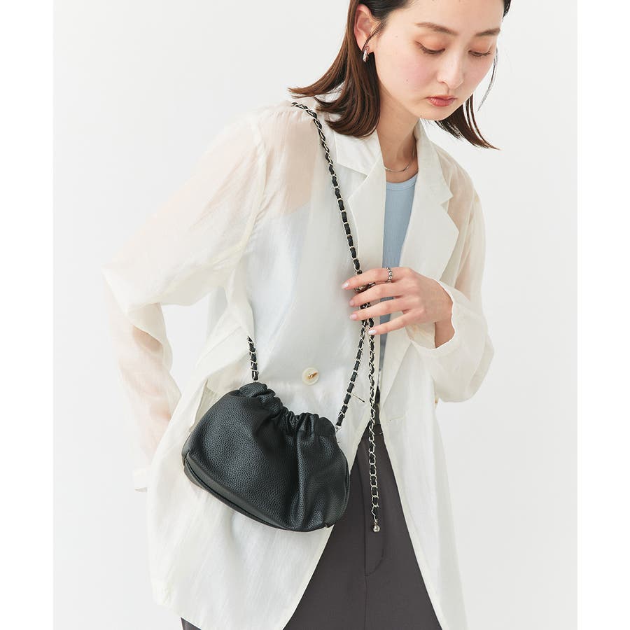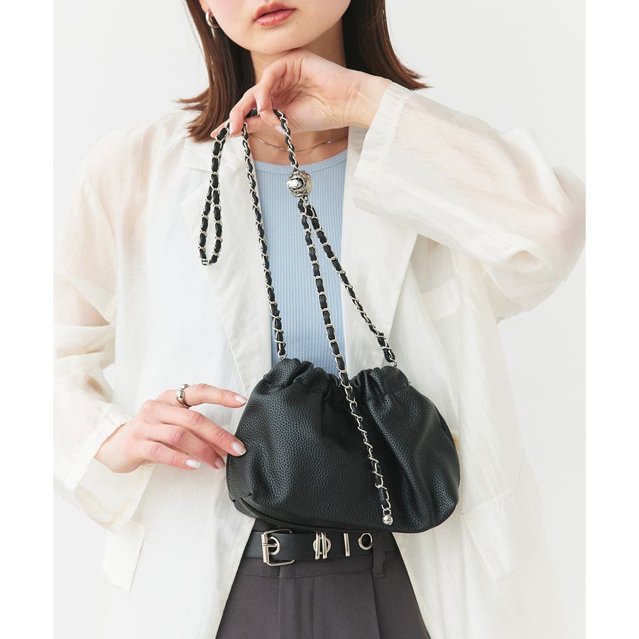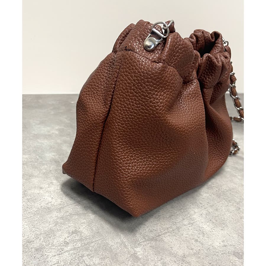 高級感あるチェーンショルダーで小ぶりなサイズ感が丁度良い巾着ショルダーバッグ。
