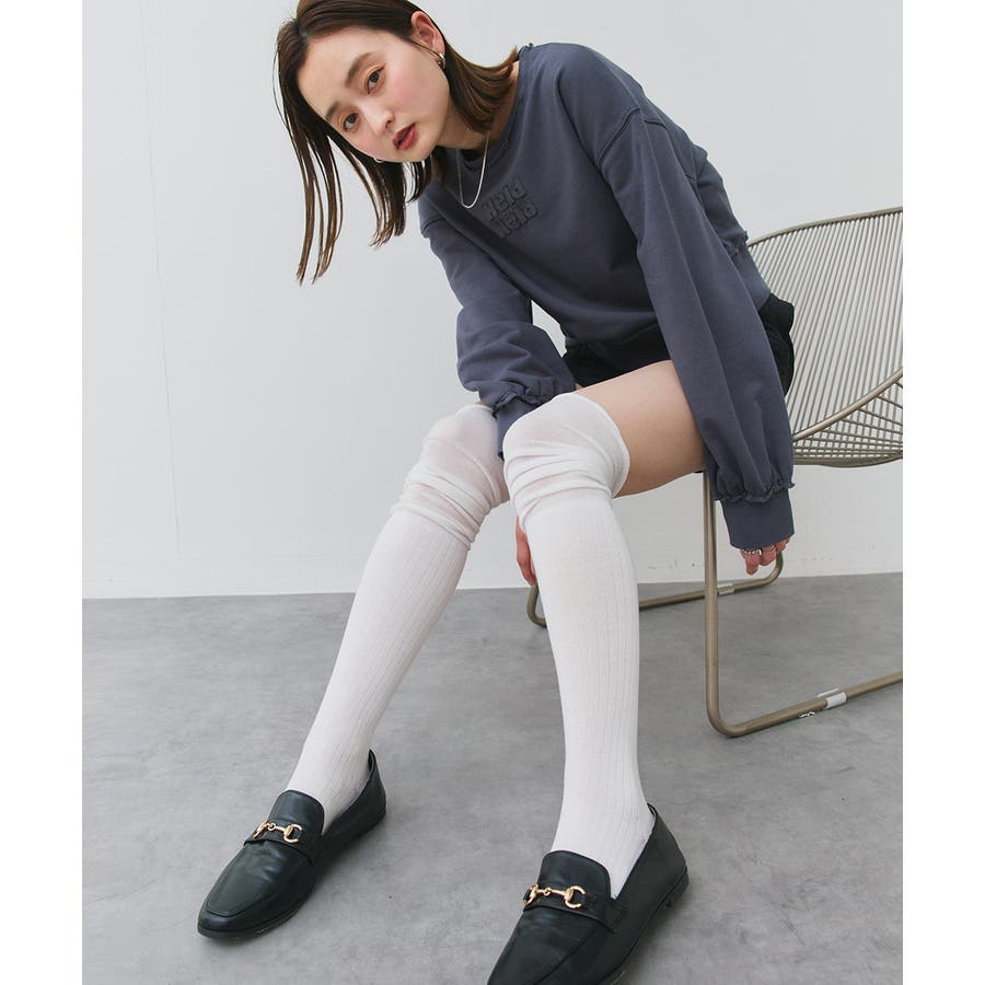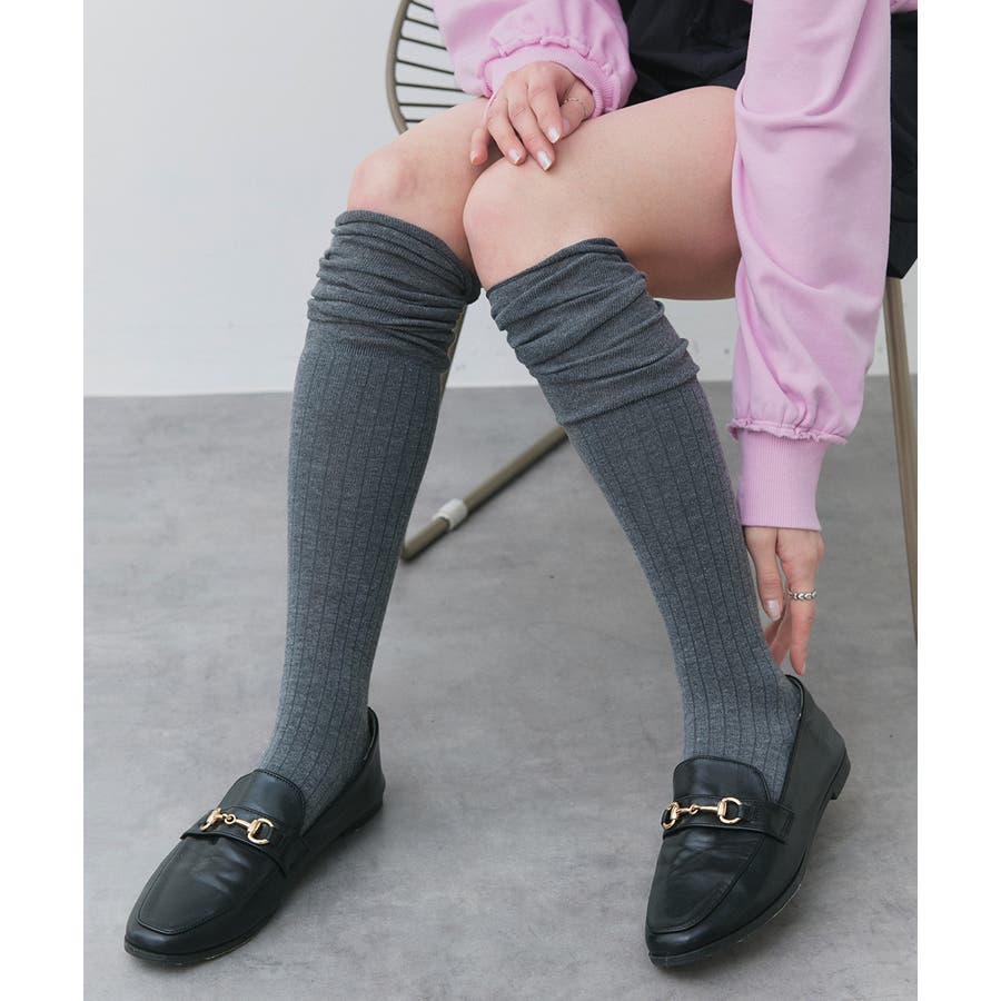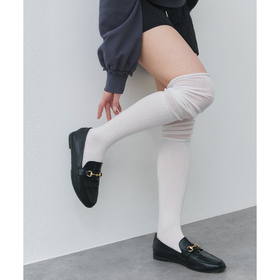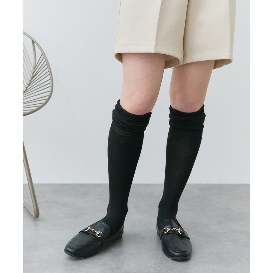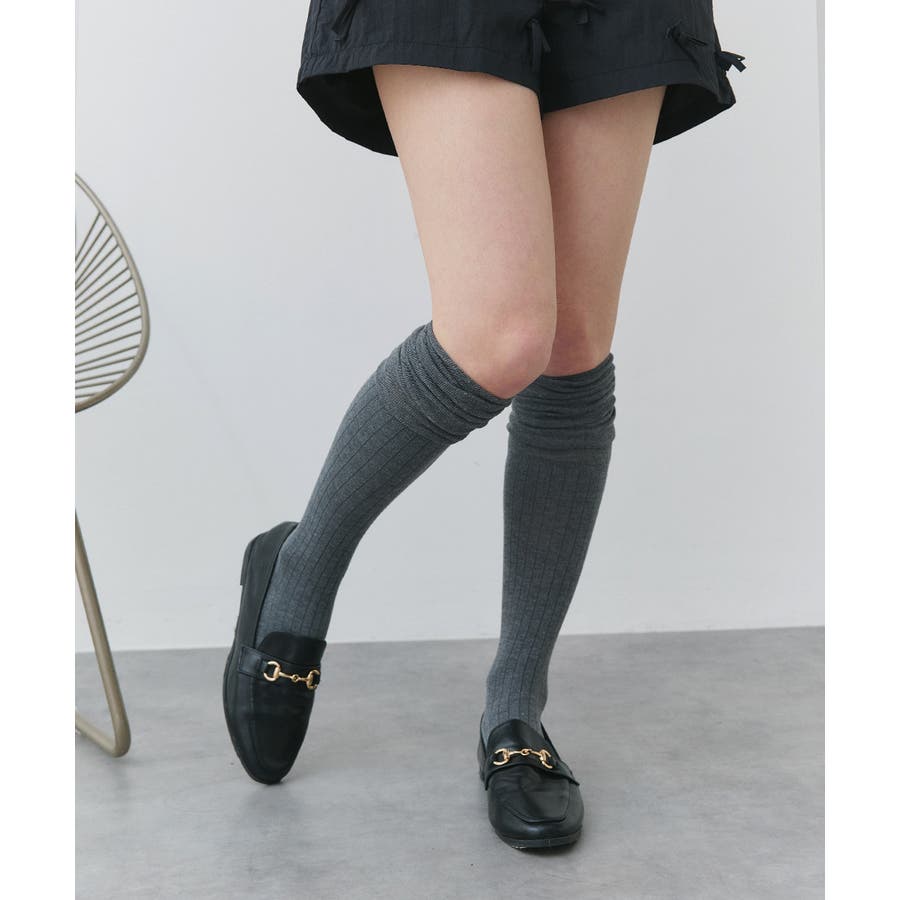 しっかりとしたリブでずれ落ちにくく、くしゅくしゅとしたルーズデザインがポイントの1足。