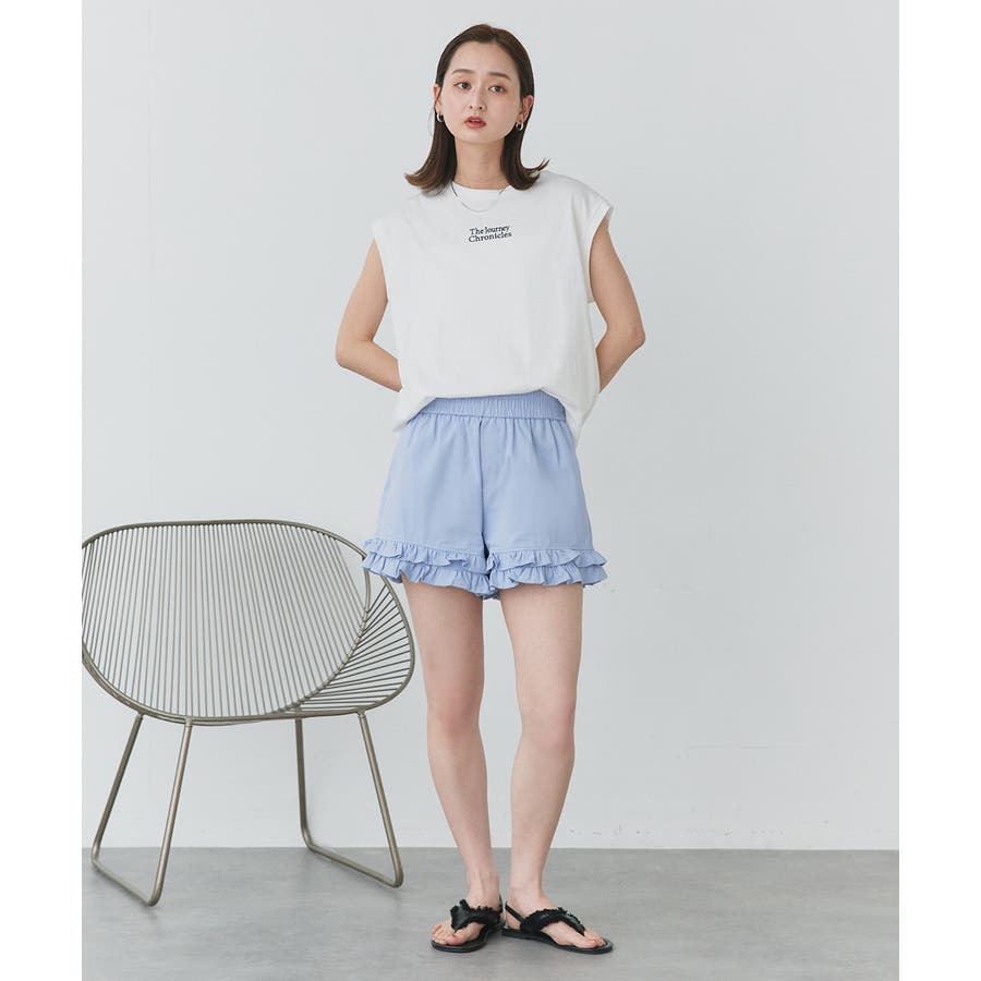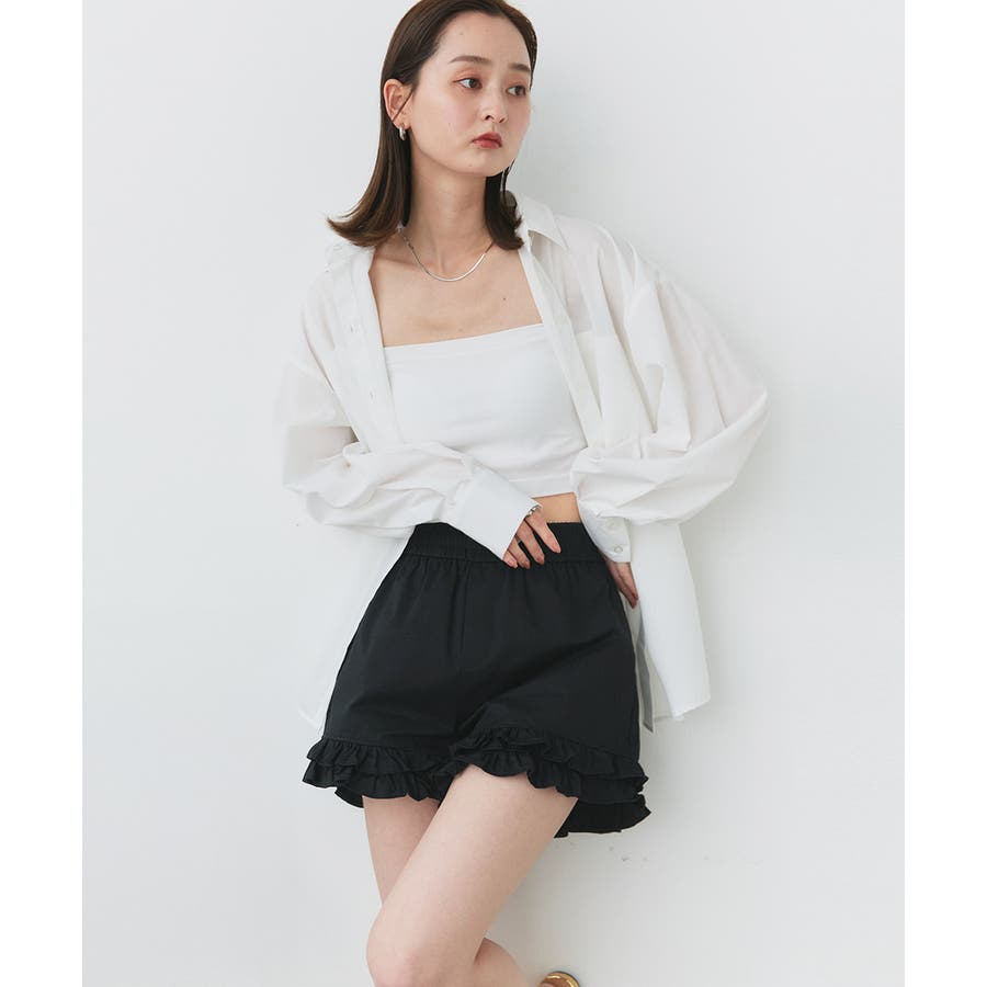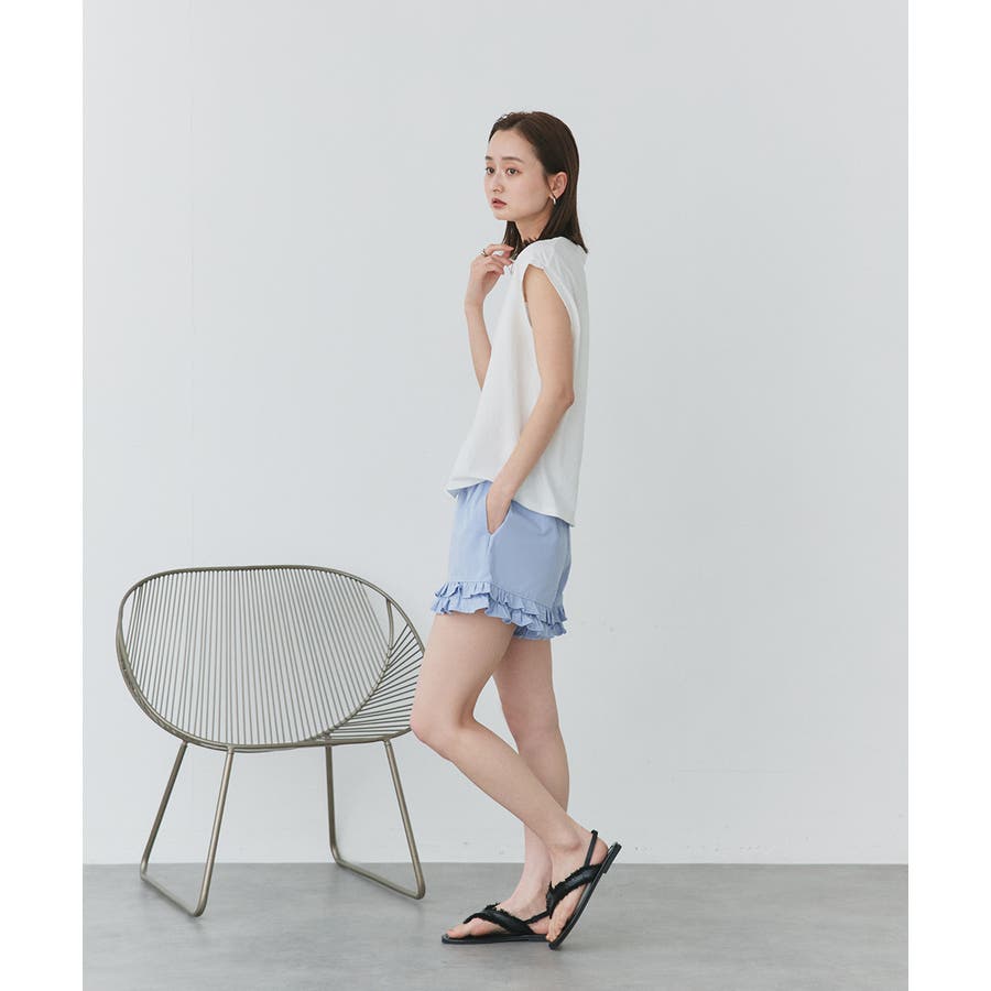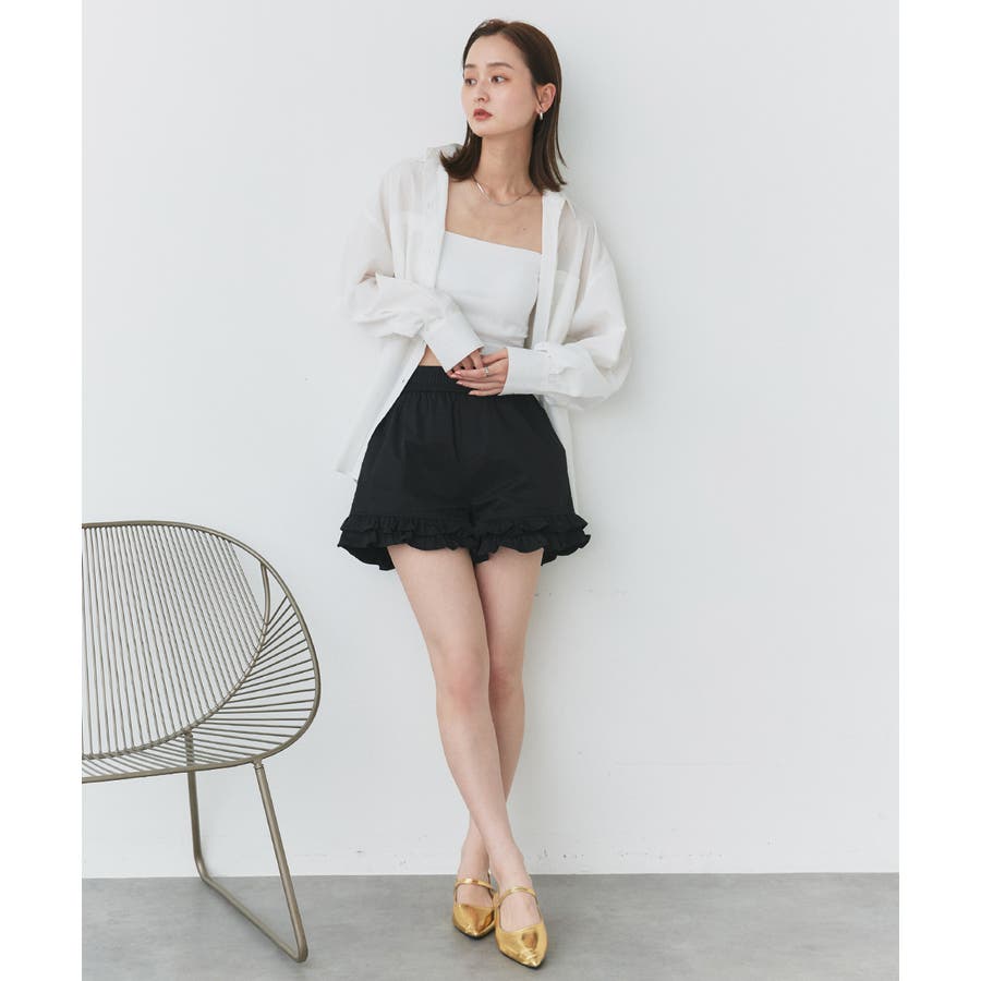 シンプルながらも裾のフリルがアクセントになり、コーデを格上げしてくれること間違いなし。