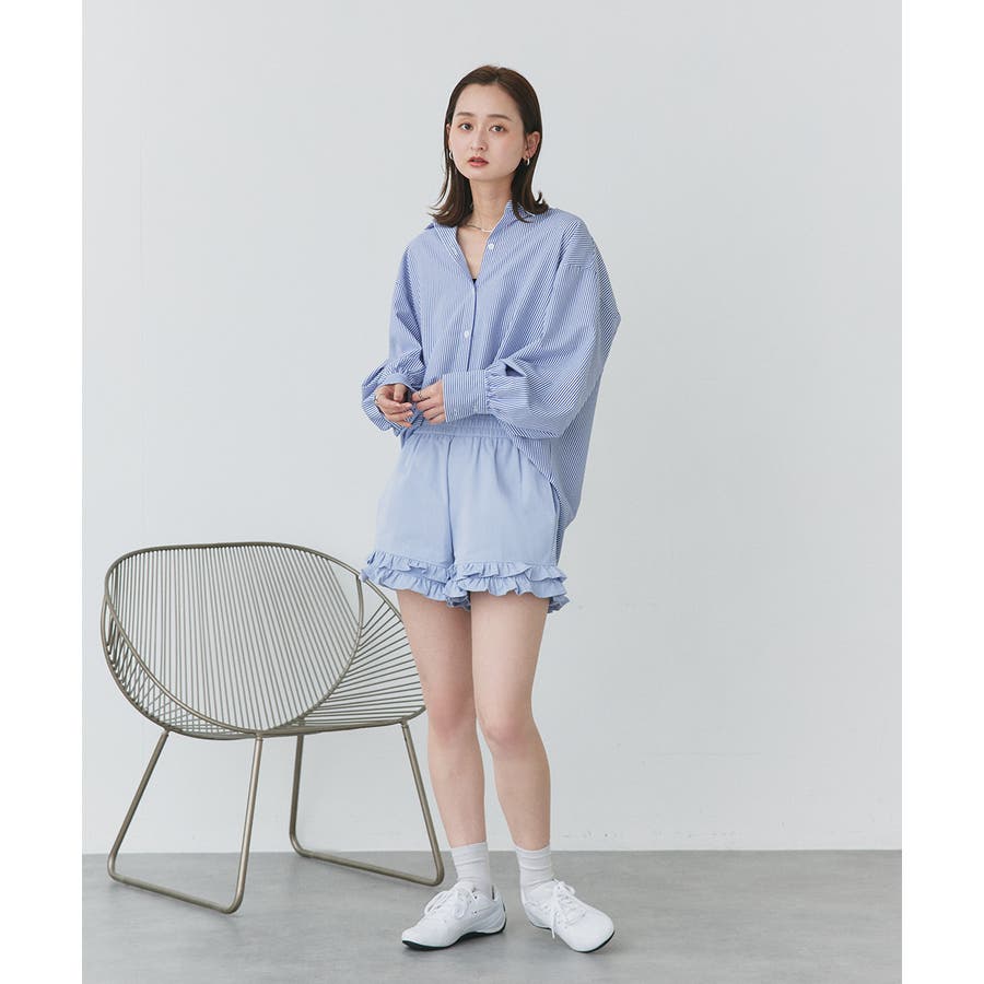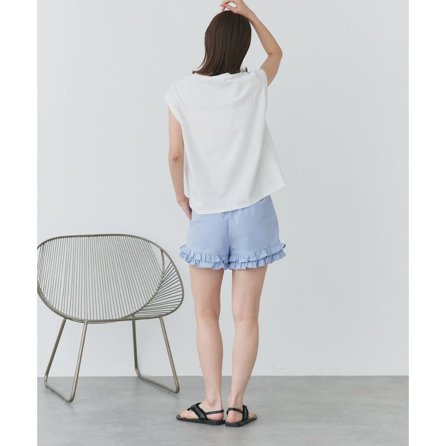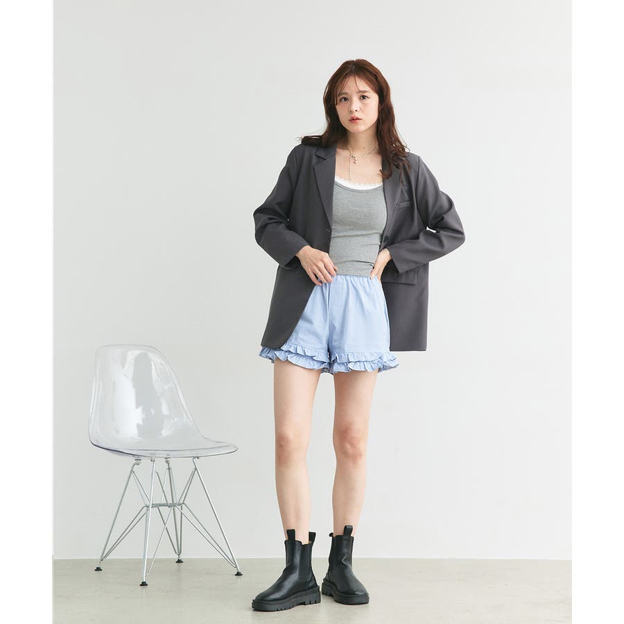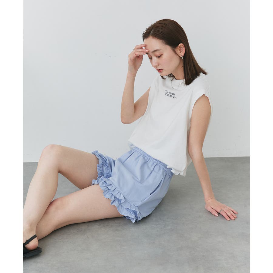 シンプルながらも裾のフリルがアクセントになり、コーデを格上げしてくれること間違いなし。