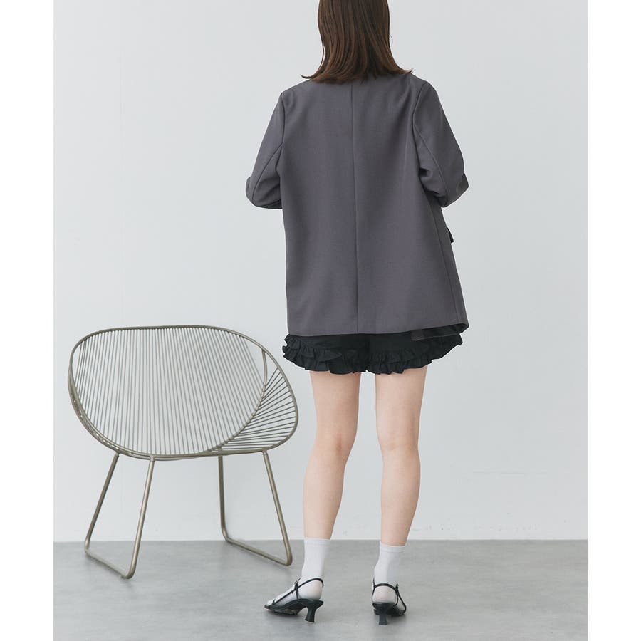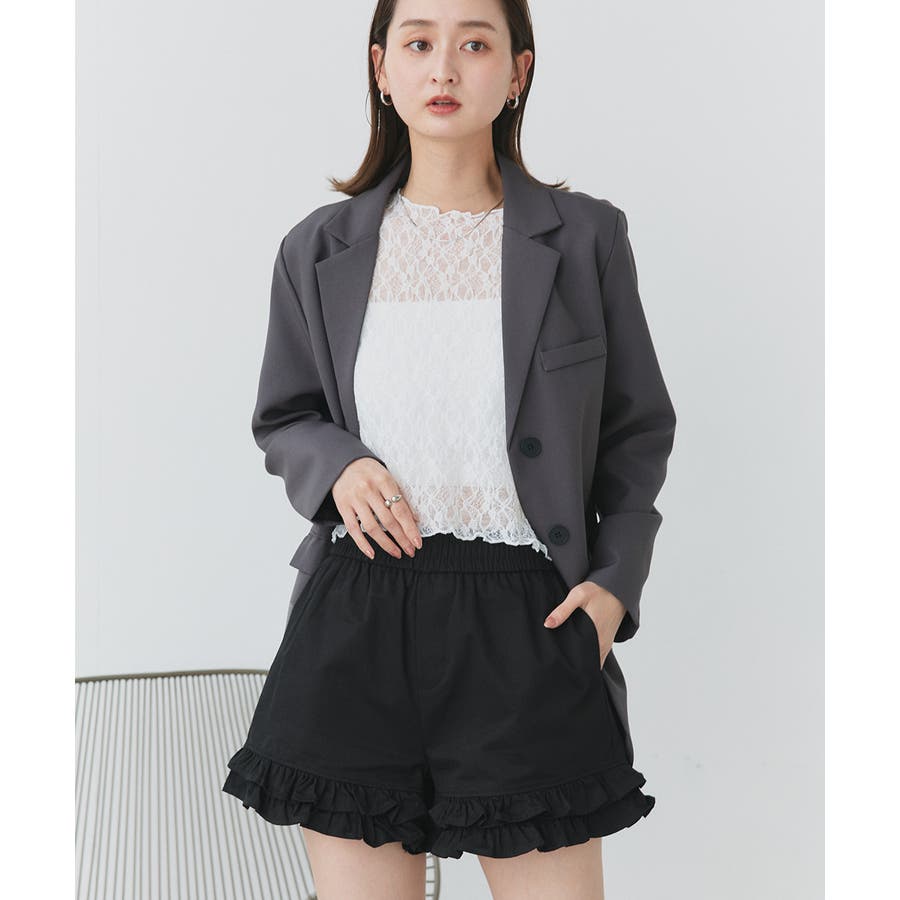 綺麗めなジャケットを合わせると旬のフレンチガーリースタイルに。