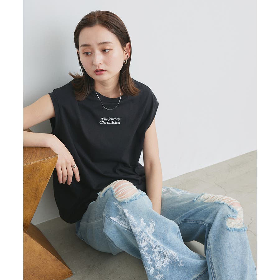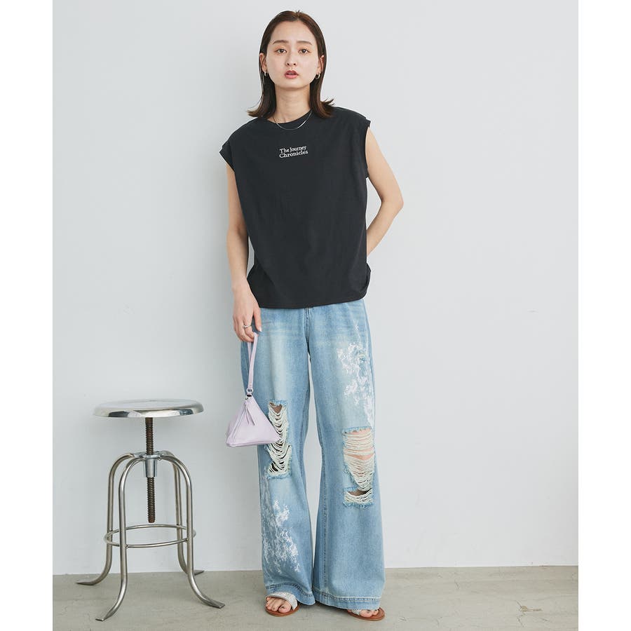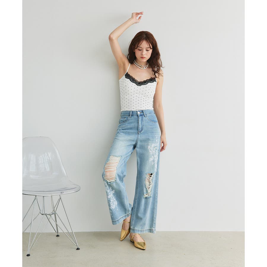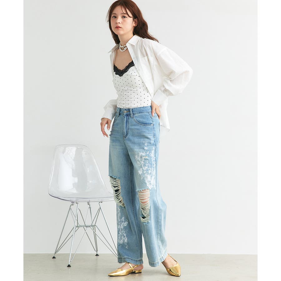 ダメージ×レースプリントで甘辛スタイルに仕上がるアイテムです。
