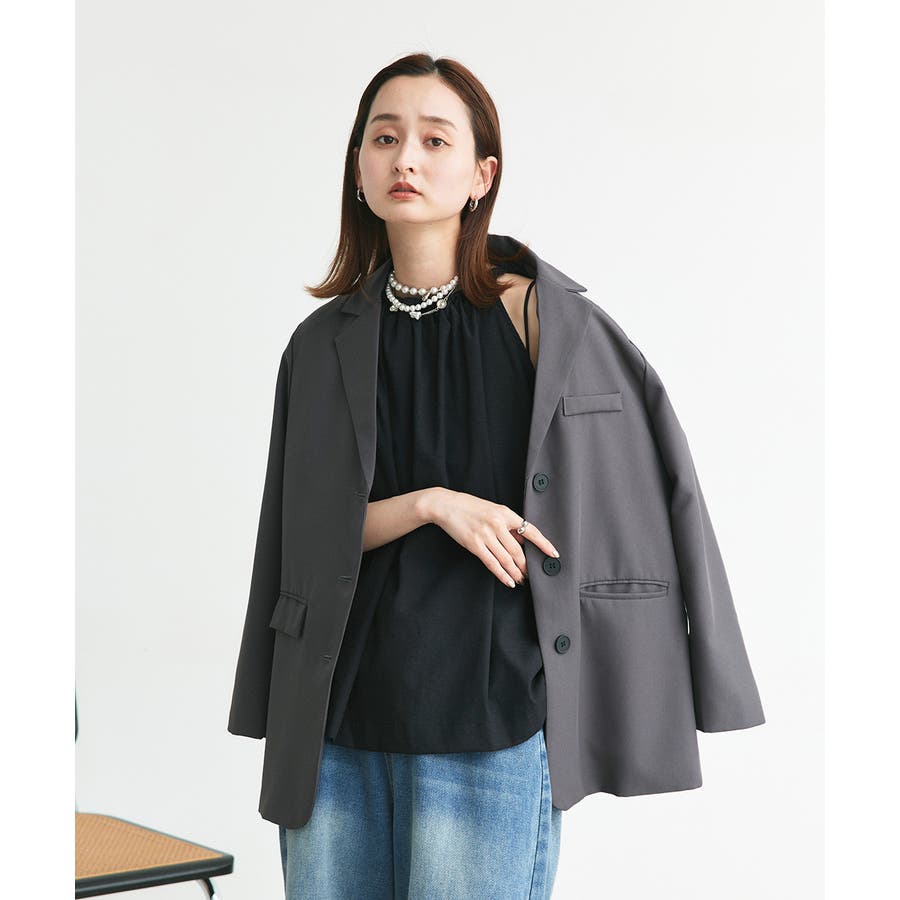フレアシルエットなので、ボトムスはスッキリとしたシルエットのデニムやスラックス合わせがおススメ。