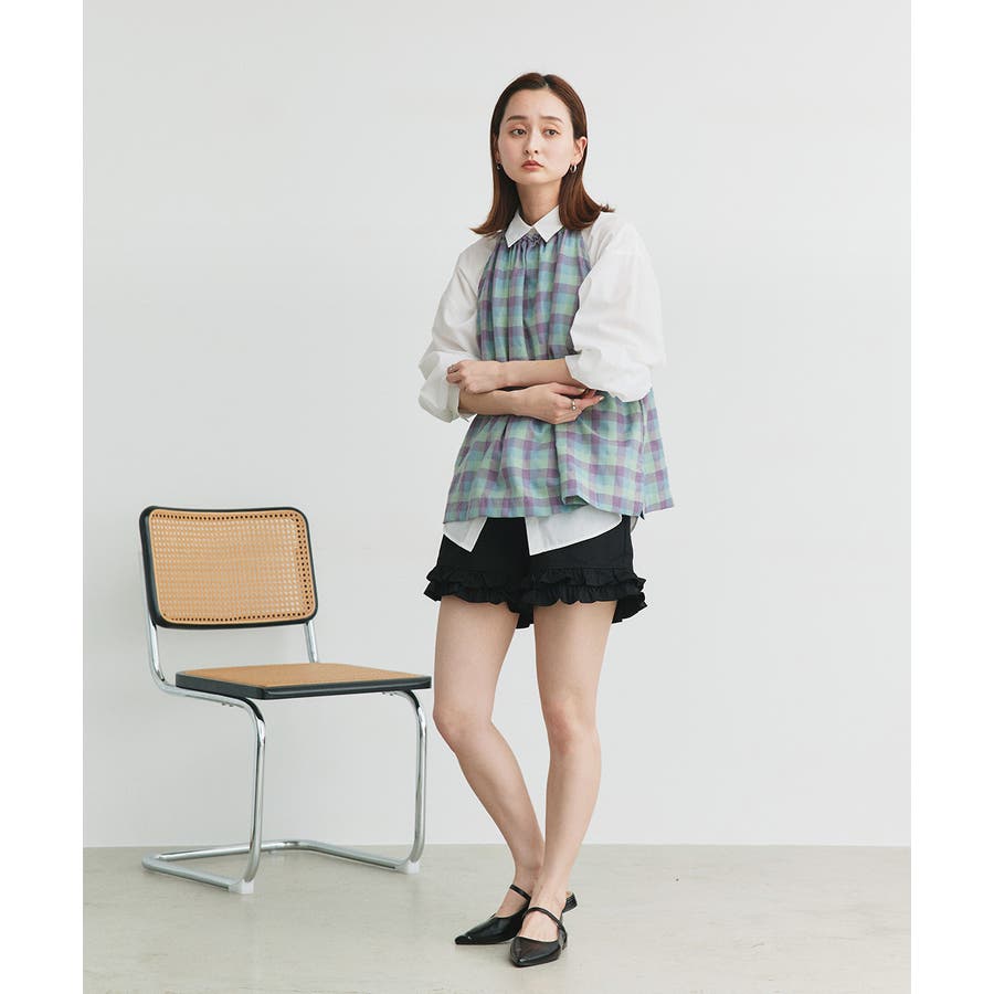 ハーフパンツでメンズライク要素をミックスするのもおススメです。