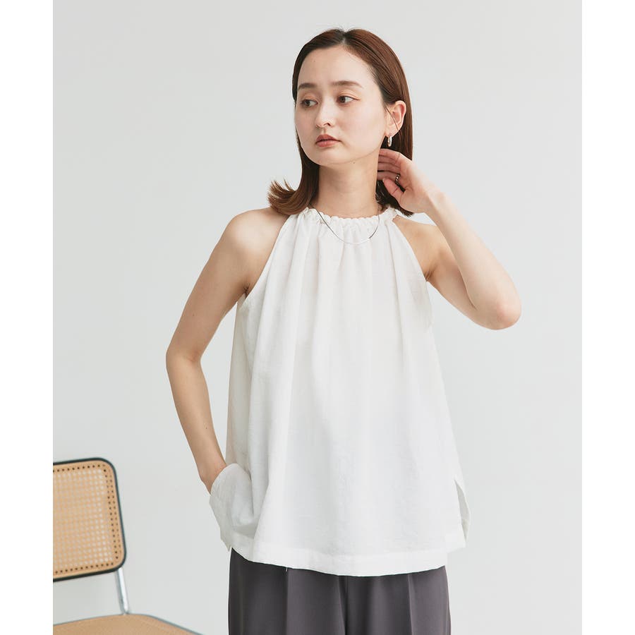 大人のヘルシースタイルに仕上がるホルターネックブラウス