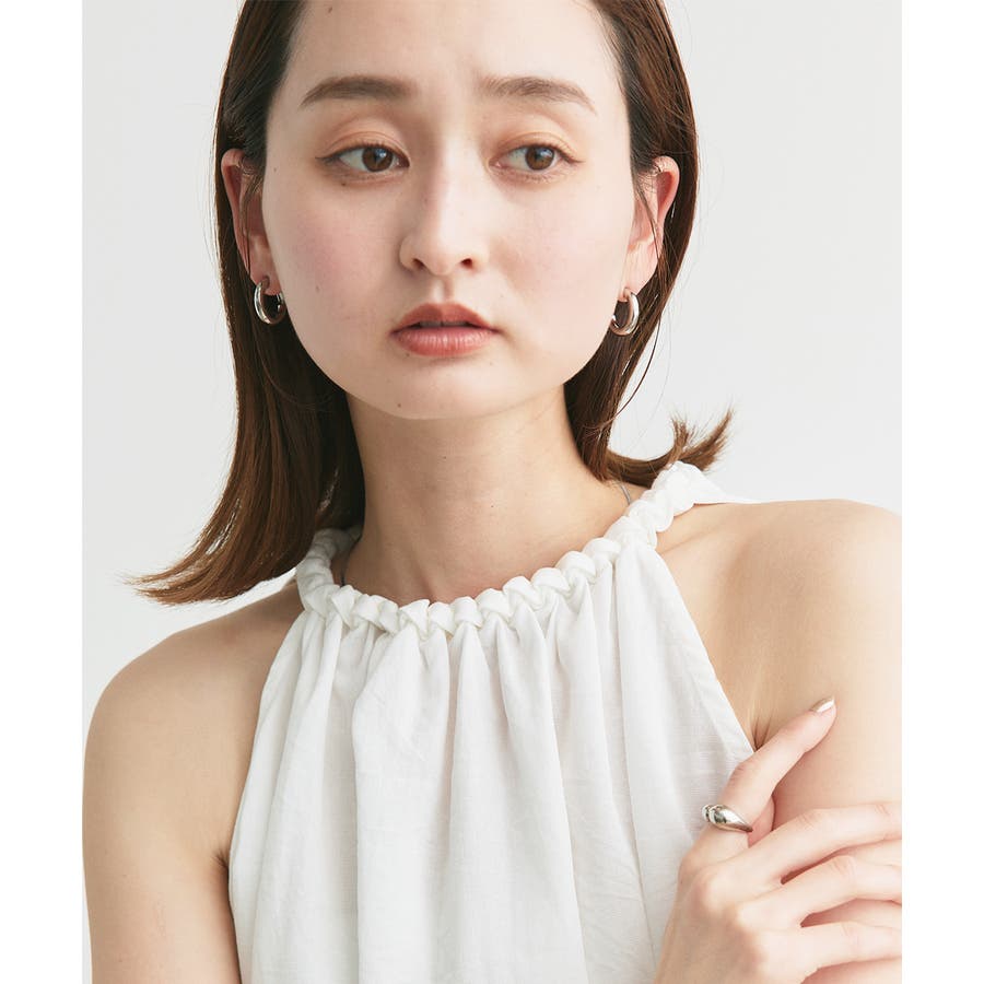 ヘルシーな肌見せと、肩のラインを美しく見せてくれるホルターネックデザイン。