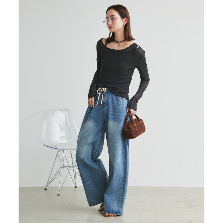 ワイドなデニムでカジュアルダウンさせたスタイリングはもちろん、