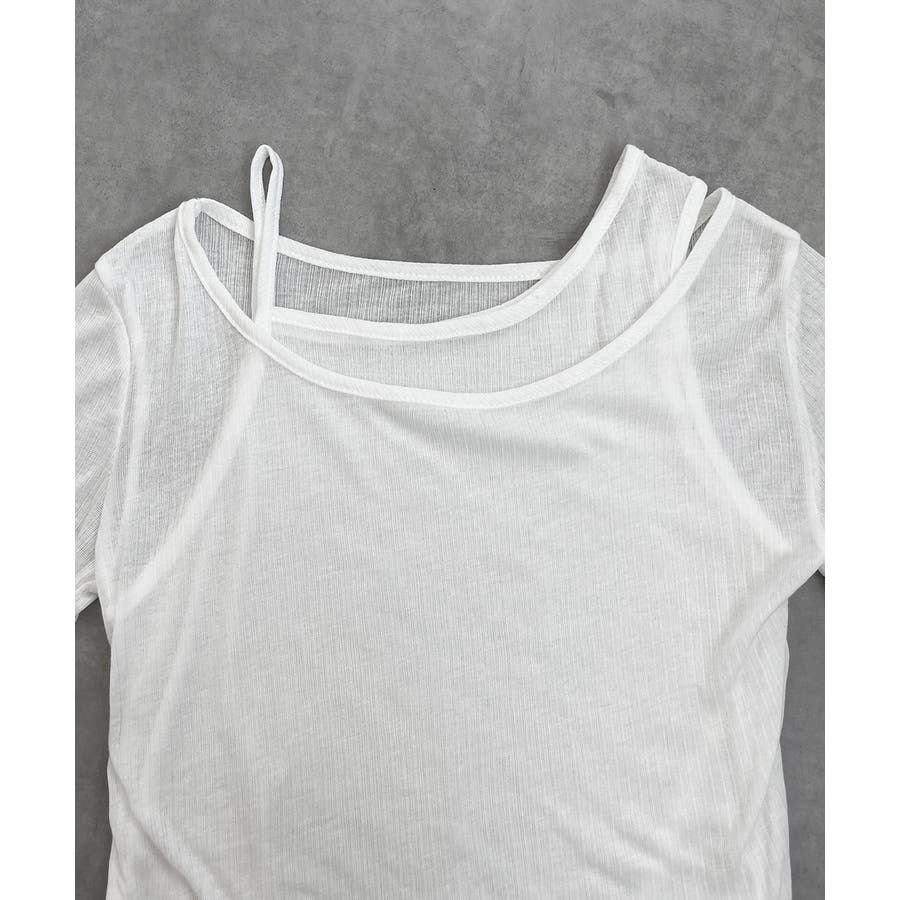 【ヘルシーな肌見せが叶うレイヤードデザインカットソー】