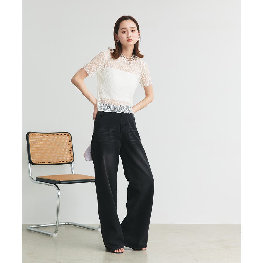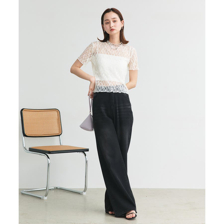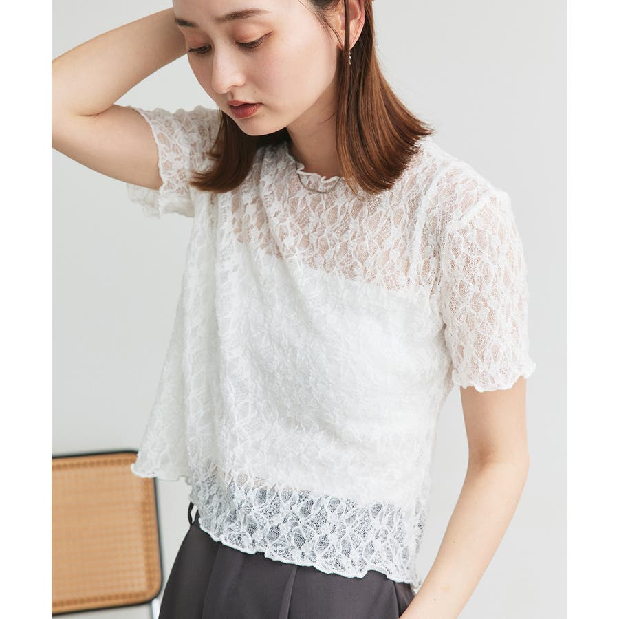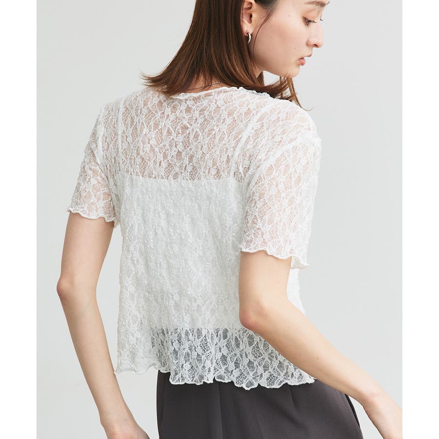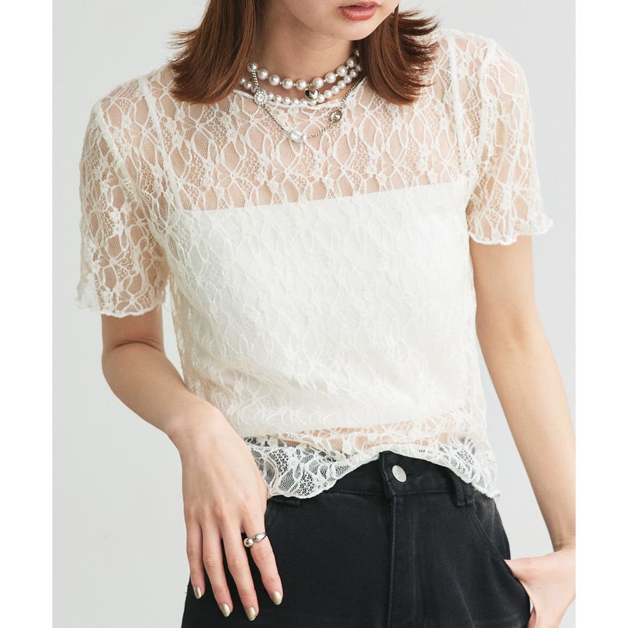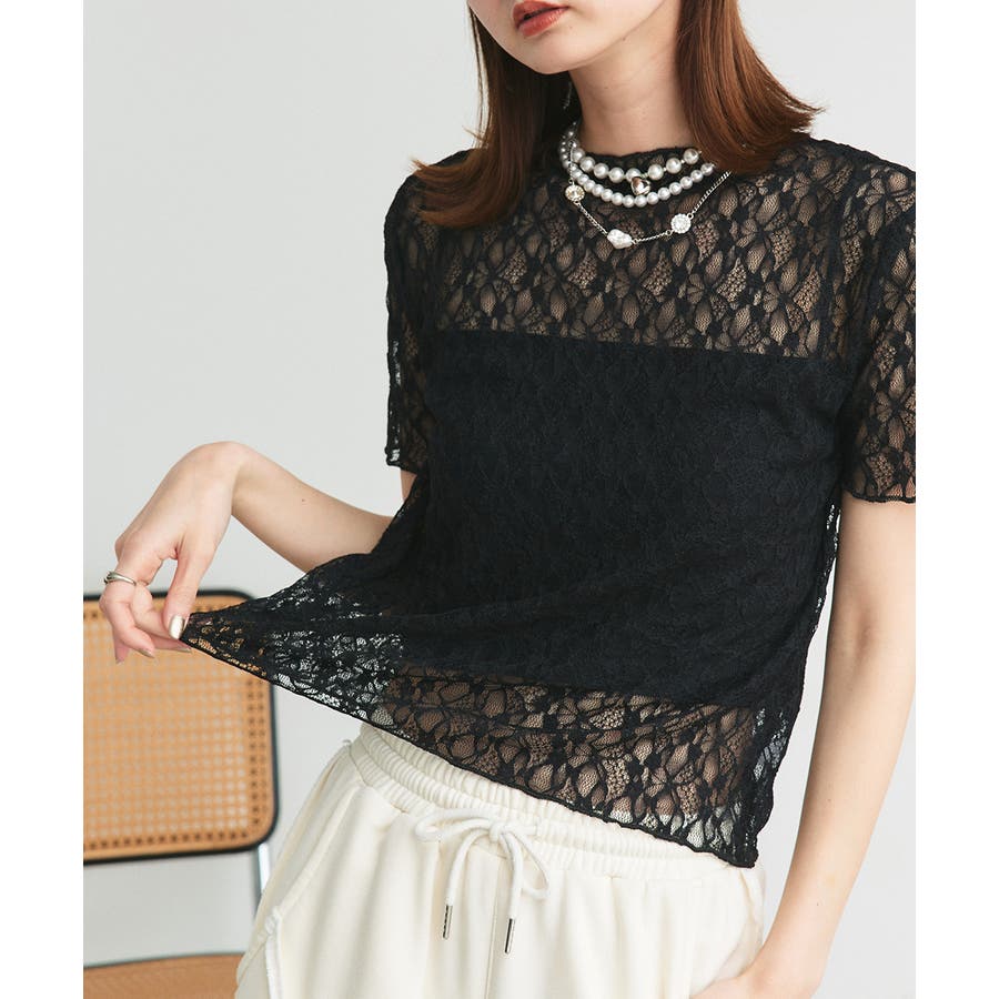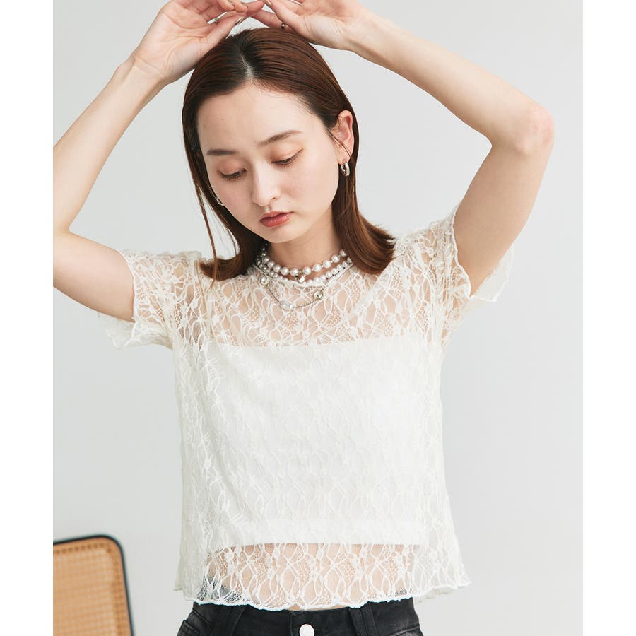 繊細なレースが贅沢にあしらわれた半袖トップス。