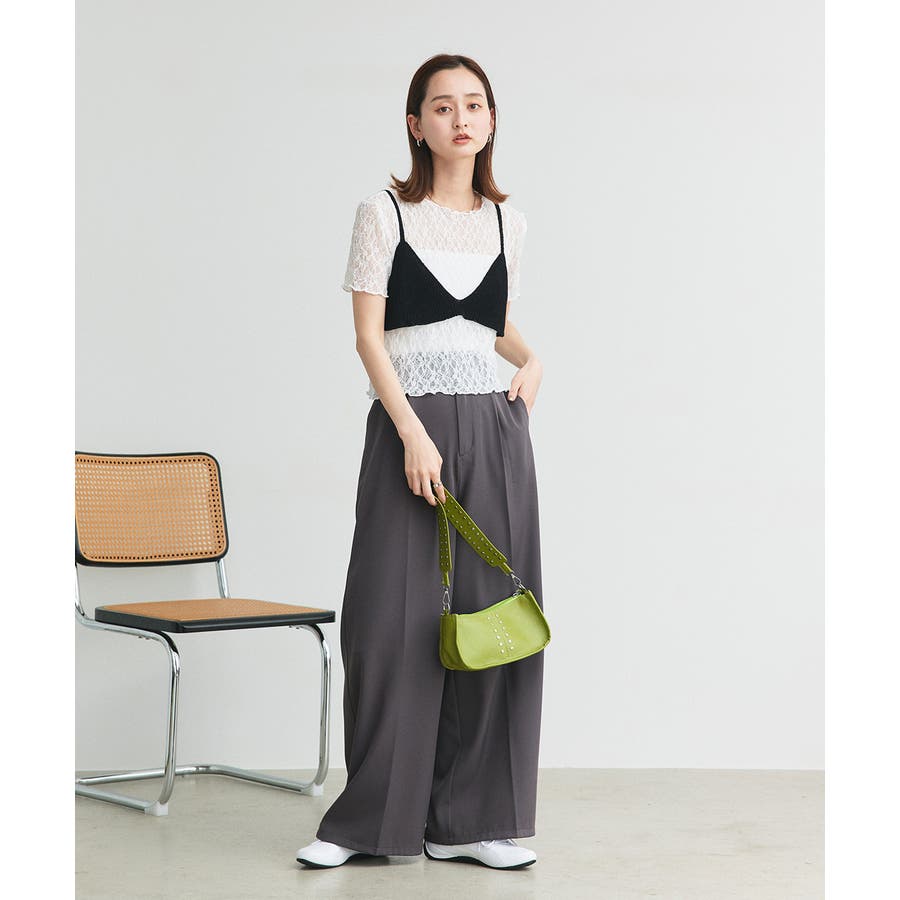 キャミソールやベアトップをインナーに着用したヘルシーな着こなしが◎