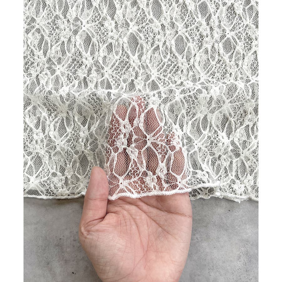 レースの透け感で露出を抑え、上品な仕上がりに。