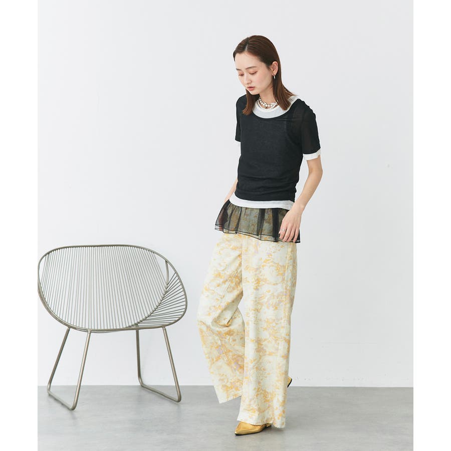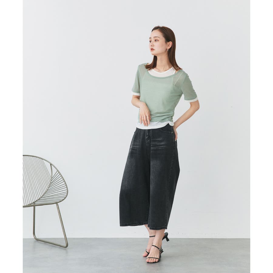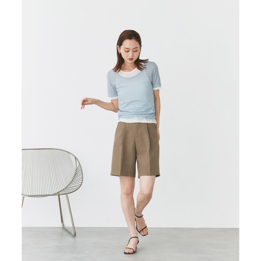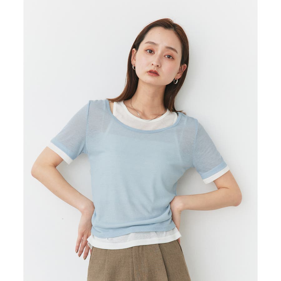・透け感あるシアーニットで涼し気な印象に