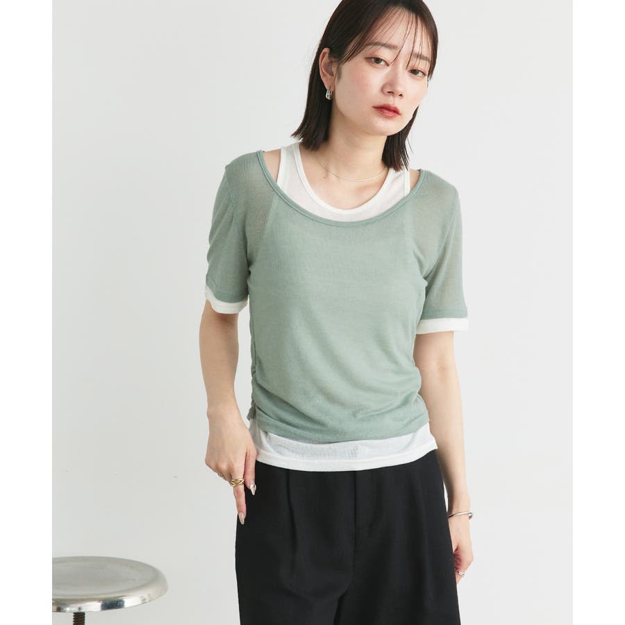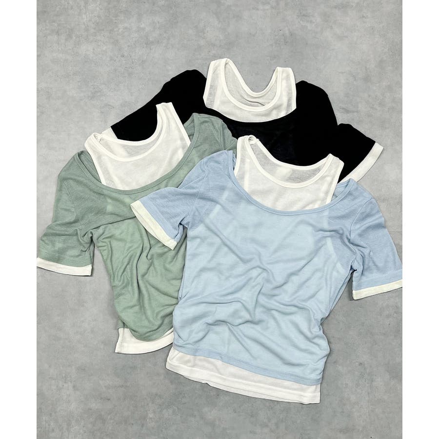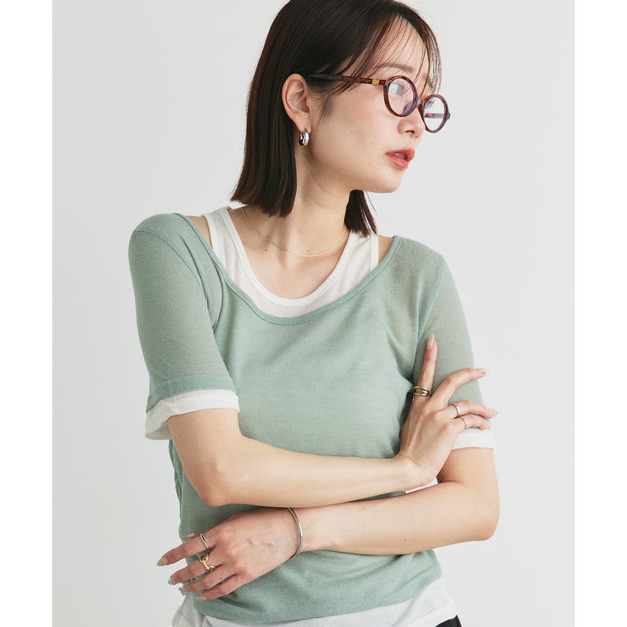 ・タンクトップと半袖ニットを重ね着したようなデザイン