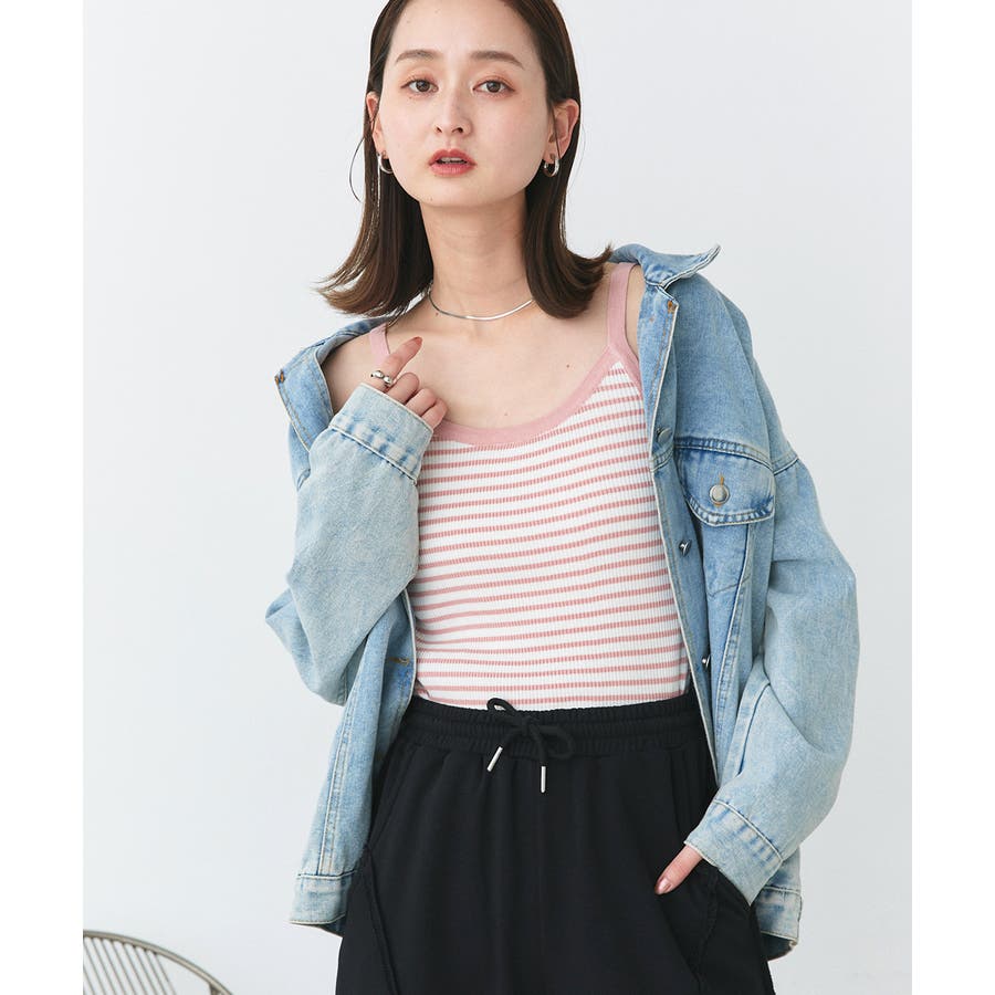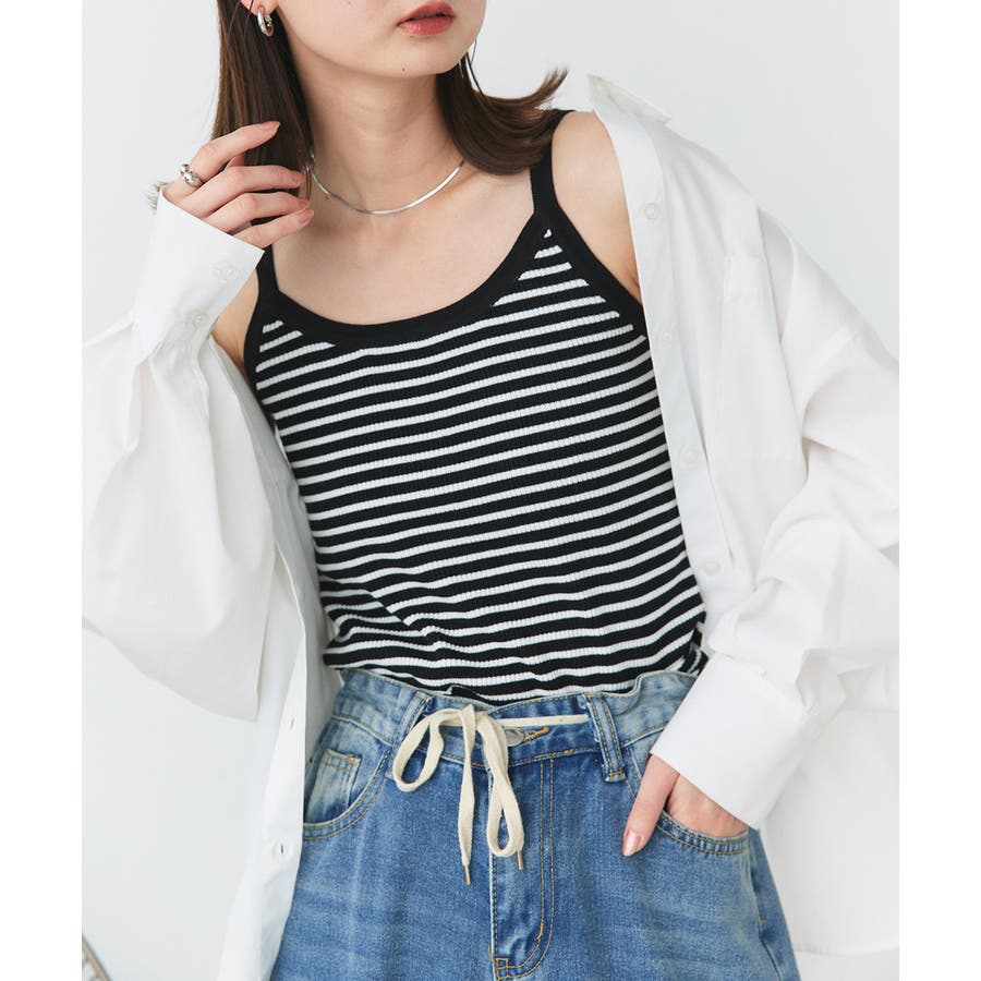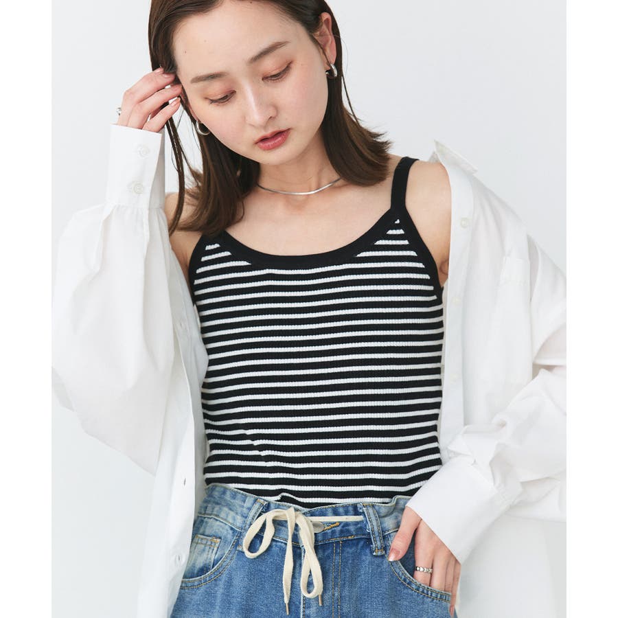 トレンドに左右されないボーダー柄にフィット感のあるニット素材を掛け合わせたキャミソール。