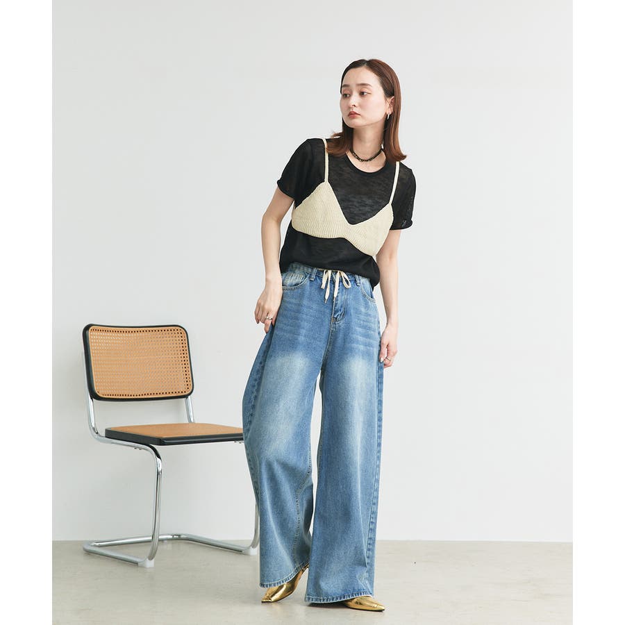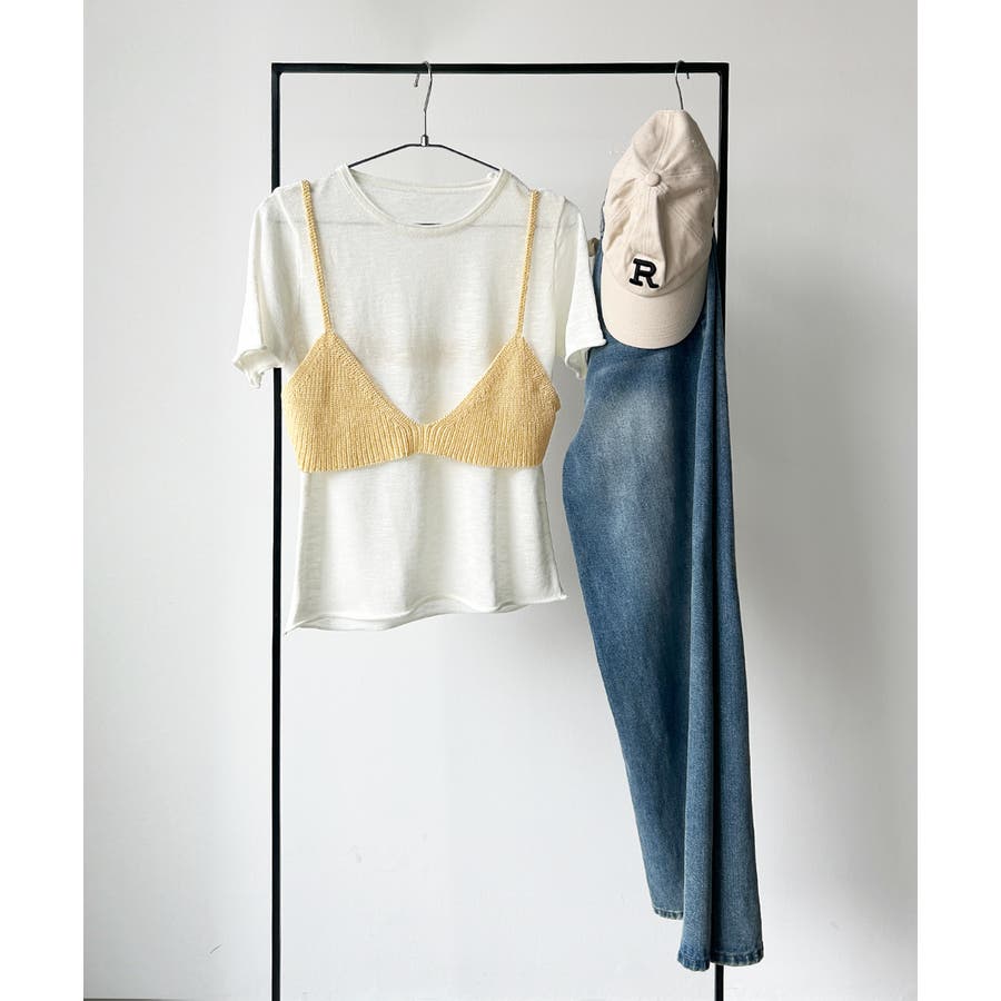 セット使いはもちろん、インナーをタンクトップやTシャツにチェンジした定番カジュアルなレイヤードスタイルもおススメ。