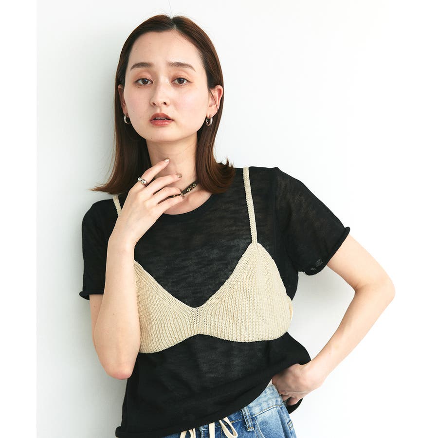 ビスチェはシアートップスやシアーシャツに重ねて素材感を楽しむコーデも◎