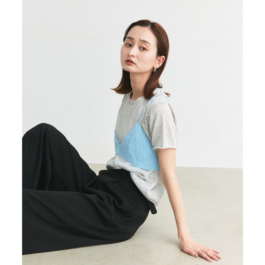 軽やかなニット素材なので重ね着しても重たくならず、抜け感のある着こなしに。