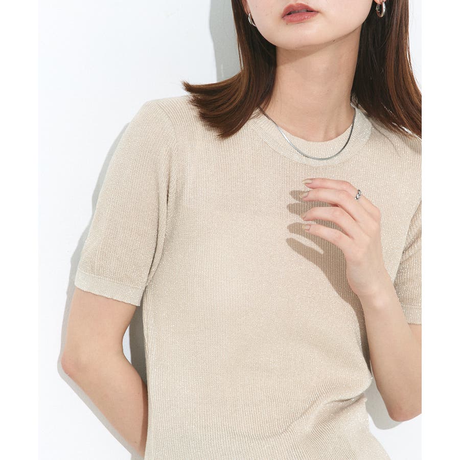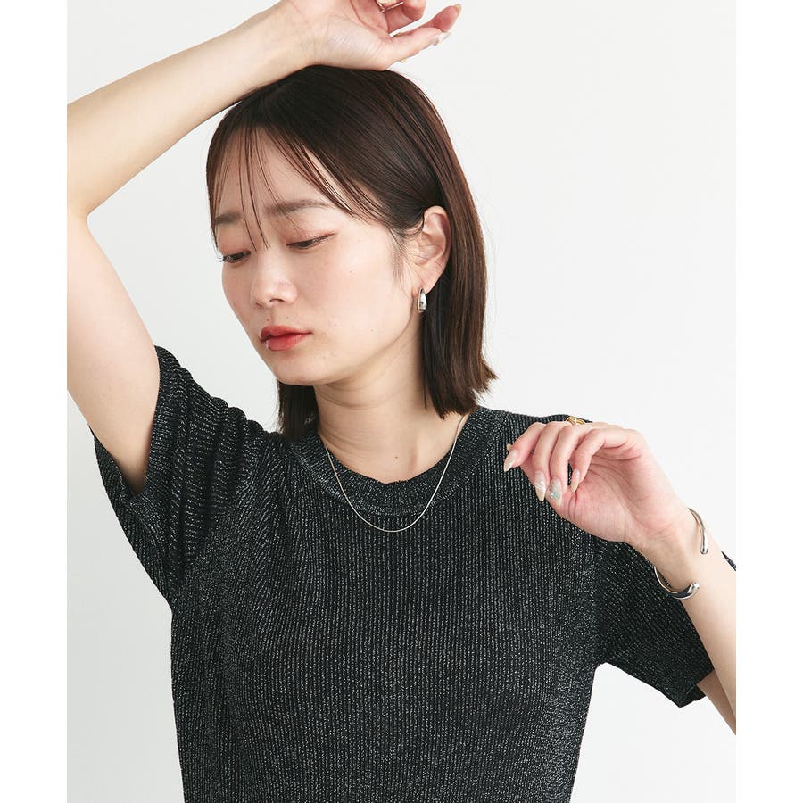 たっぷりのラメ感で、1枚でも華やかなスタイルに仕上がります。
