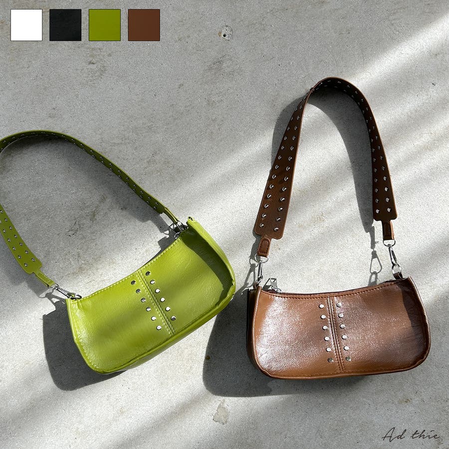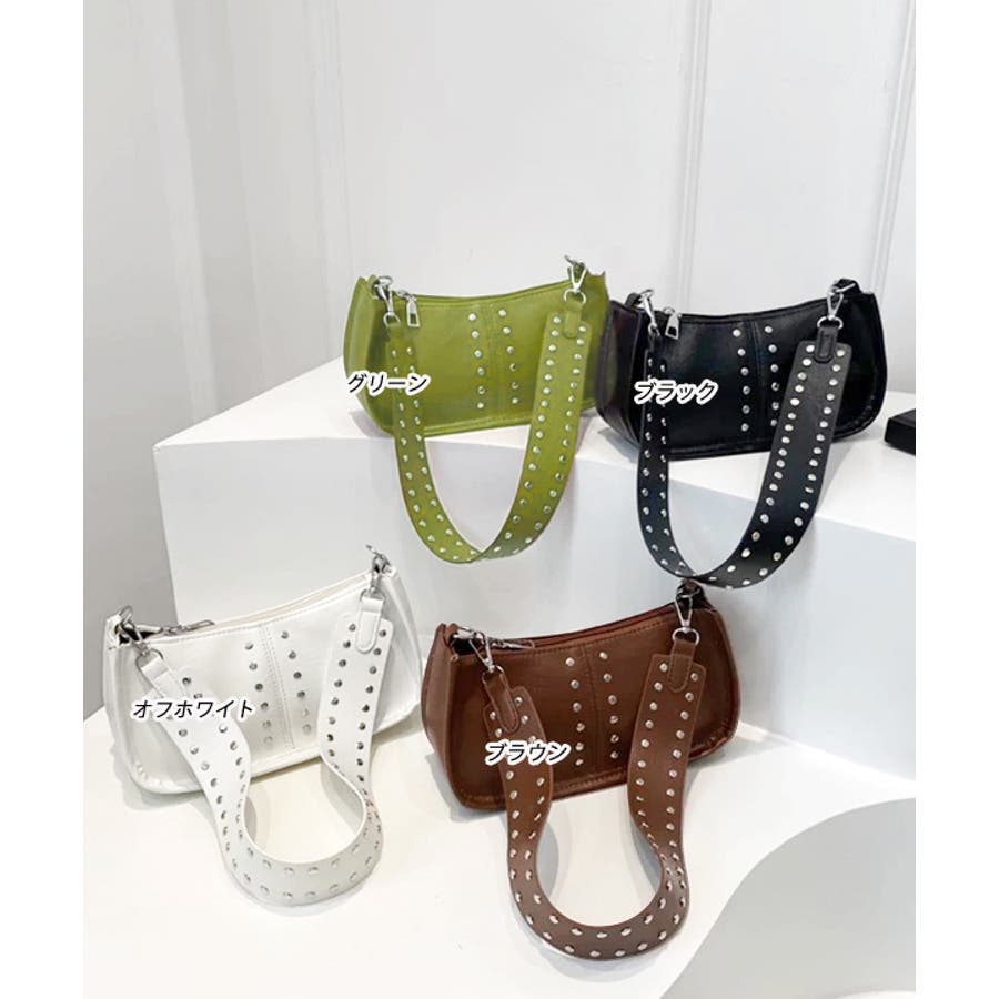 秋 秋コーデ 秋ファッション 秋服 夏 夏コーデ 夏ファッション 夏服 カジュアル カジュアルコーデ 大人 大人カジュアル オフィスカジュアル オフィス オフィスファッション オフィススタイル 韓国 韓国ファッション 韓国コーデ プチプラ プチプラファッション レディース Y2K キレイめ 綺麗め きれい 10代 20代 30代 40代 サイズ シンプル 無地 ベーシック バッグ 鞄 かばん 服飾雑貨 ハンドバッグ ミニバッグ ショルダーバッグ 肩掛け 肩掛けバッグ ワンショルダー ワンショルダーバッグ ミニショルダー スタッズ スタッズデザイン ストリート ヴィンテージライク ブラック 黒 オフホワイト 白 ブラウン グリーン