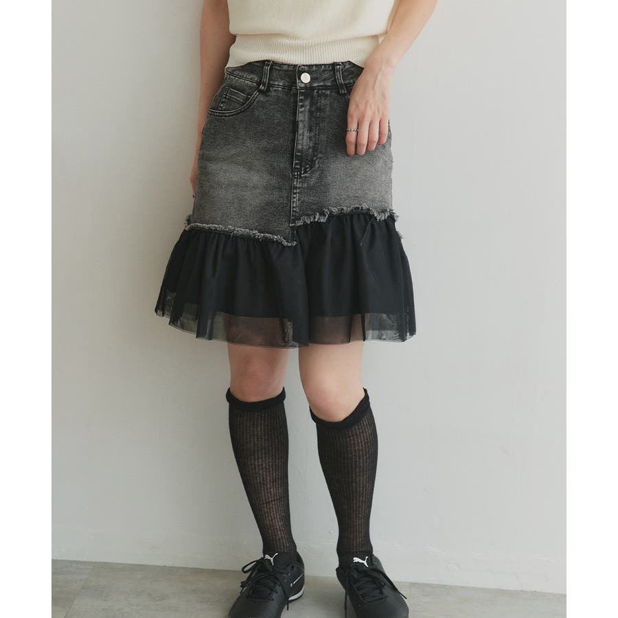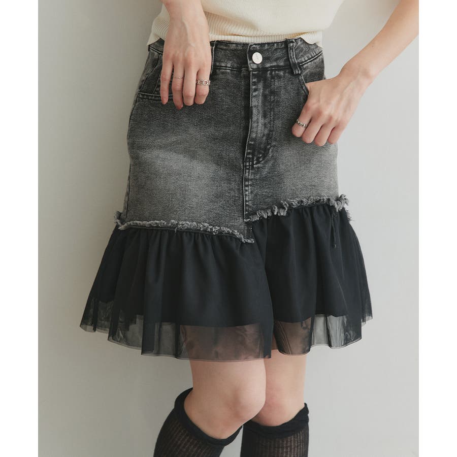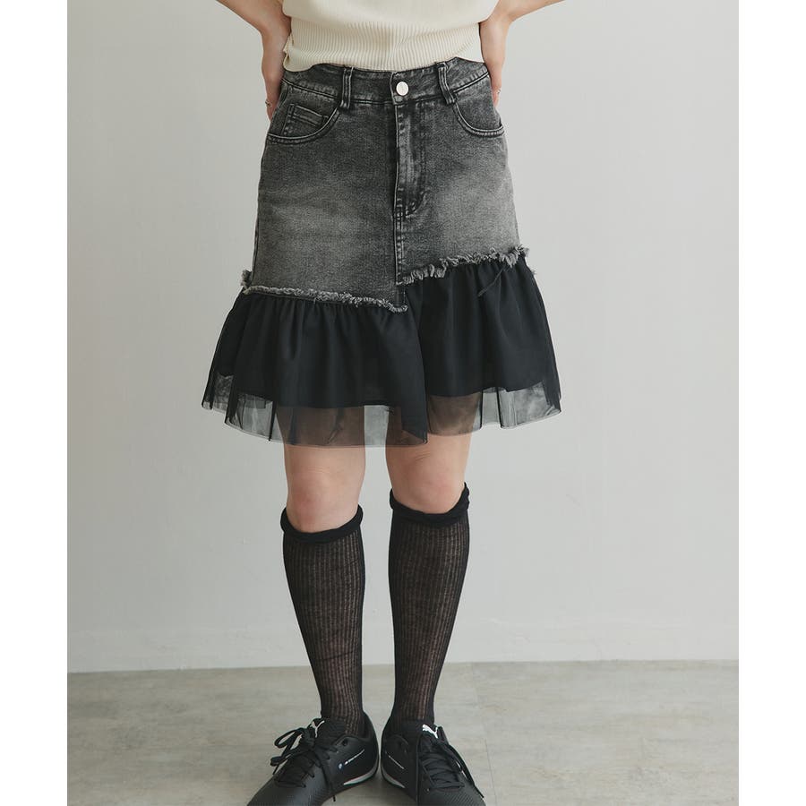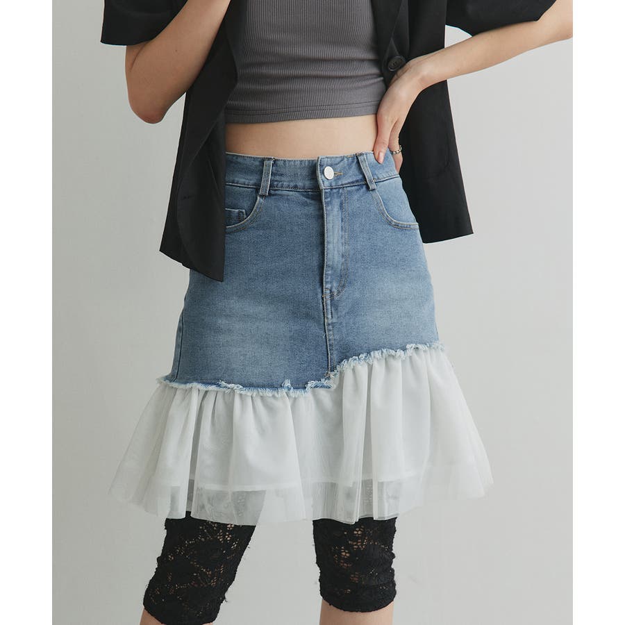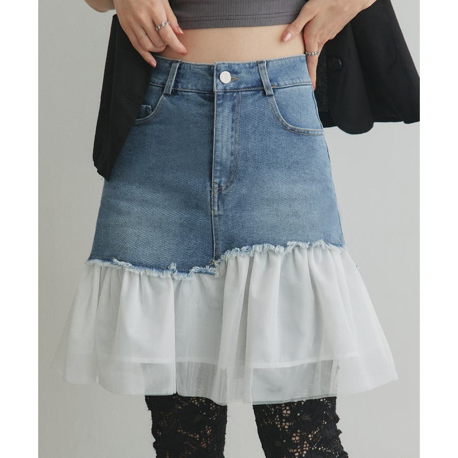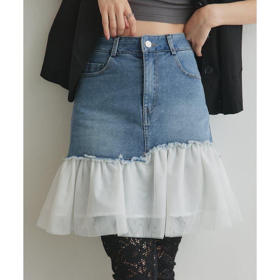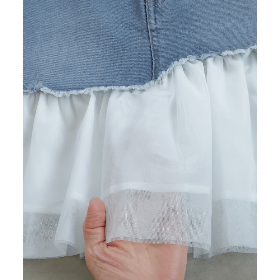 ・デニム×チュールの切り替えデザイン