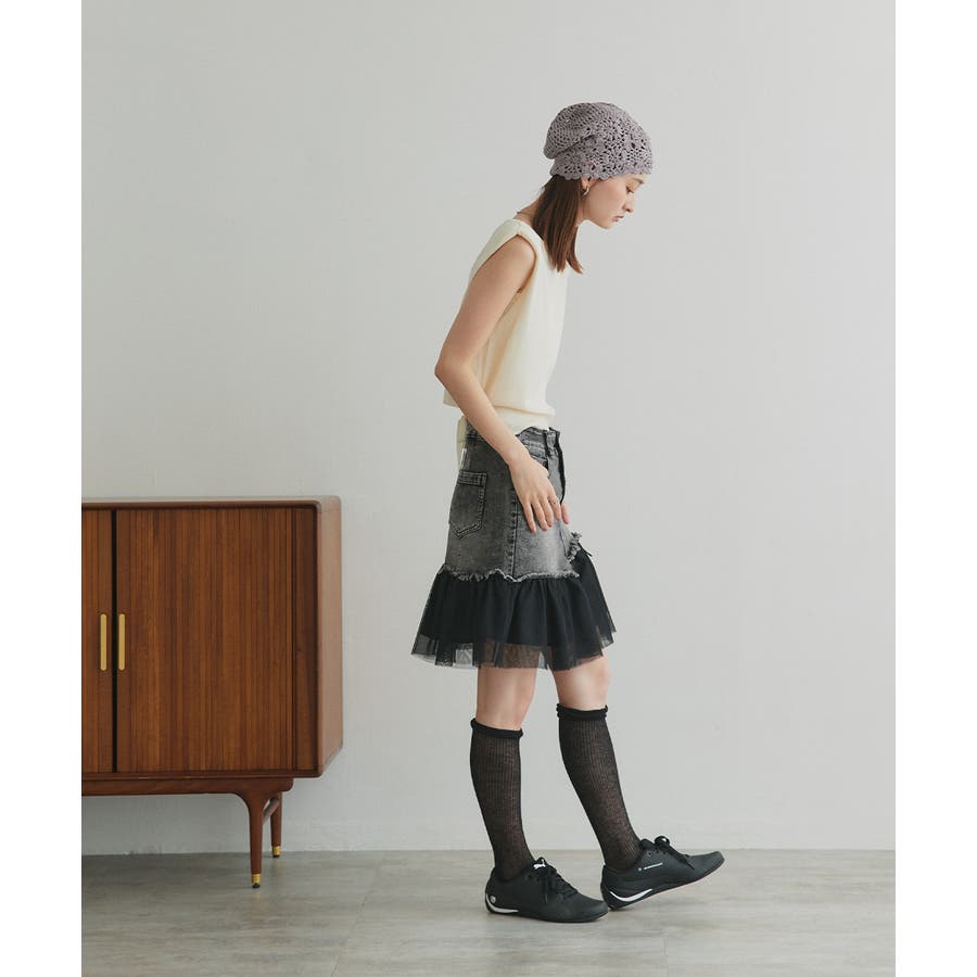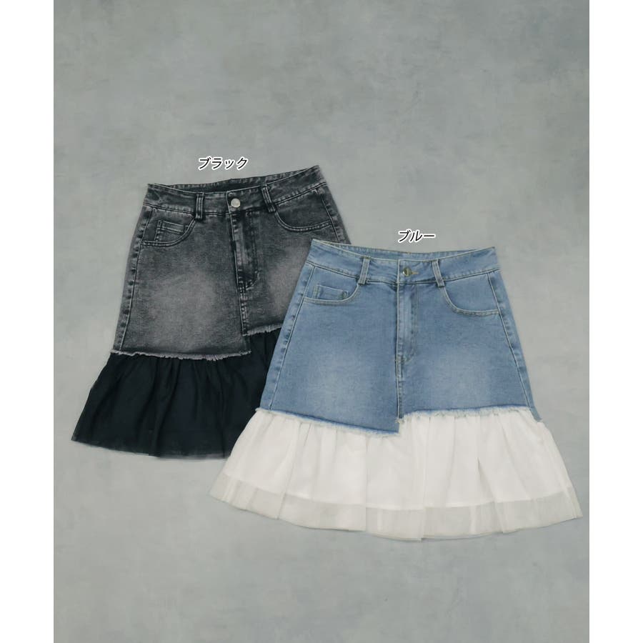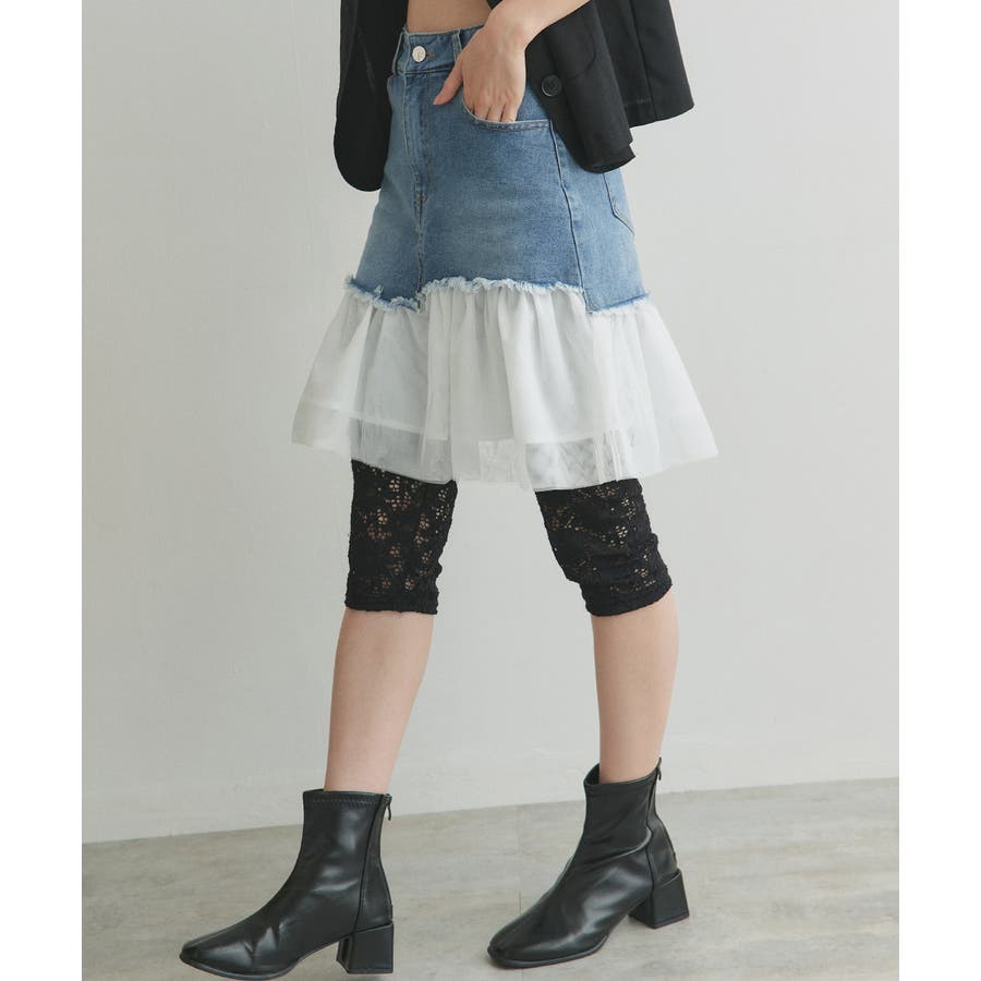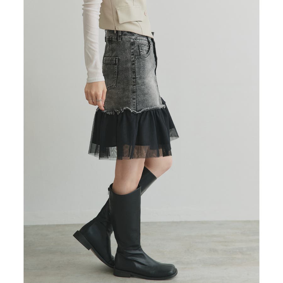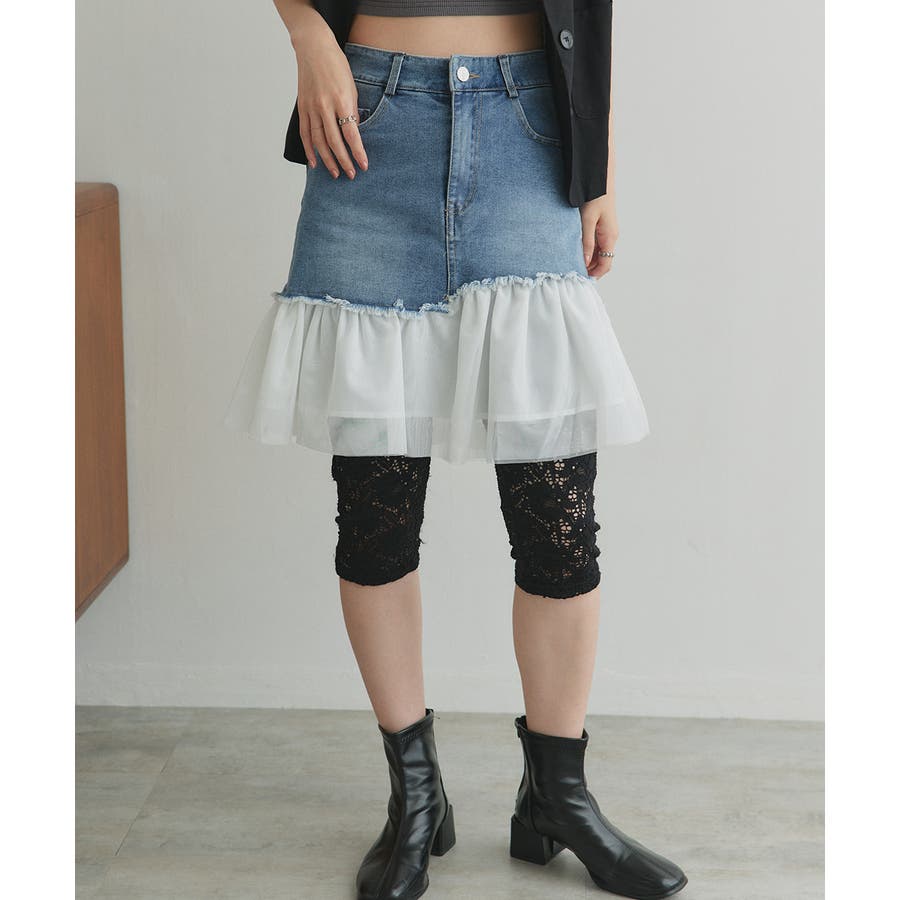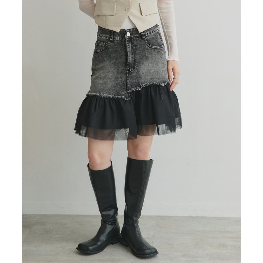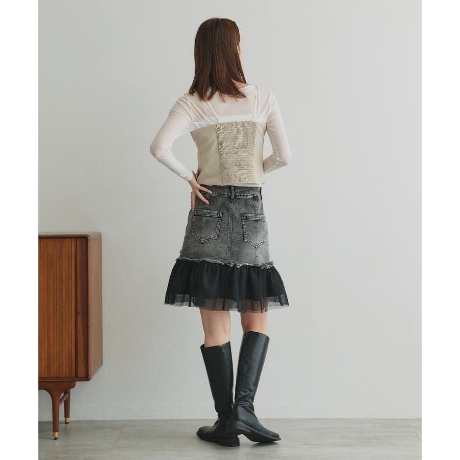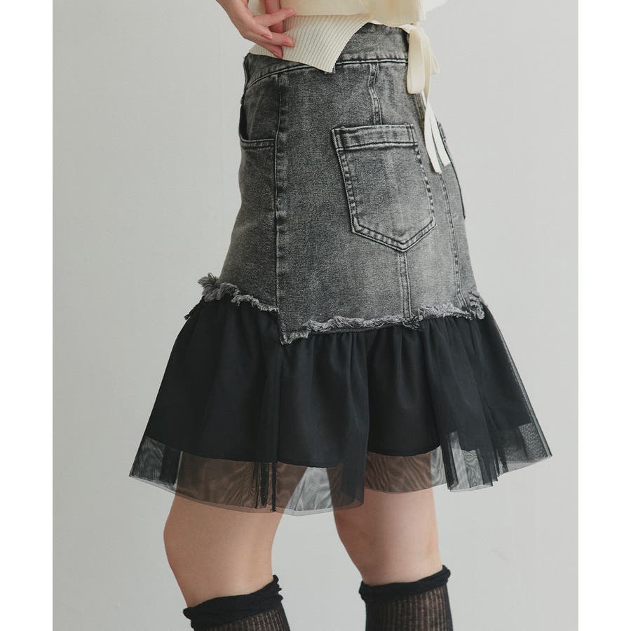 ・デニム×チュールの切り替えデザイン