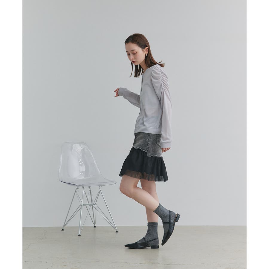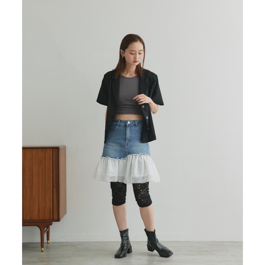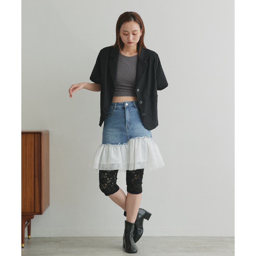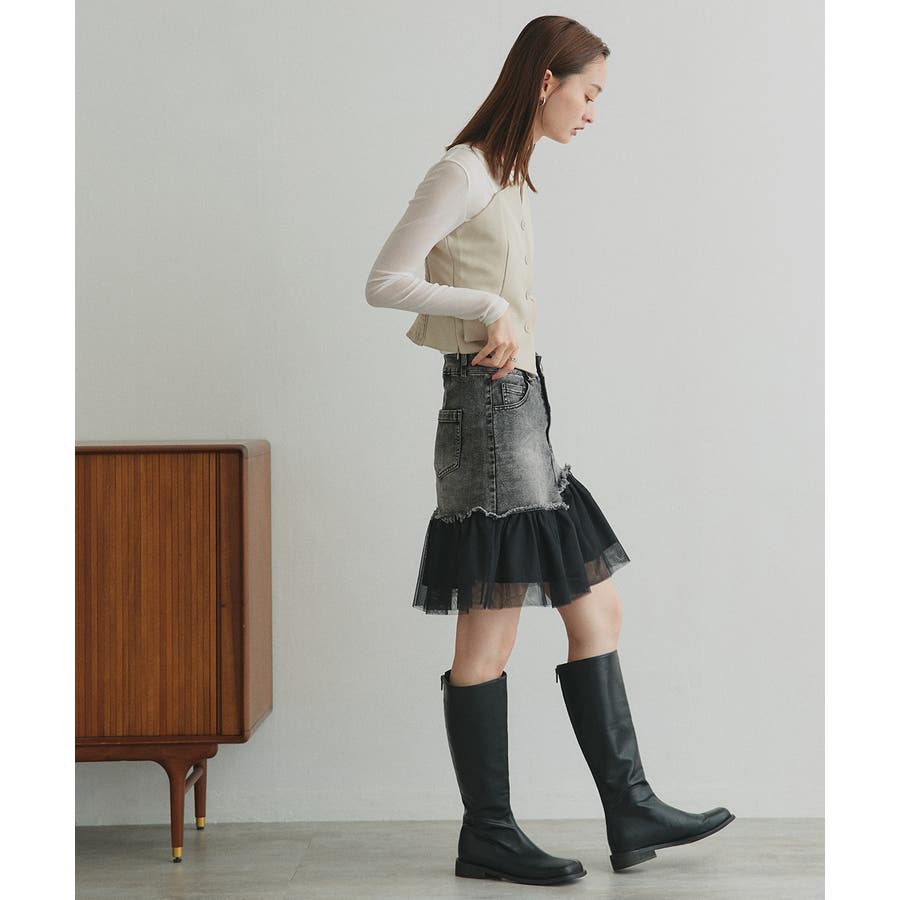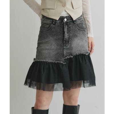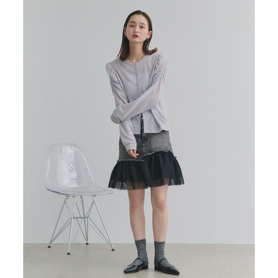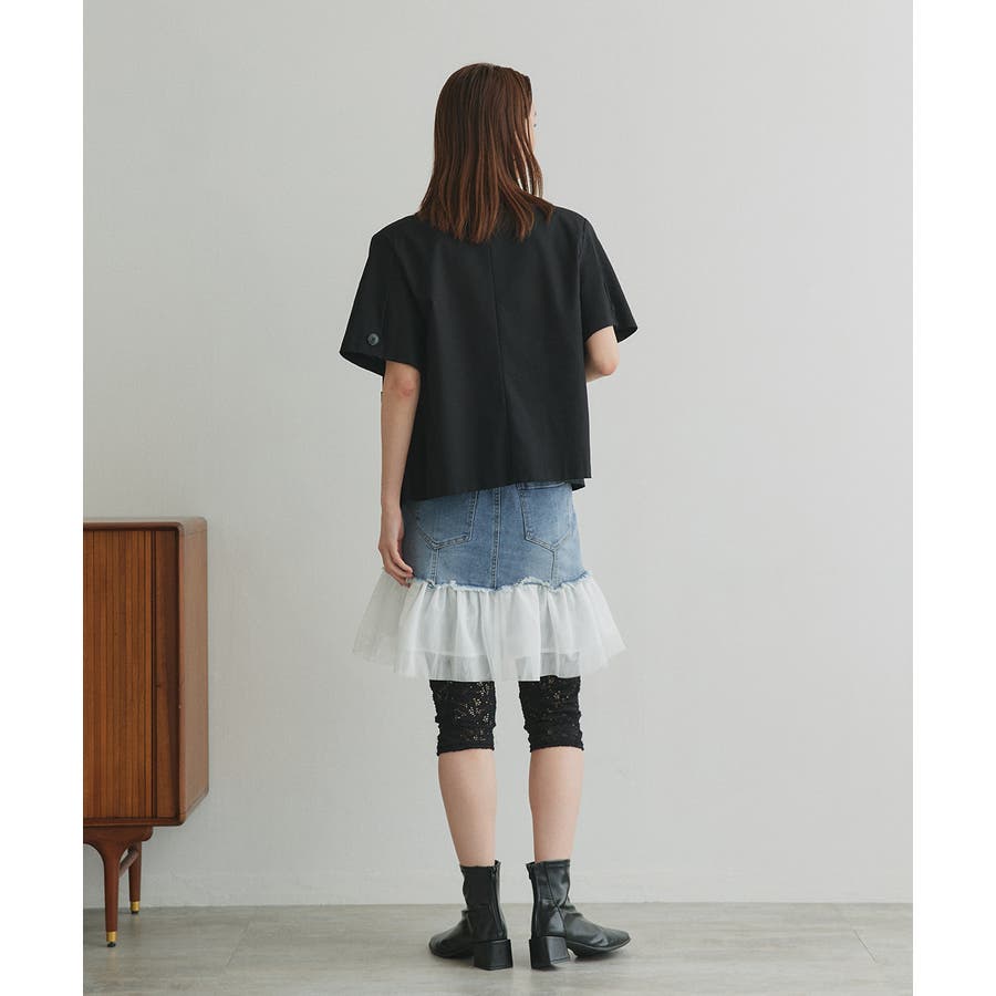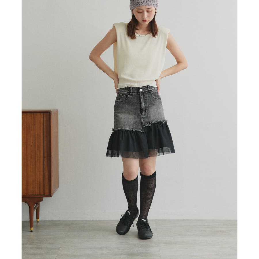 ・デニム×チュールの切り替えデザイン