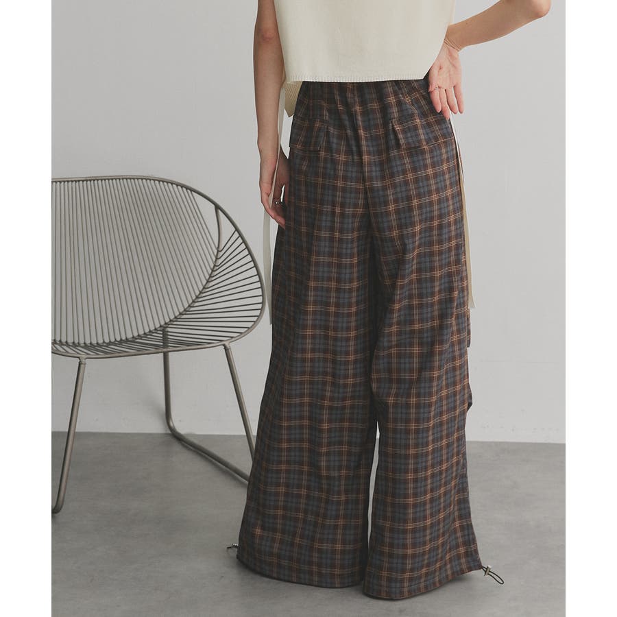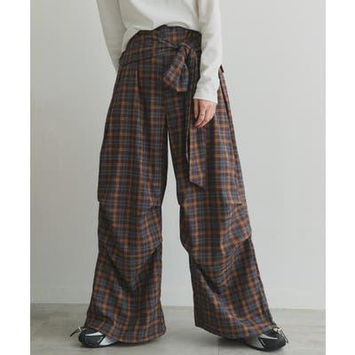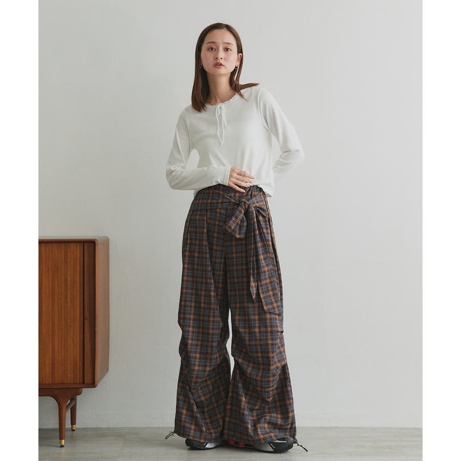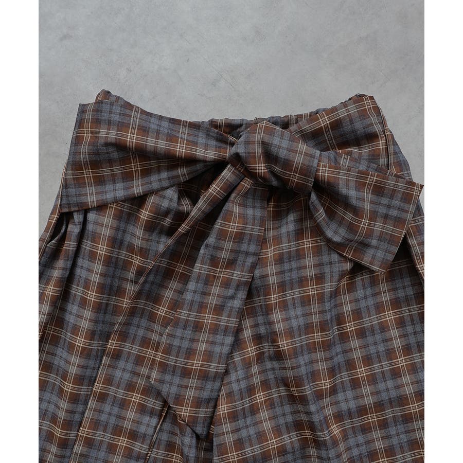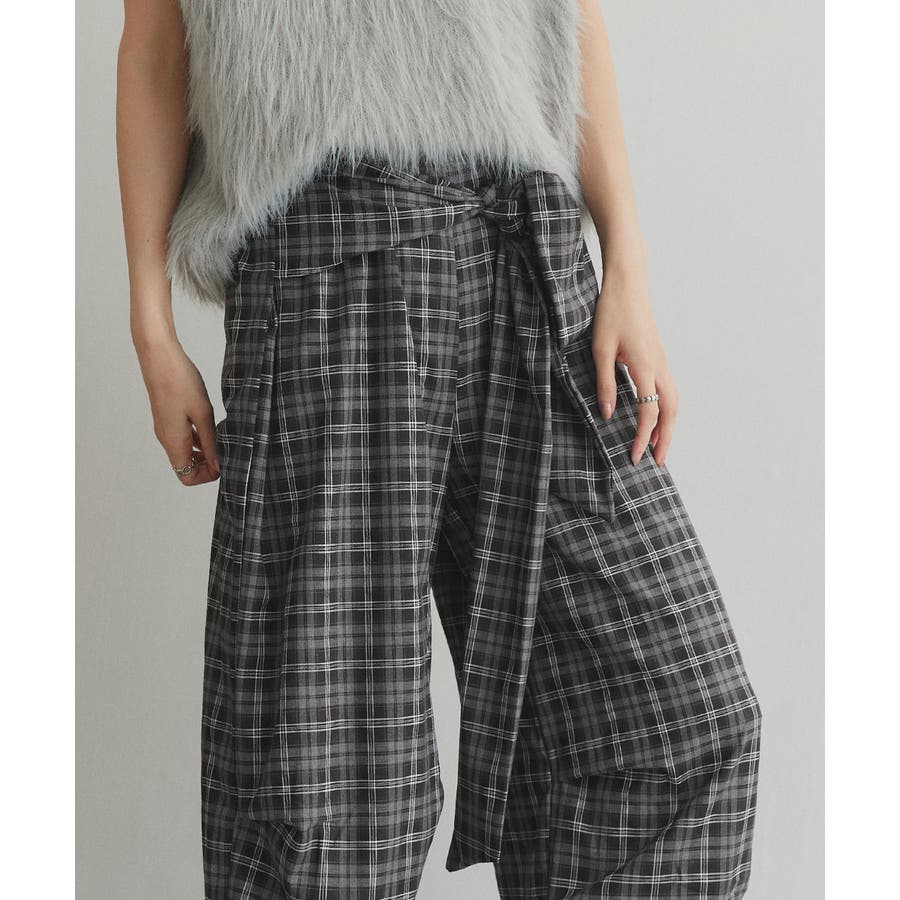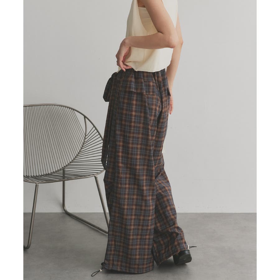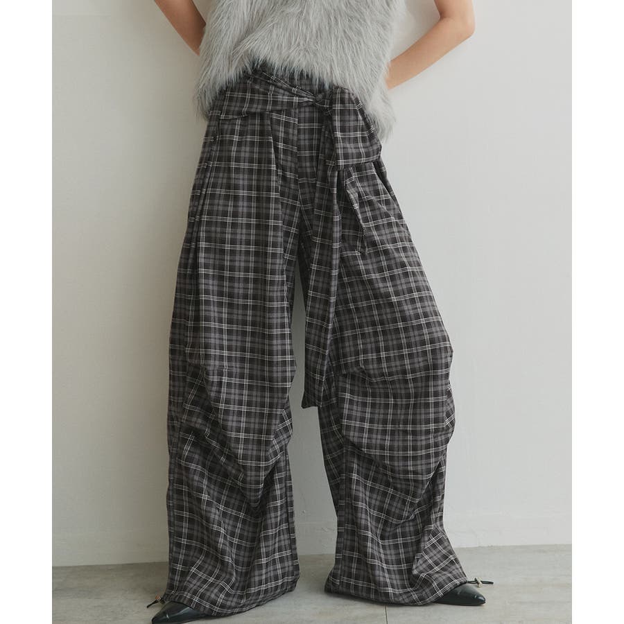 【2025AW新作】ウエストリボンデザインチェックワイドパンツ
