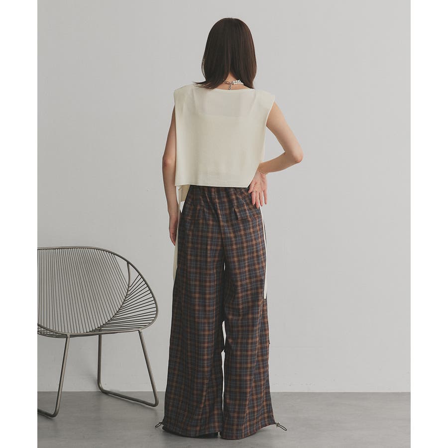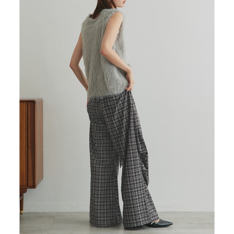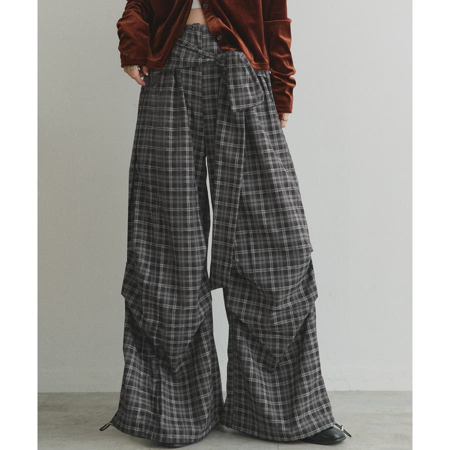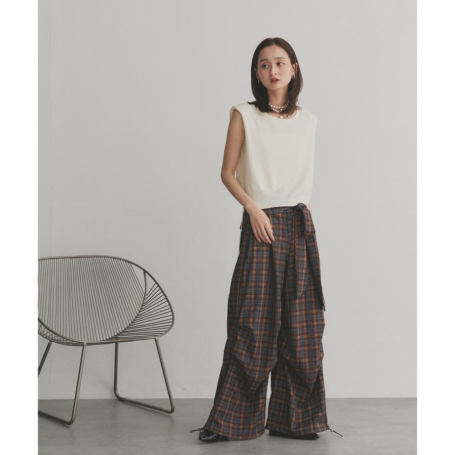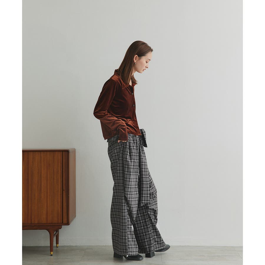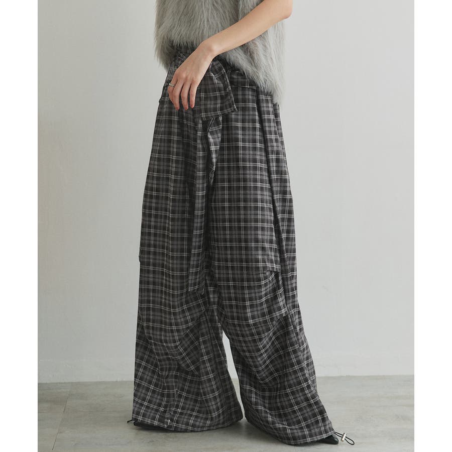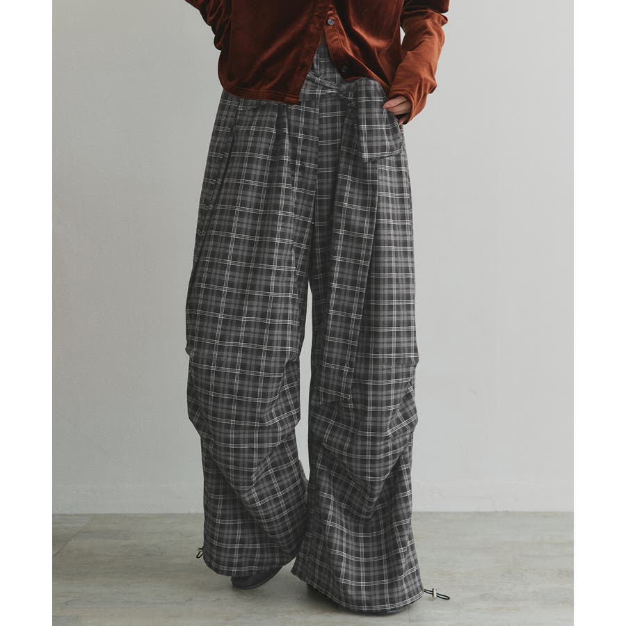 【2025AW新作】ウエストリボンデザインチェックワイドパンツ