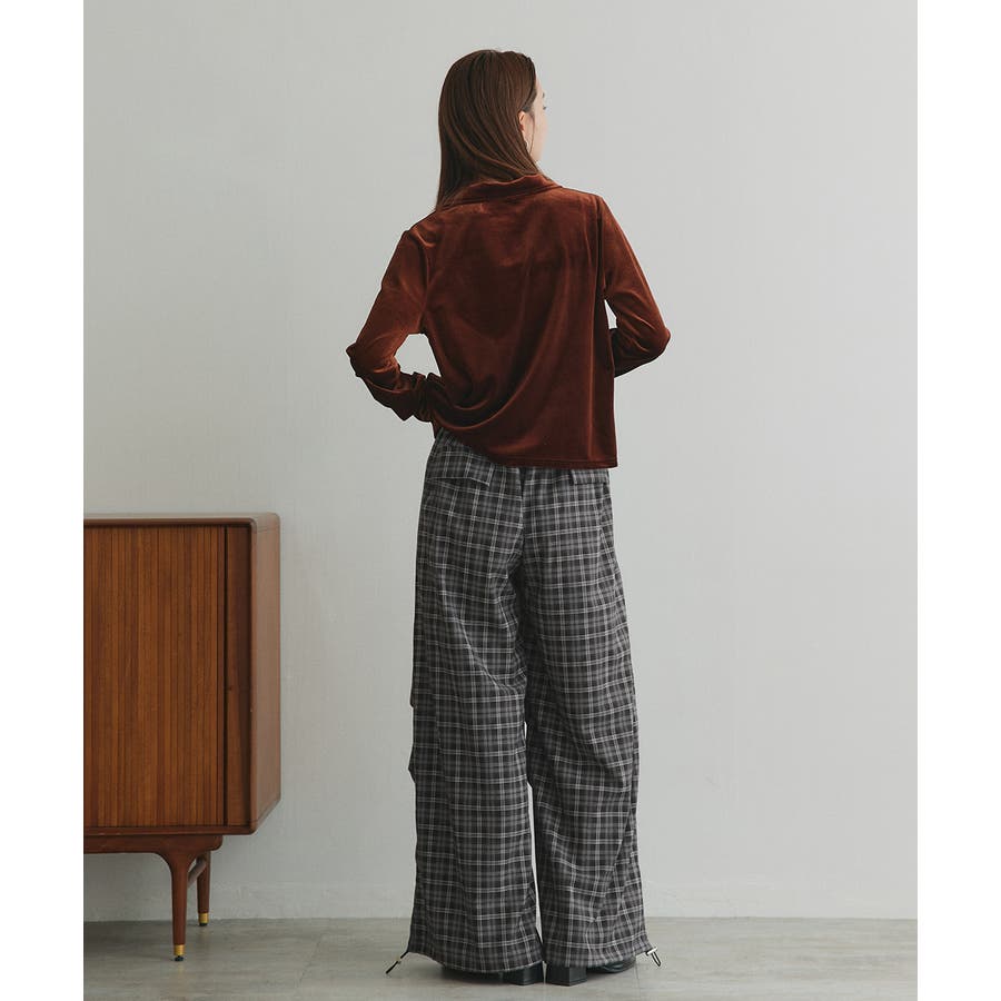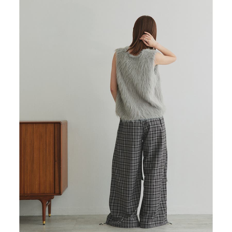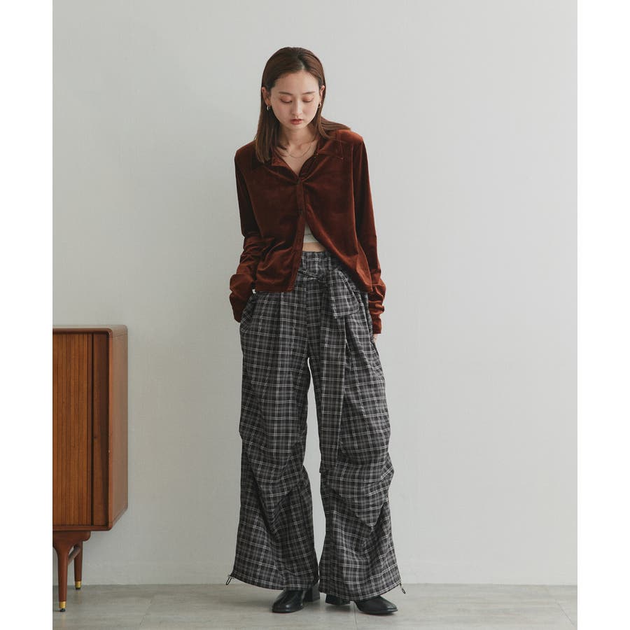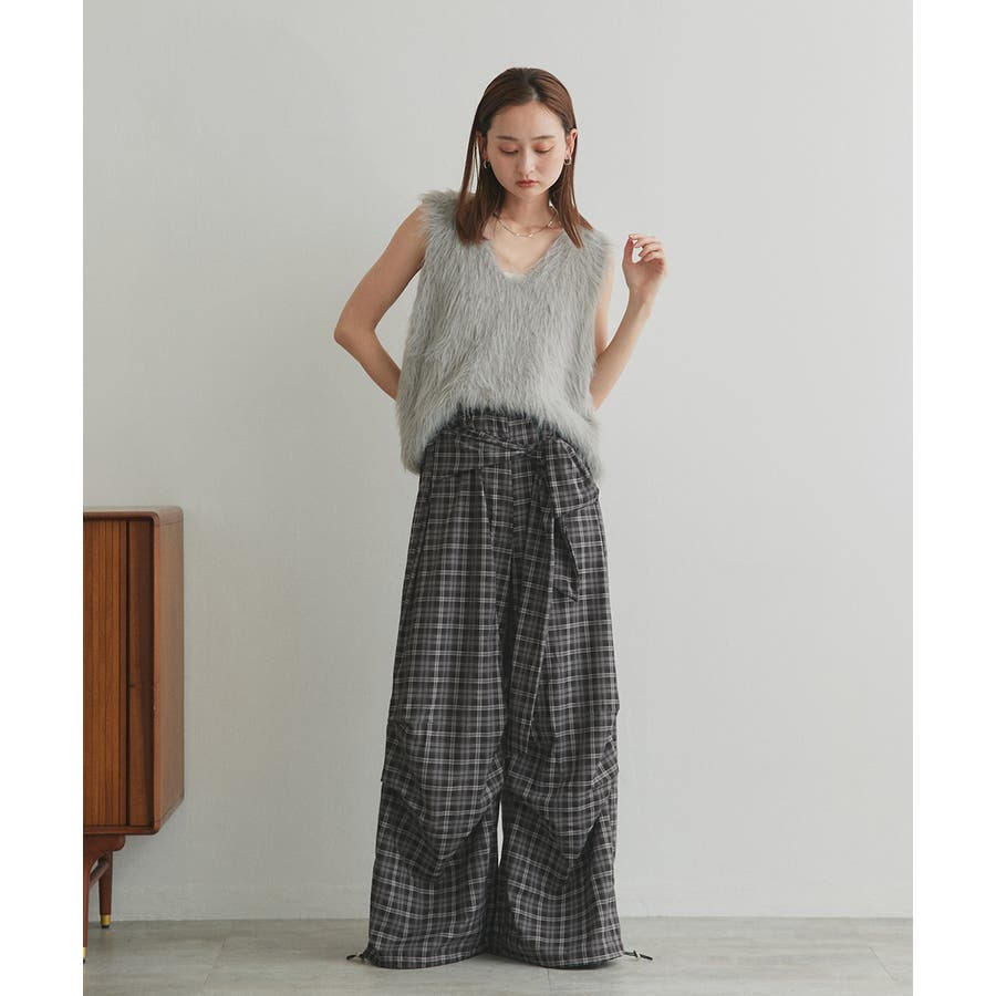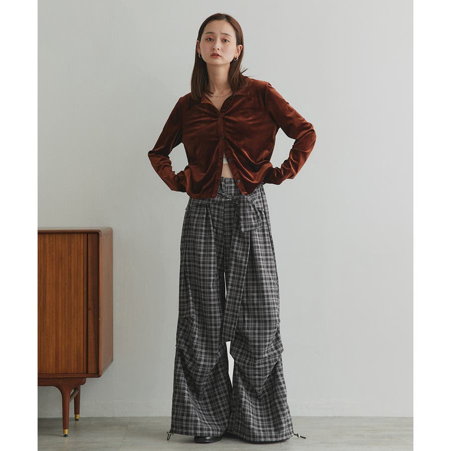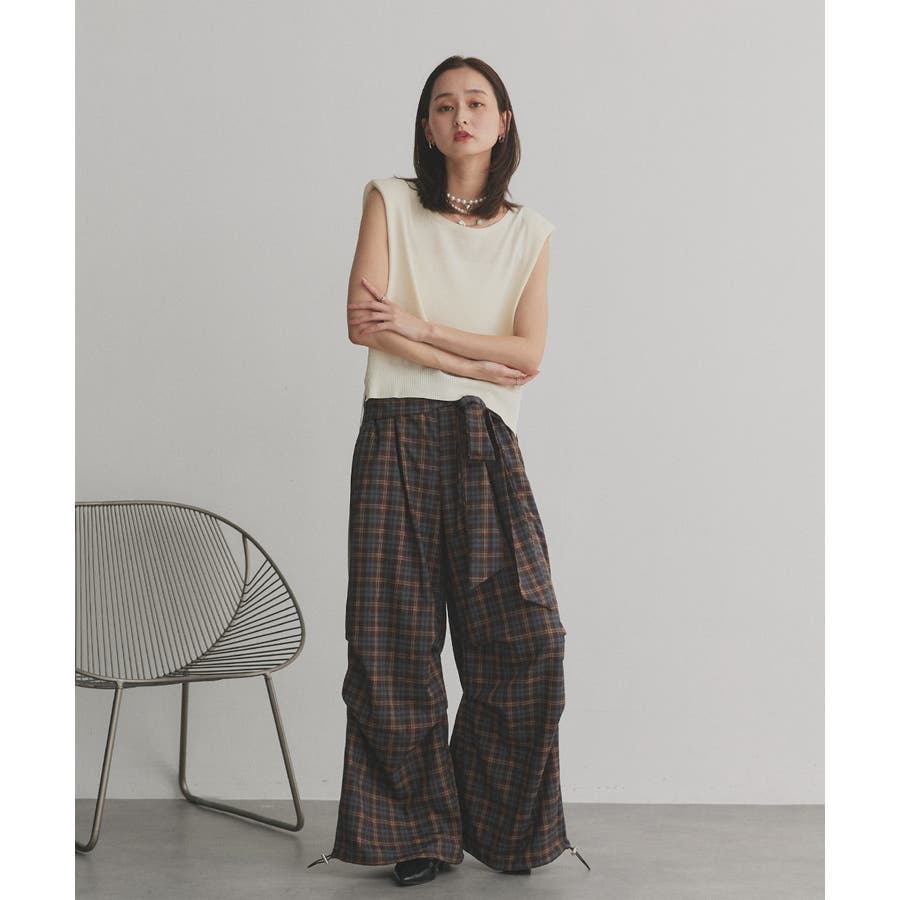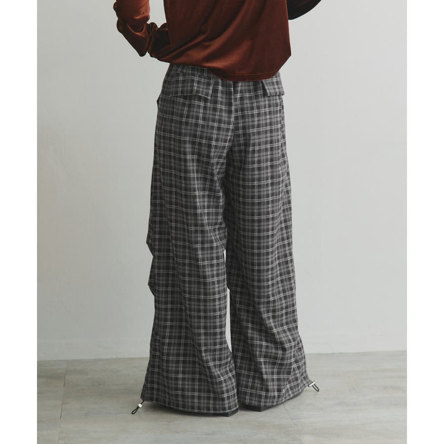 【2025AW新作】ウエストリボンデザインチェックワイドパンツ