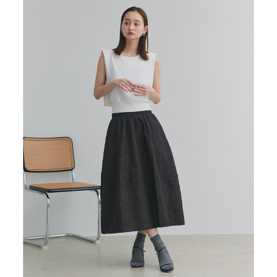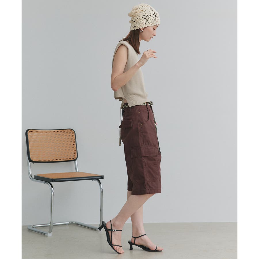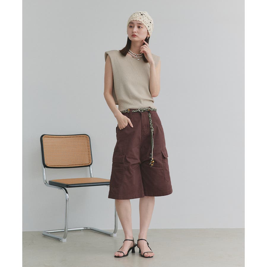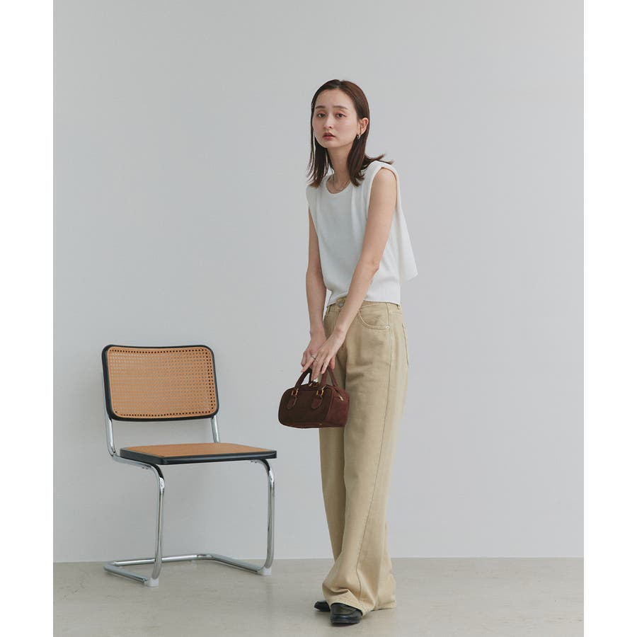 ショート丈×ノースリーブのスッキリとしたシルエットは、ハイウエストのボトムと好相性。