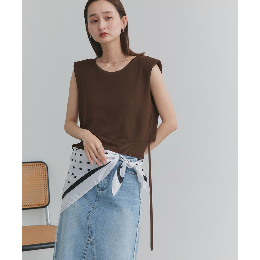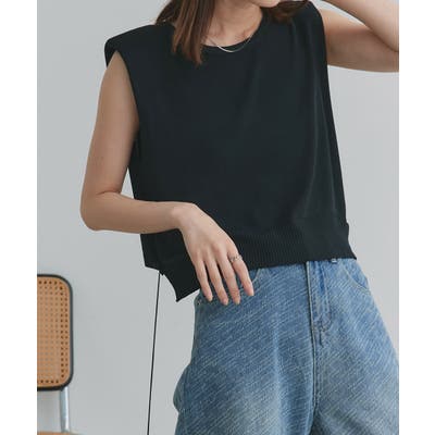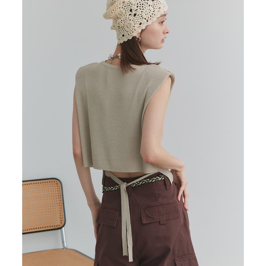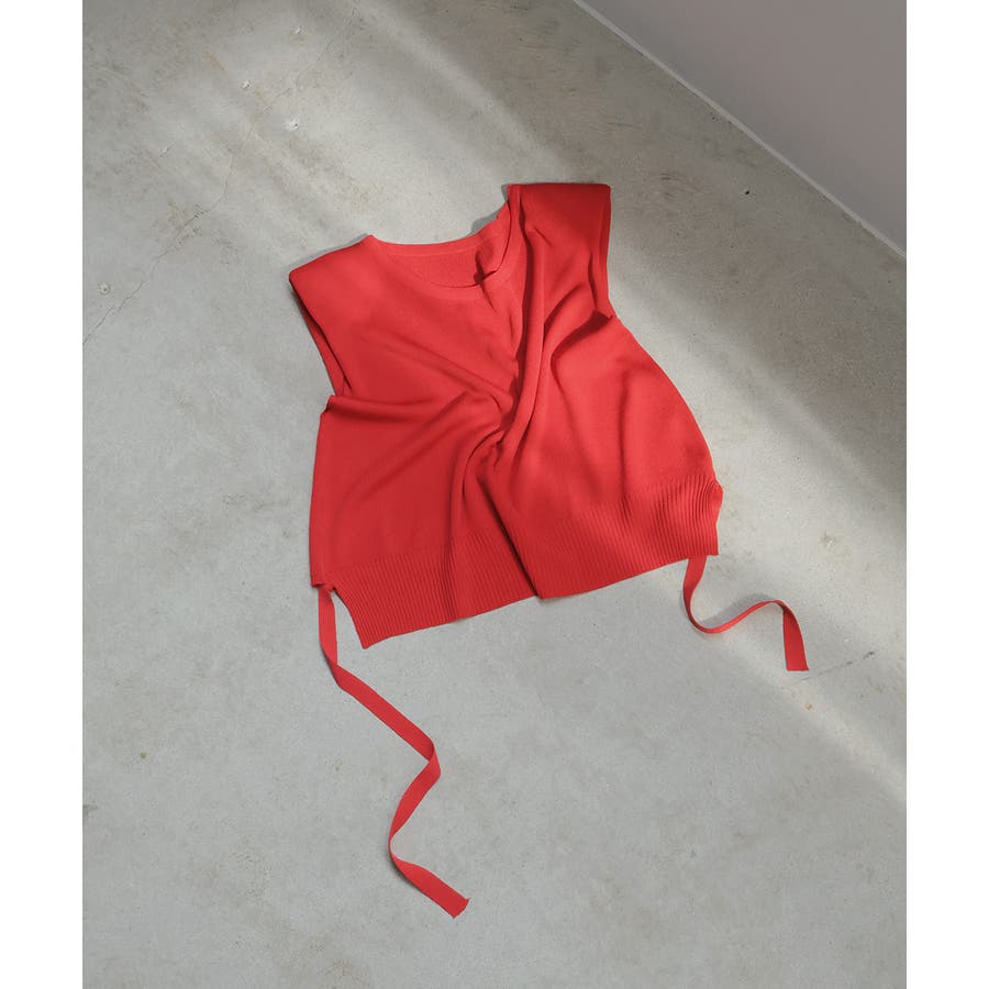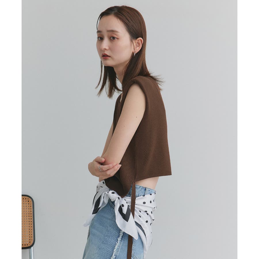 ショート丈リボンノースリーブニット