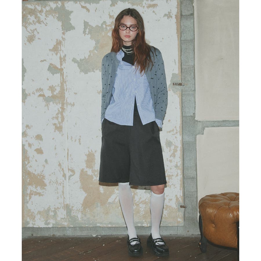 ボタンを2つ程開けて着用すると脚長効果も◎