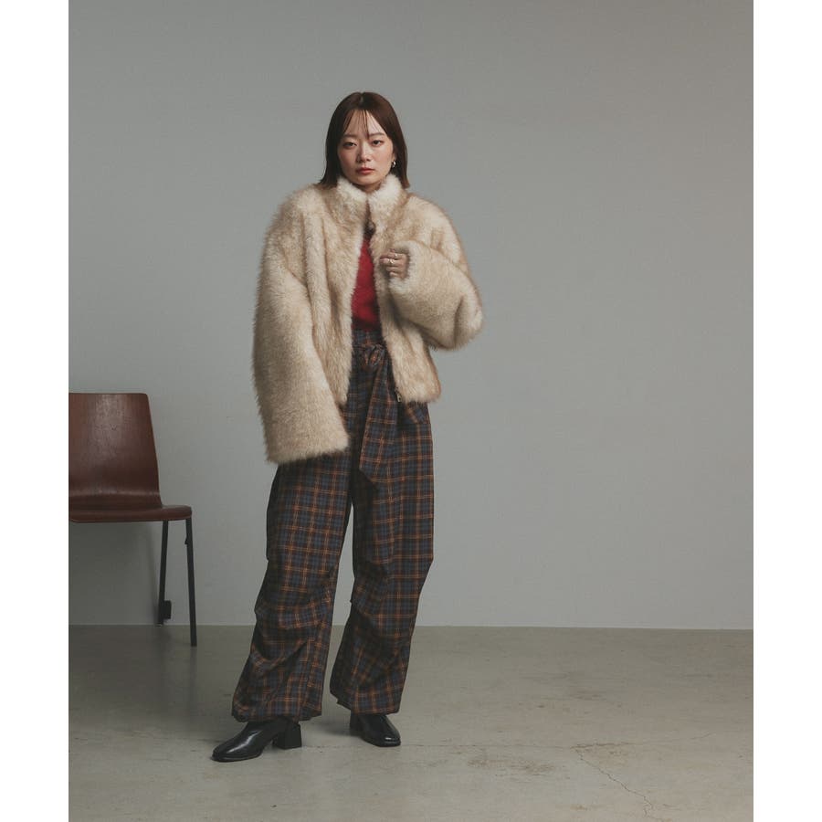・ふんわりボリュームのあるフェイクファーでシーズンムード◎