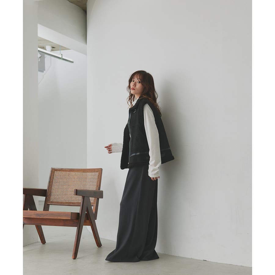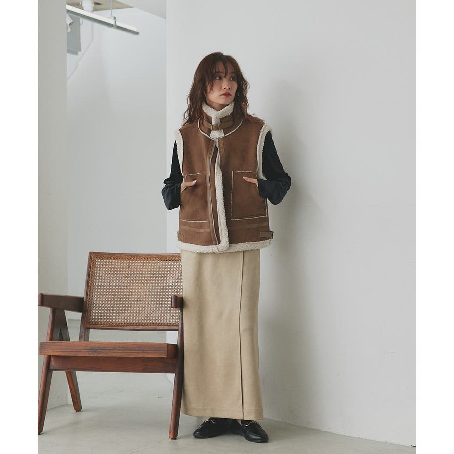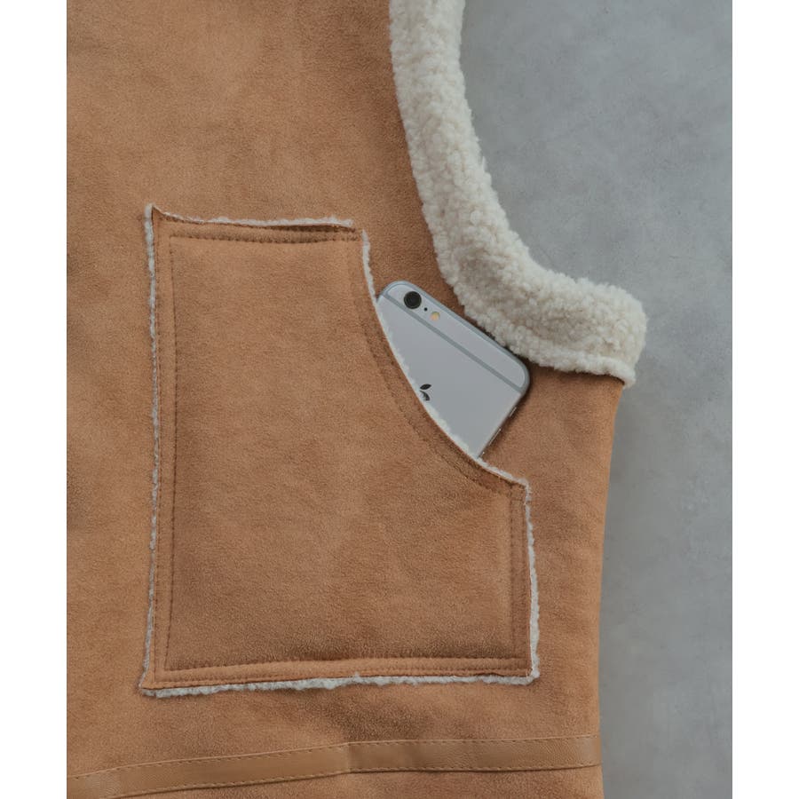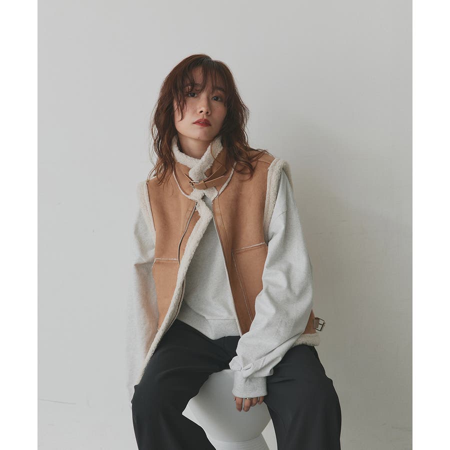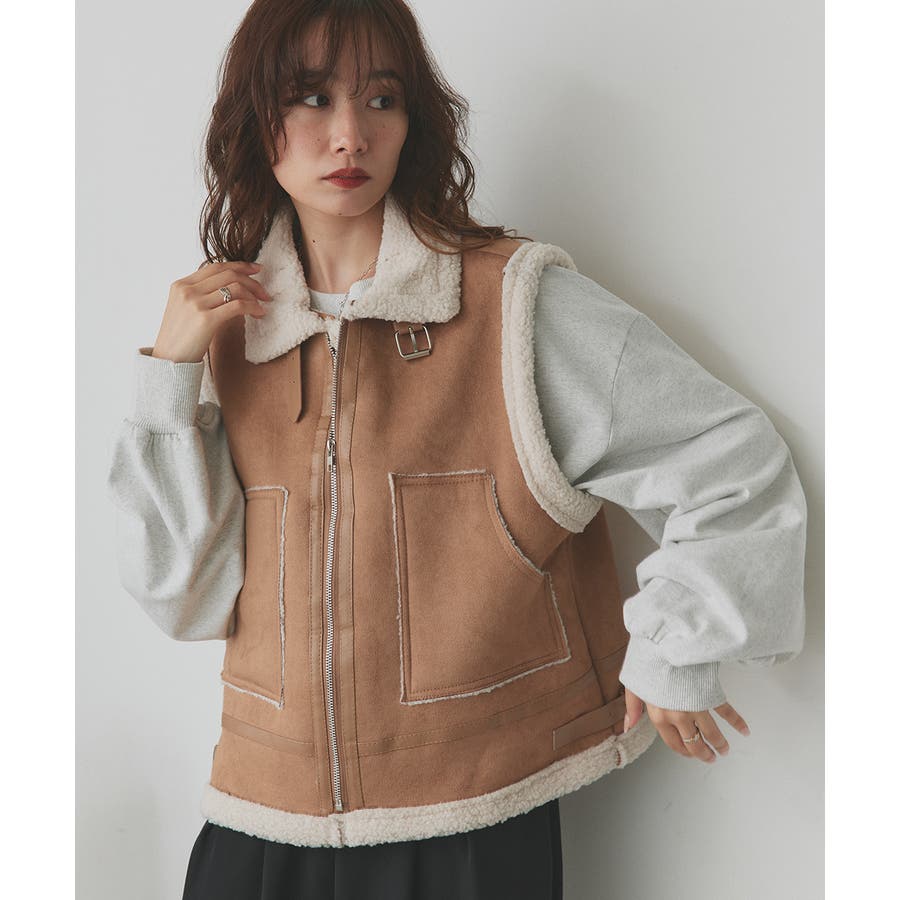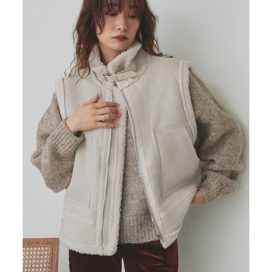秋冬らしい季節感を演出できるフェイクムートン素材のベスト。