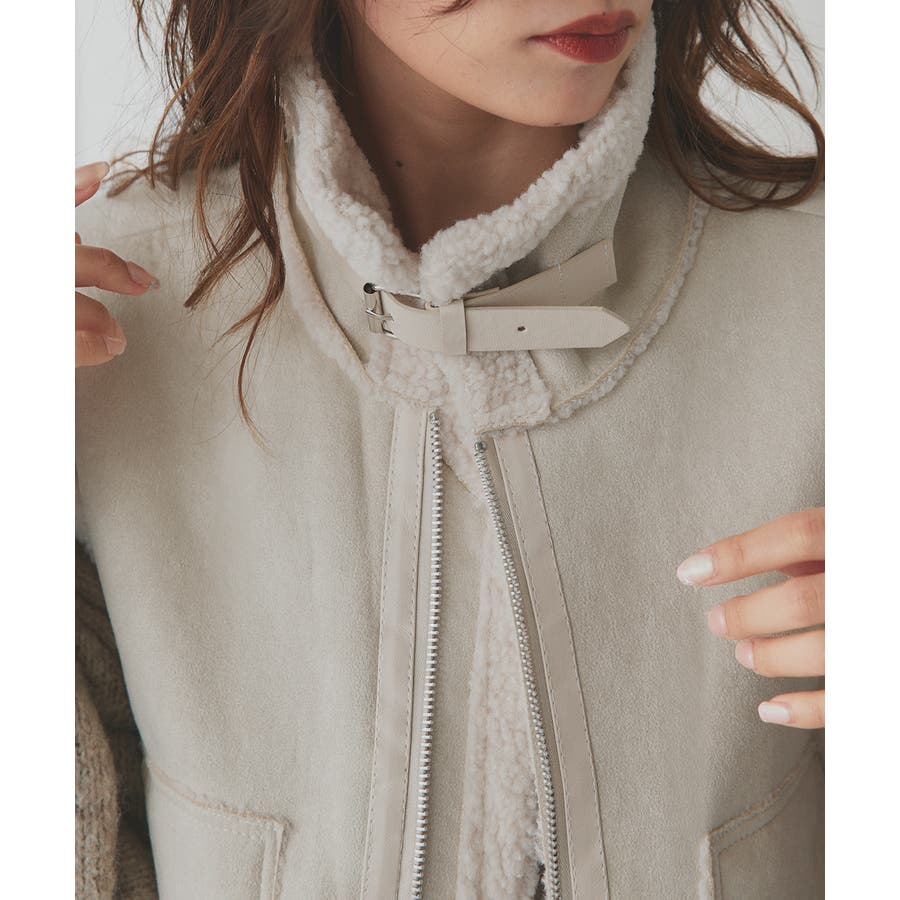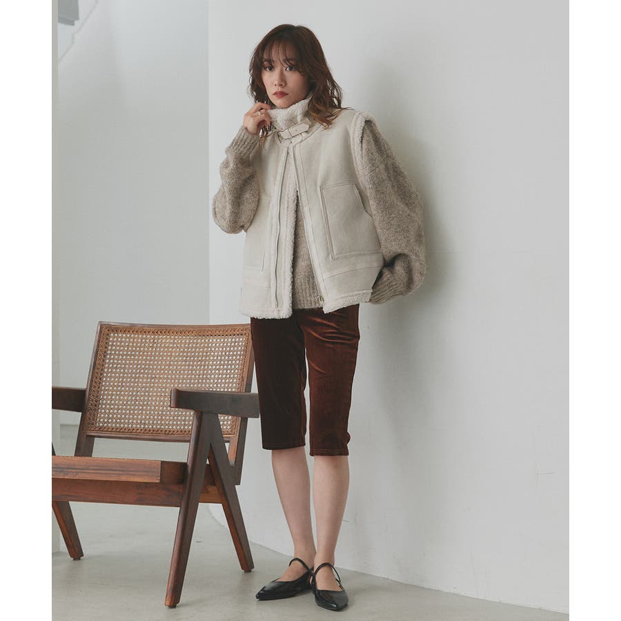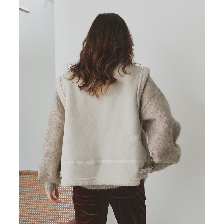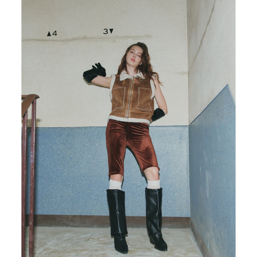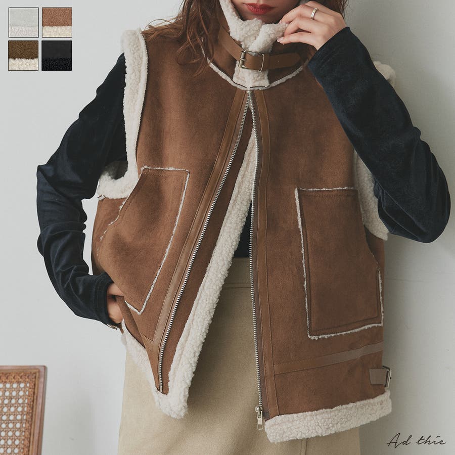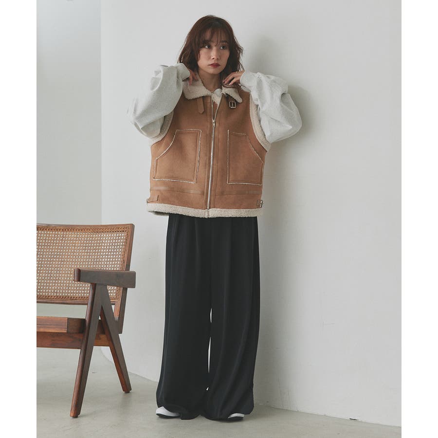 秋冬らしい季節感を演出できるフェイクムートン素材のベスト。