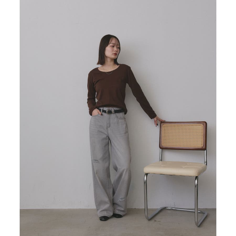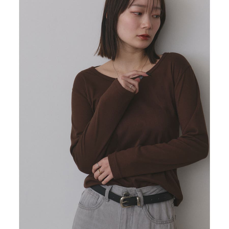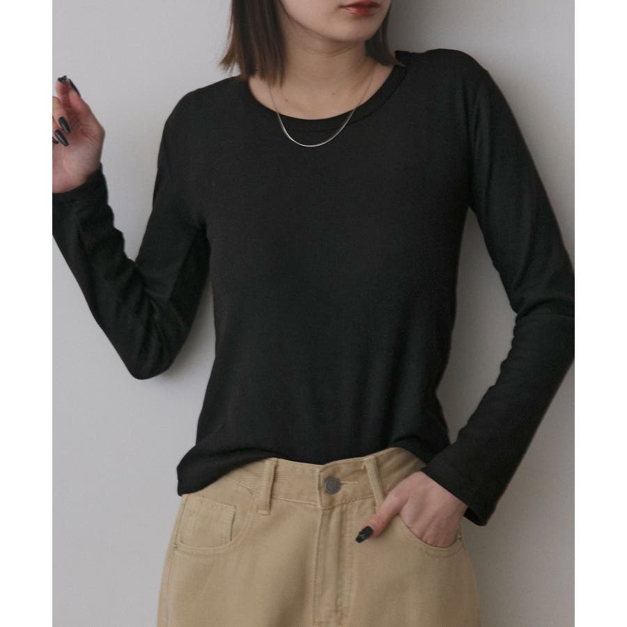 テイストを問わず使えるベーシックなデザインで、1枚でもインナーとしても幅広く活躍します。