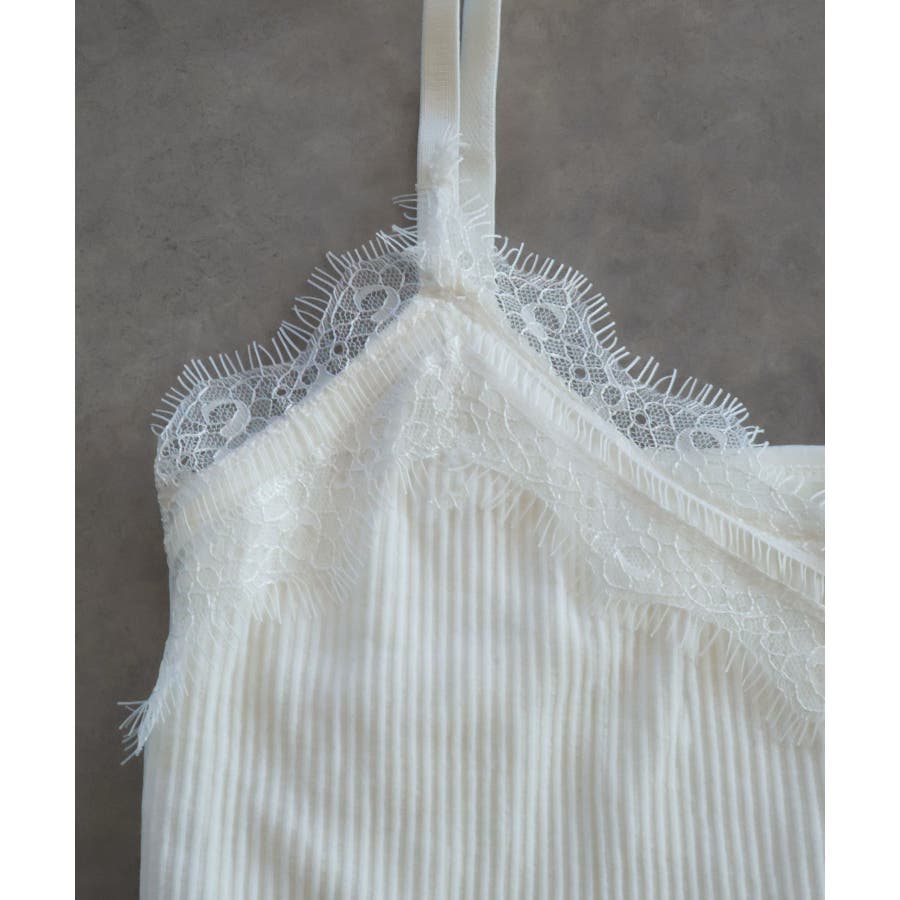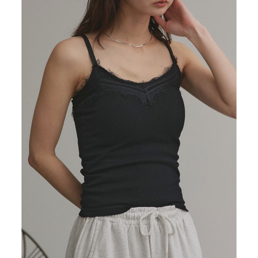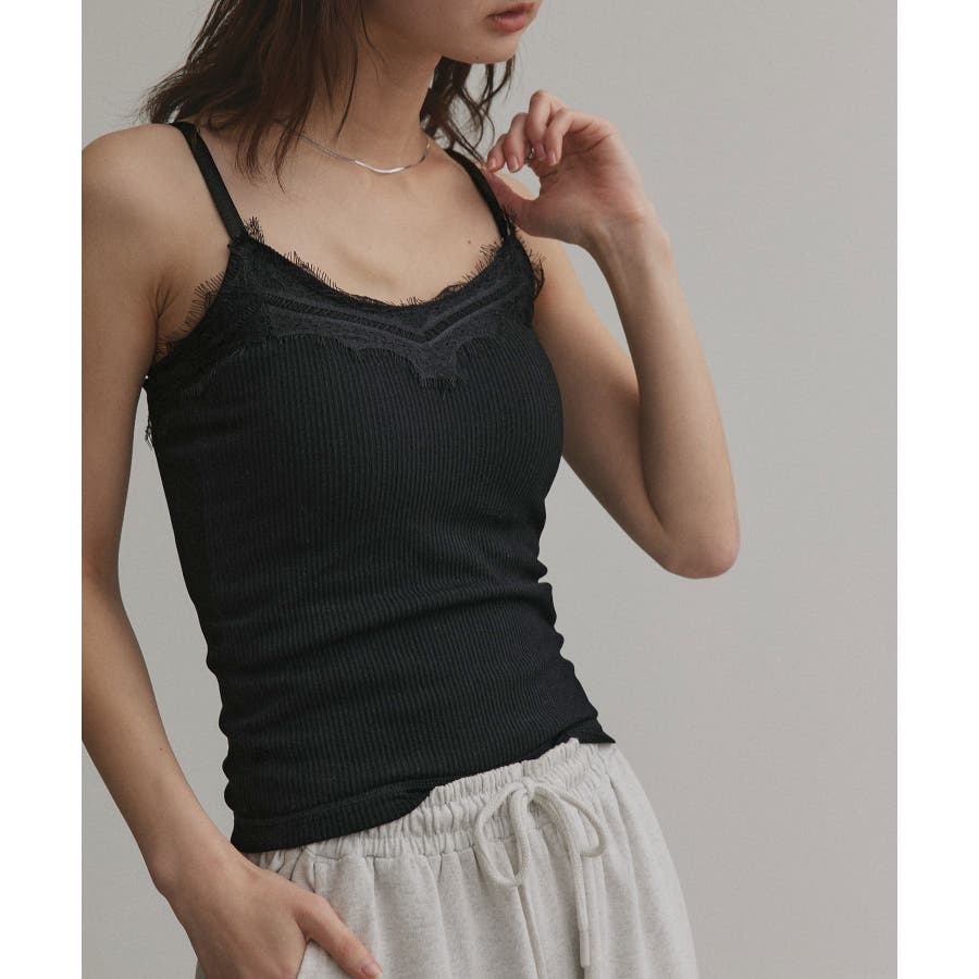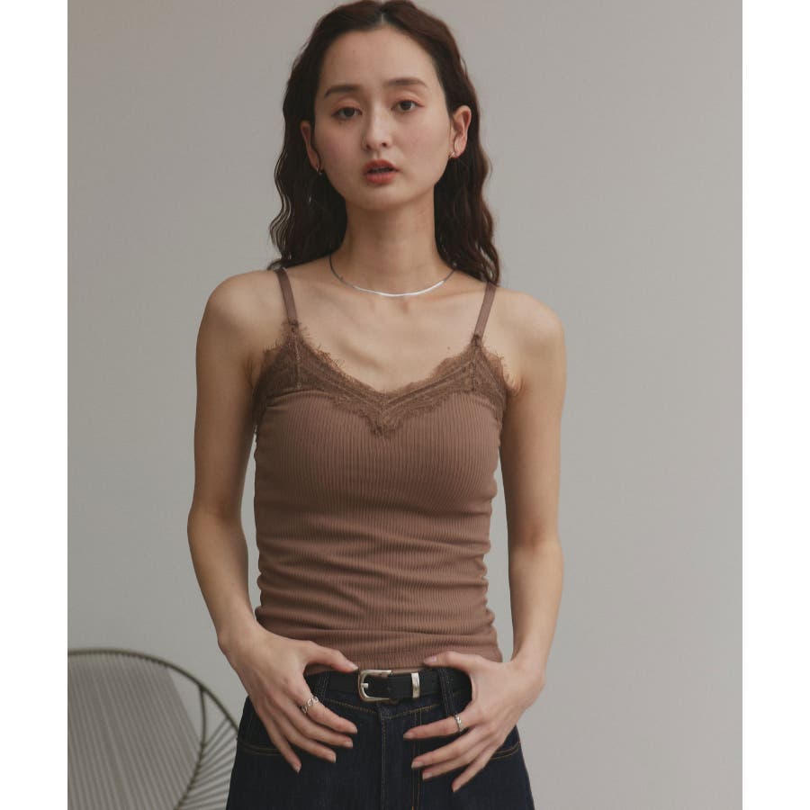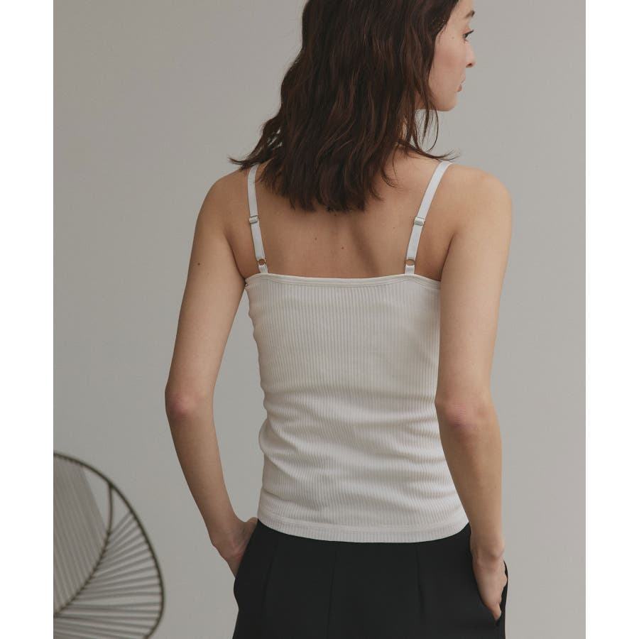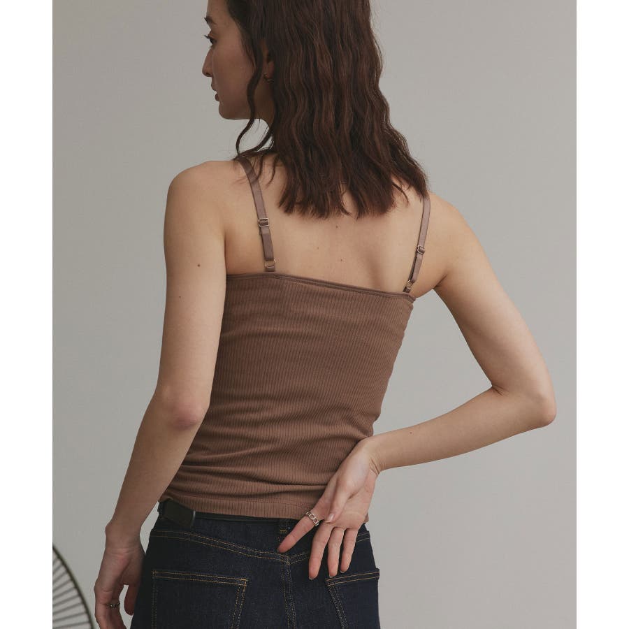 暖かく着用出来るリブキャミソールで、程良いフェミニンさを兼ね備えた1枚。