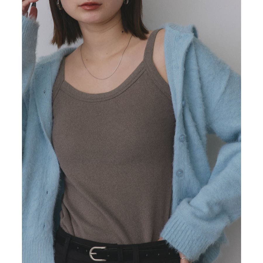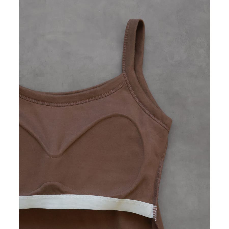 裏側がほんのり微起毛になった肌当たりの優しいカップ付きキャミソール。