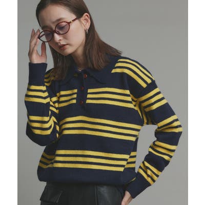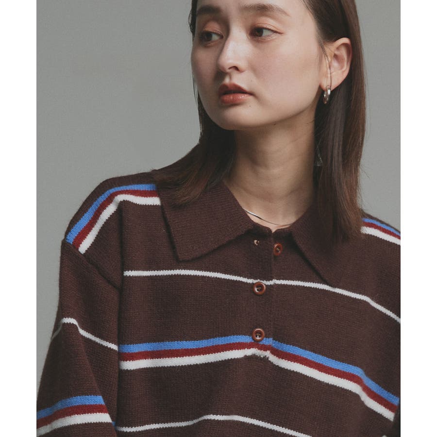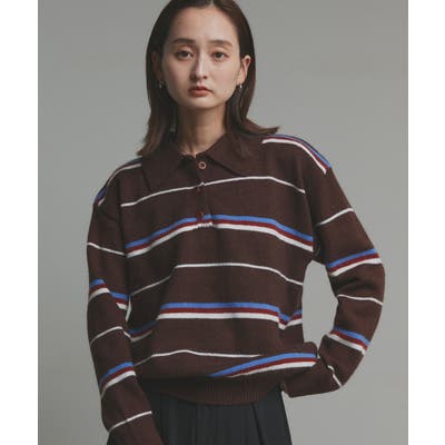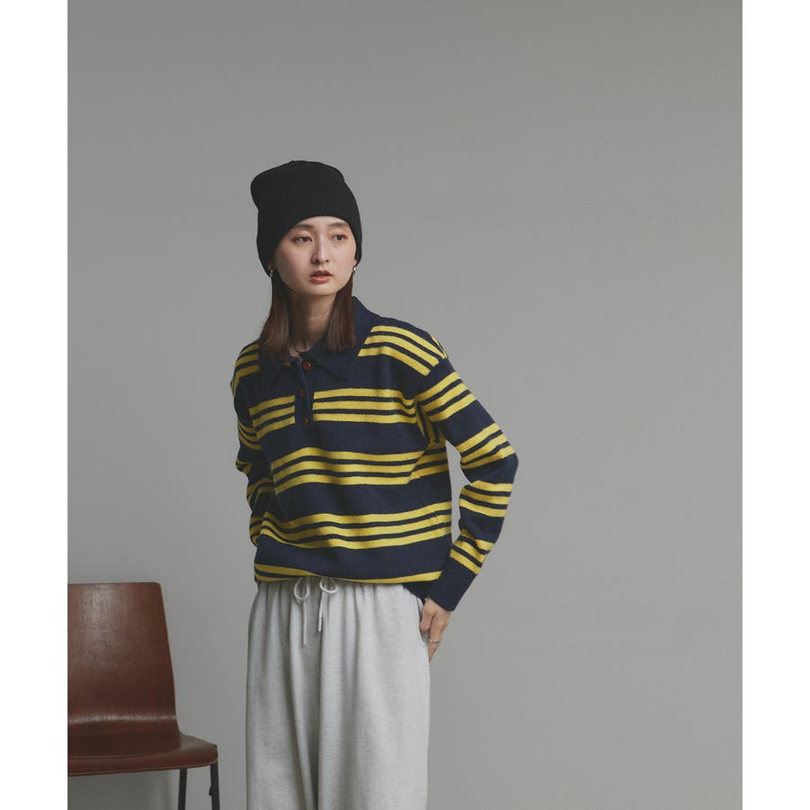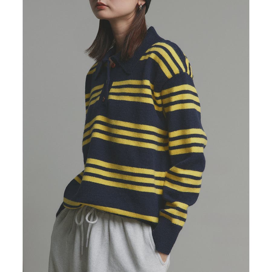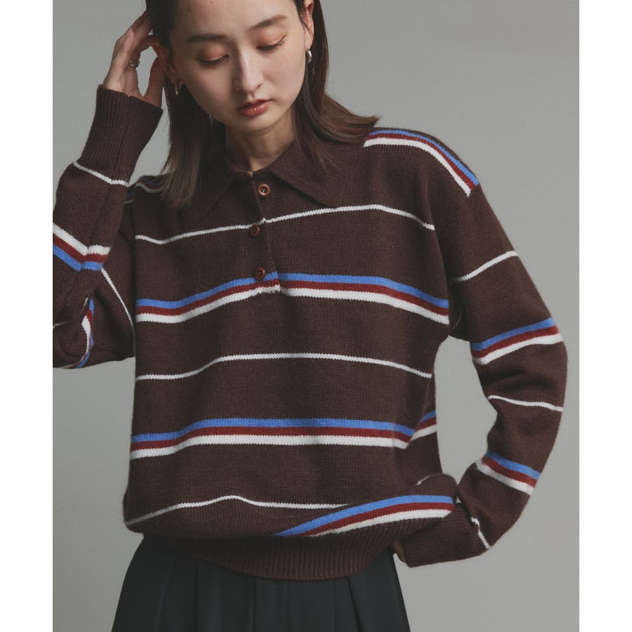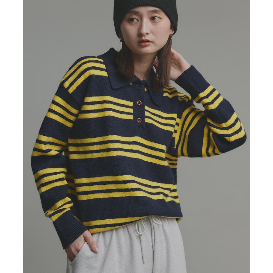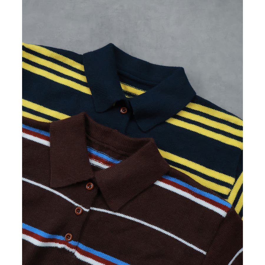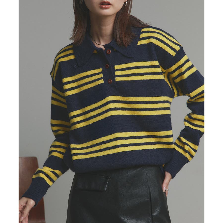 カラーバランスにこだわったマルチボーダー柄が目を惹くポロニットです。