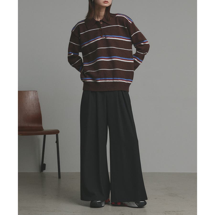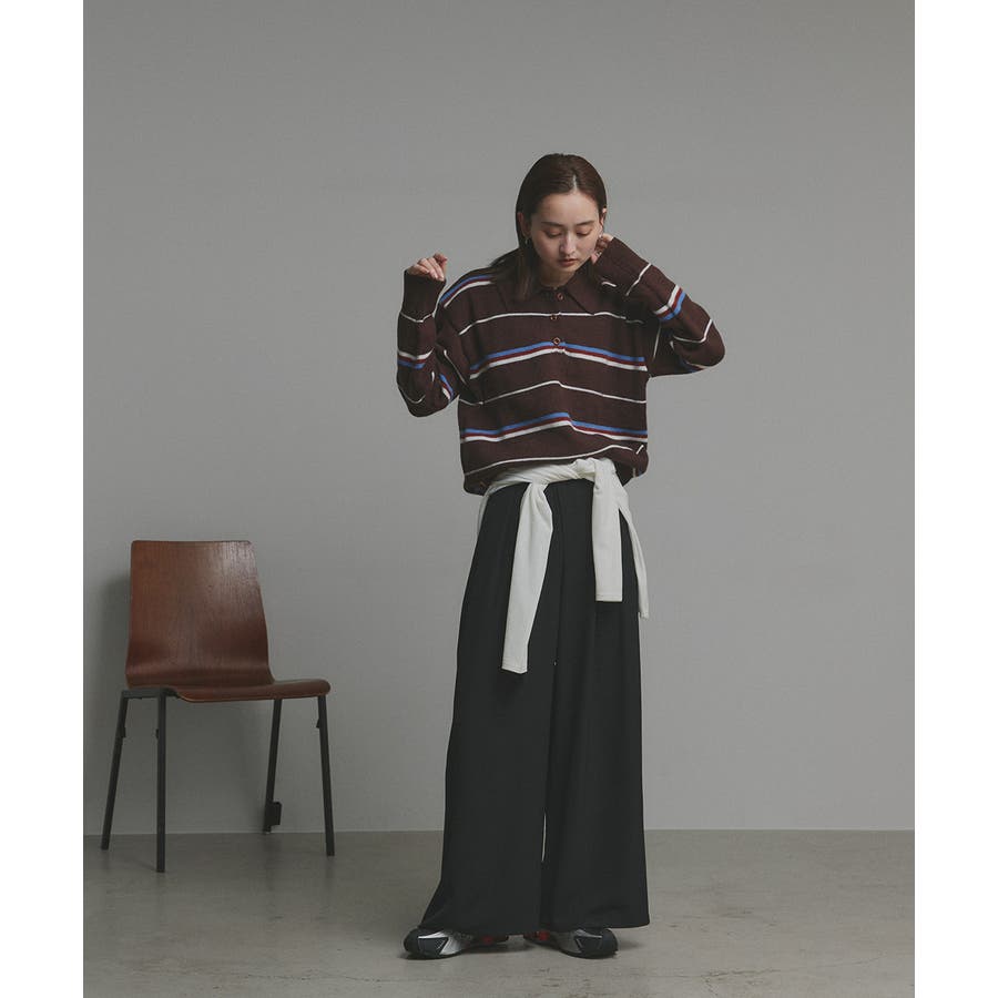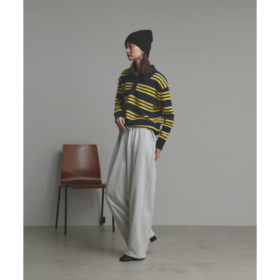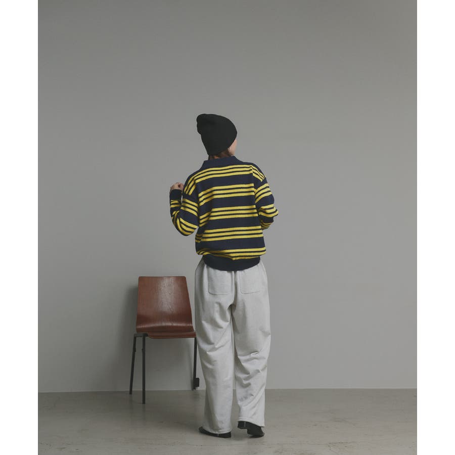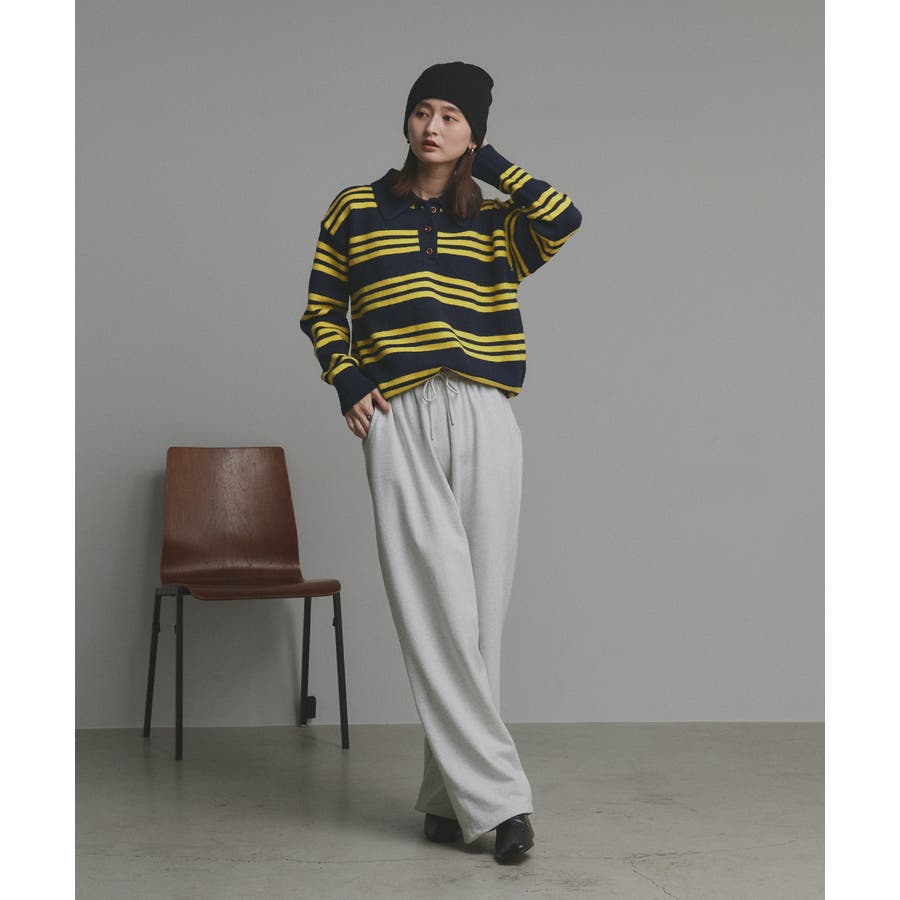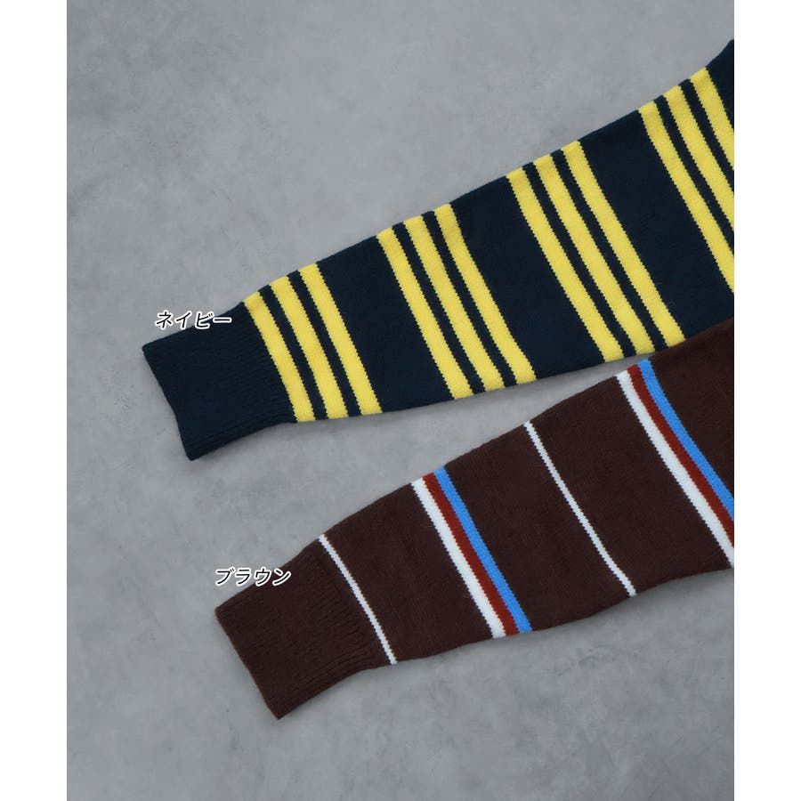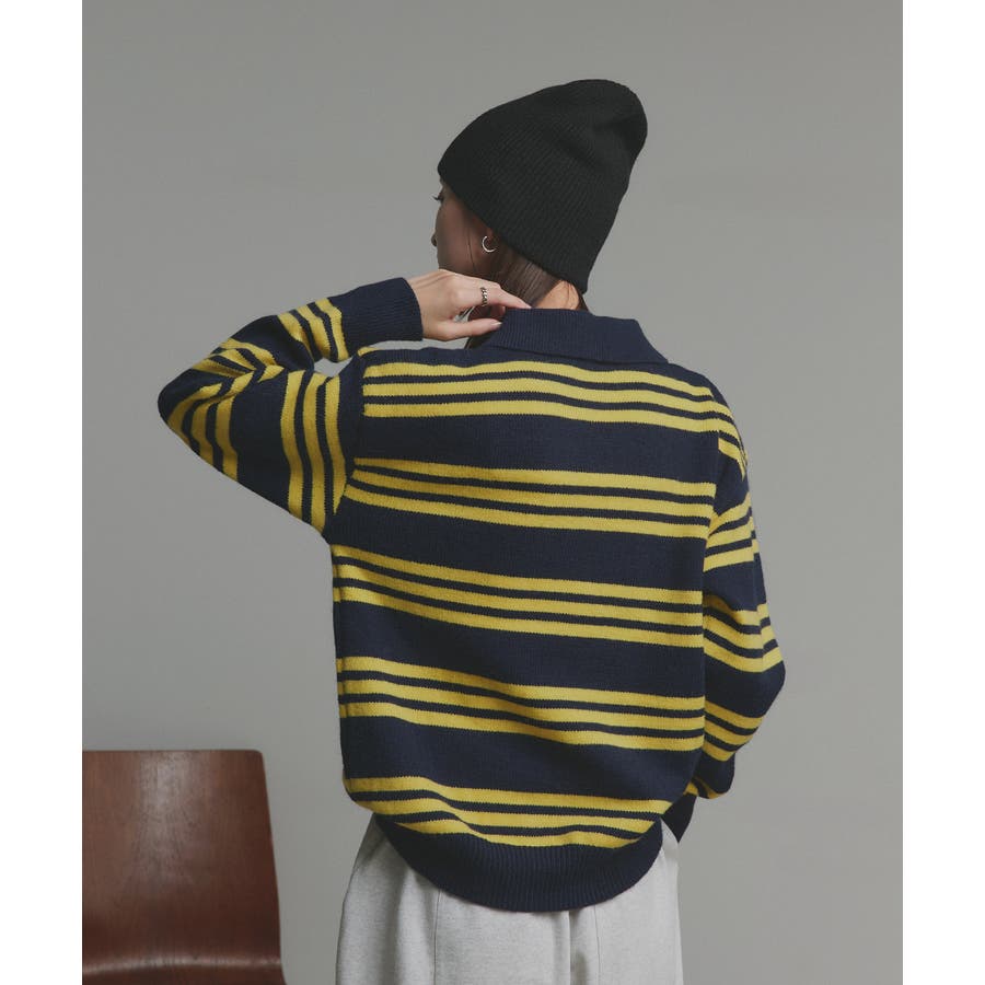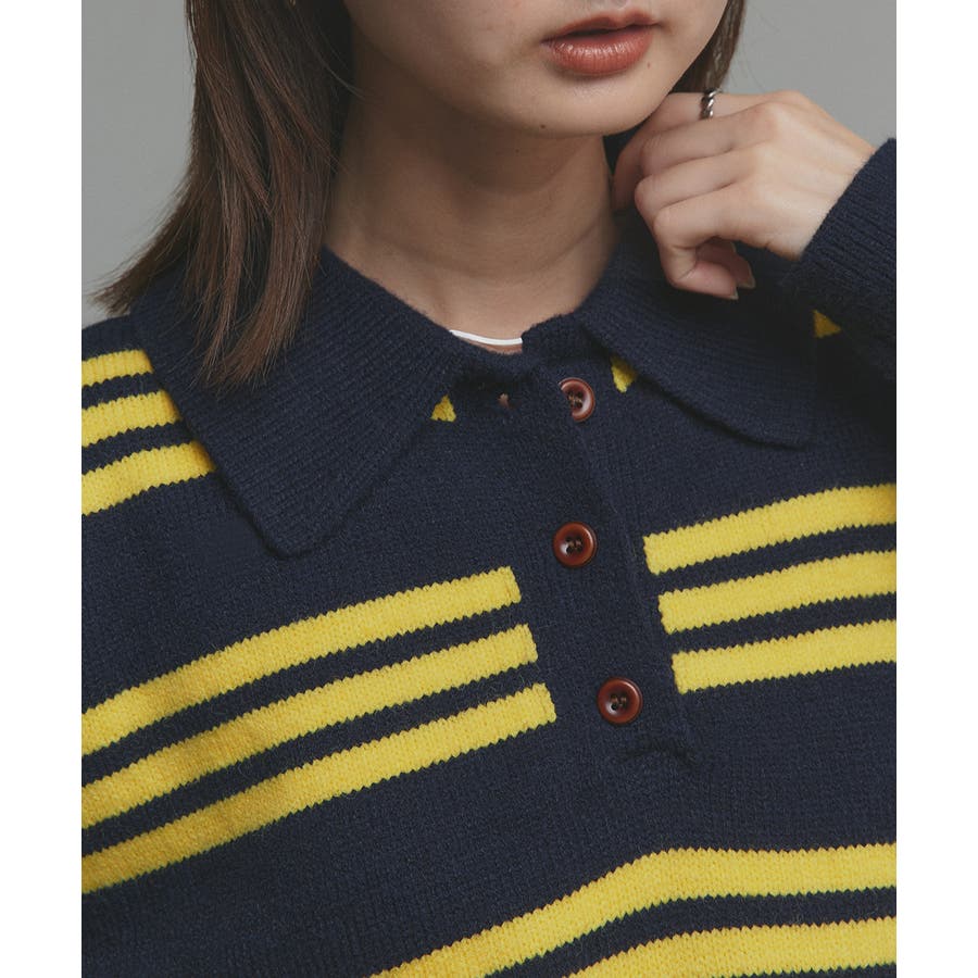 カラーバランスにこだわったマルチボーダー柄が目を惹くポロニットです。