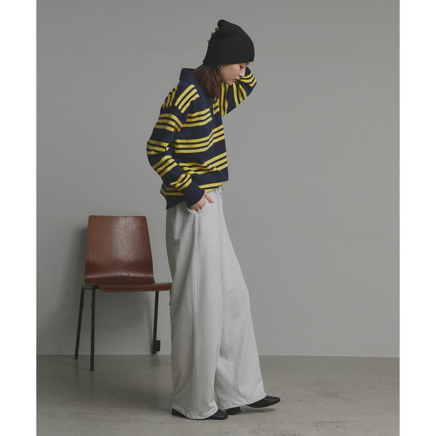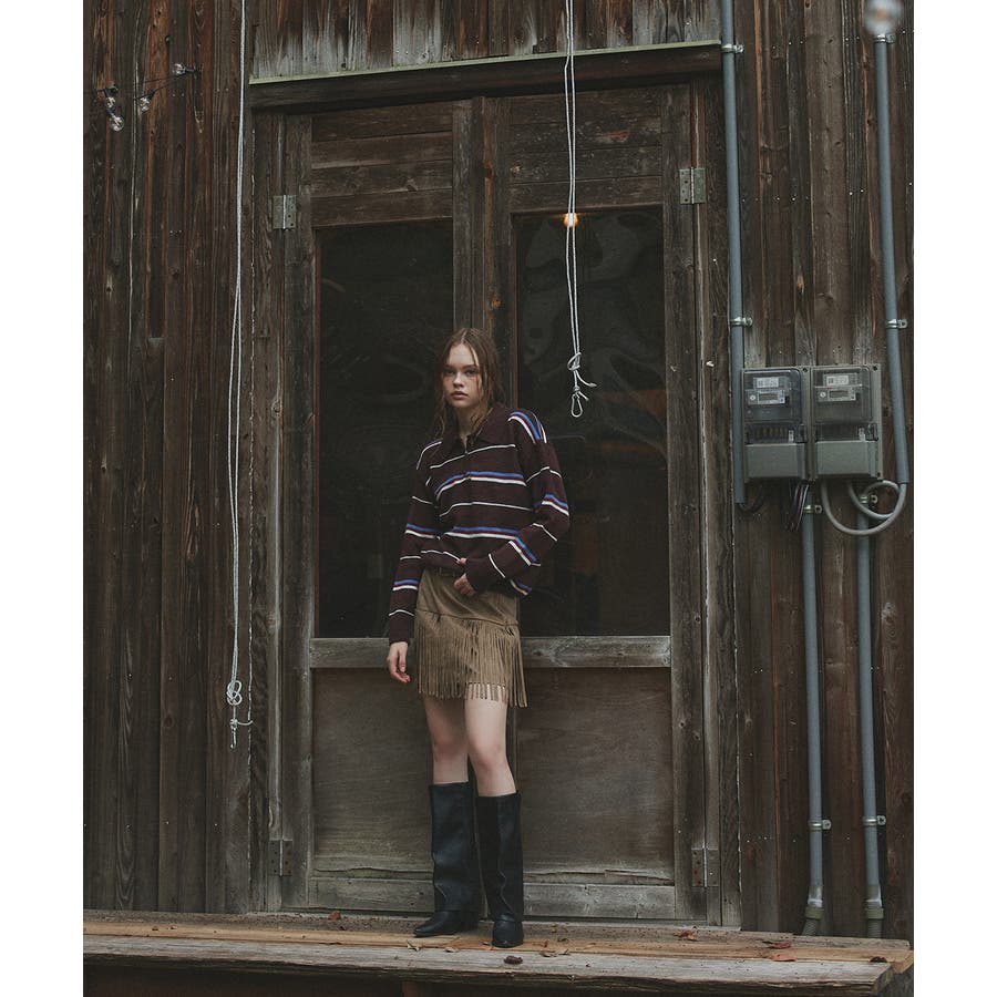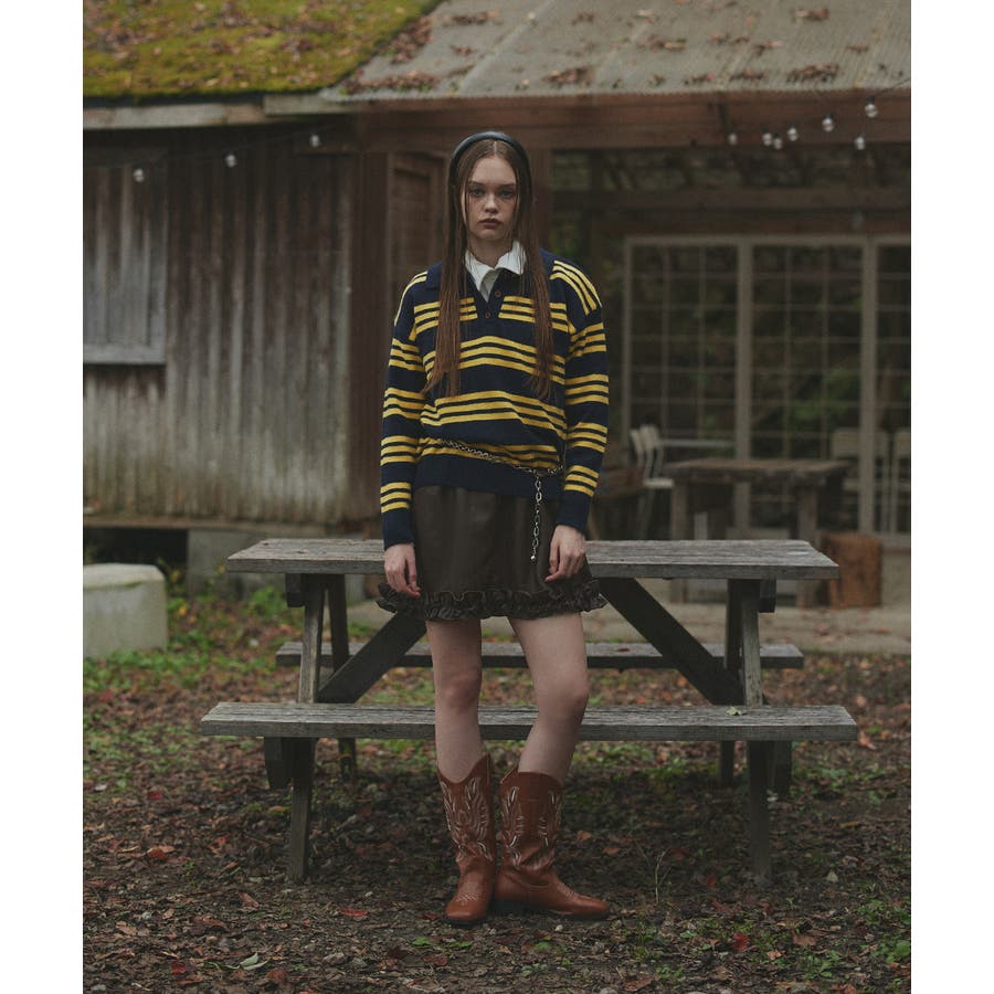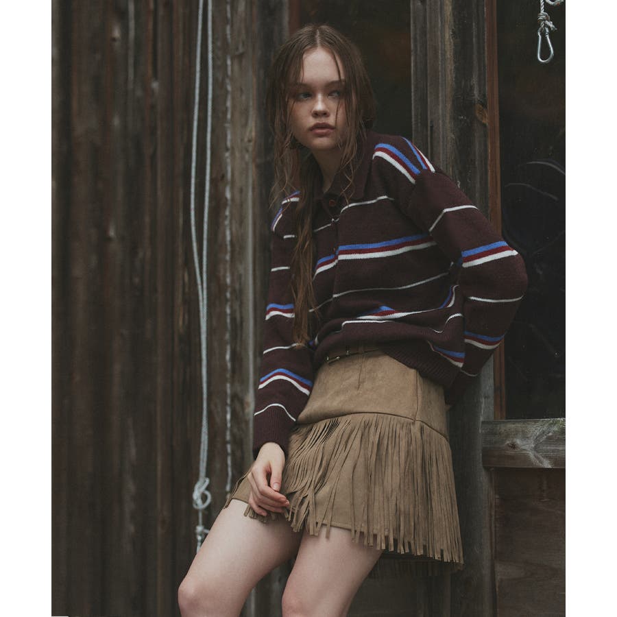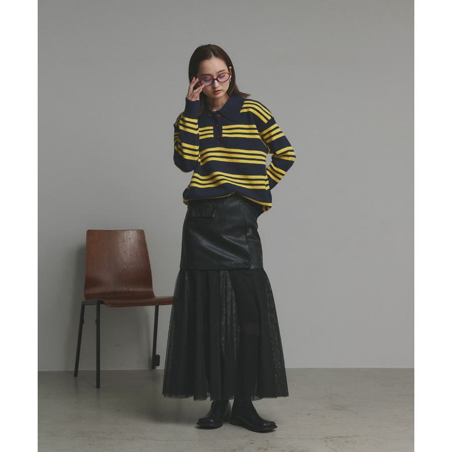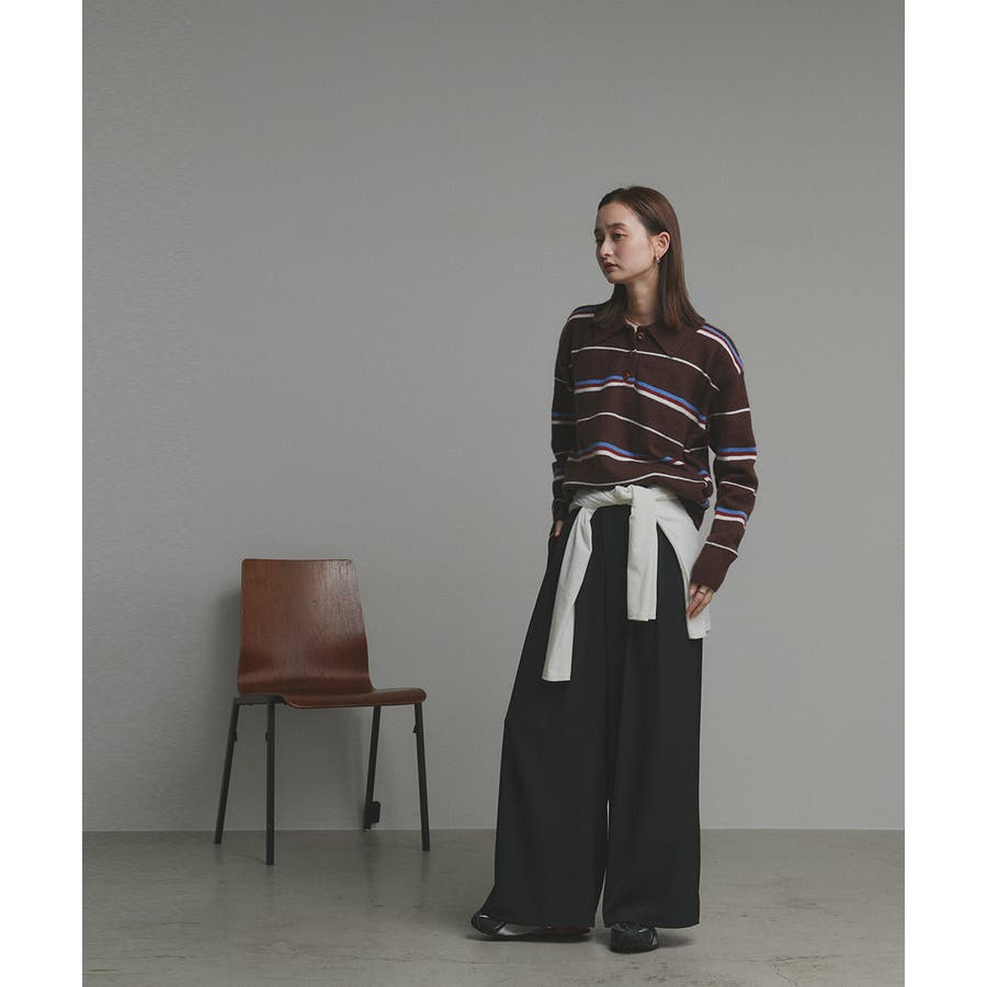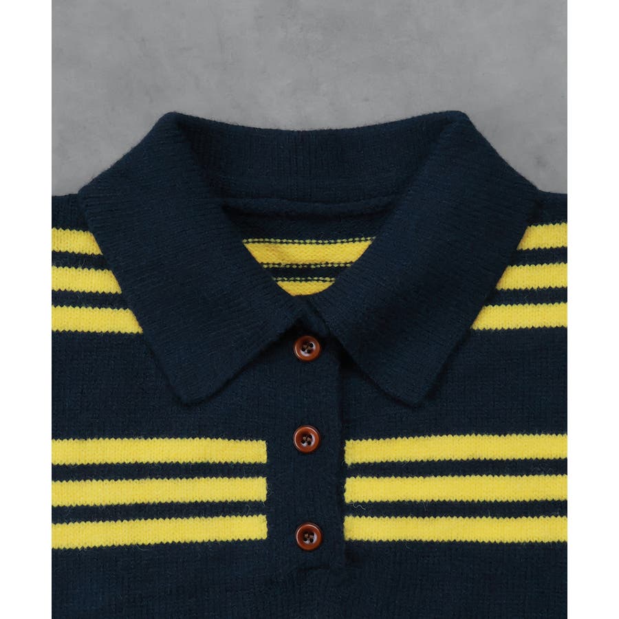 カラーバランスにこだわったマルチボーダー柄が目を惹くポロニットです。