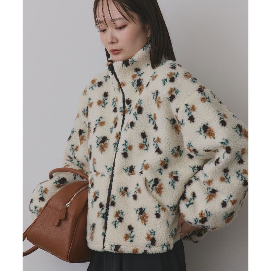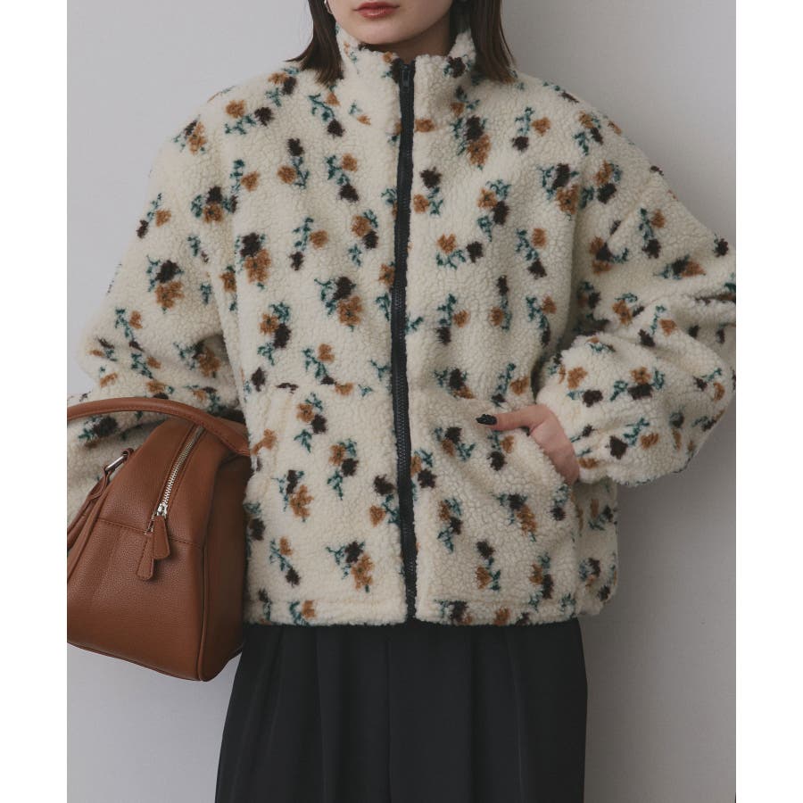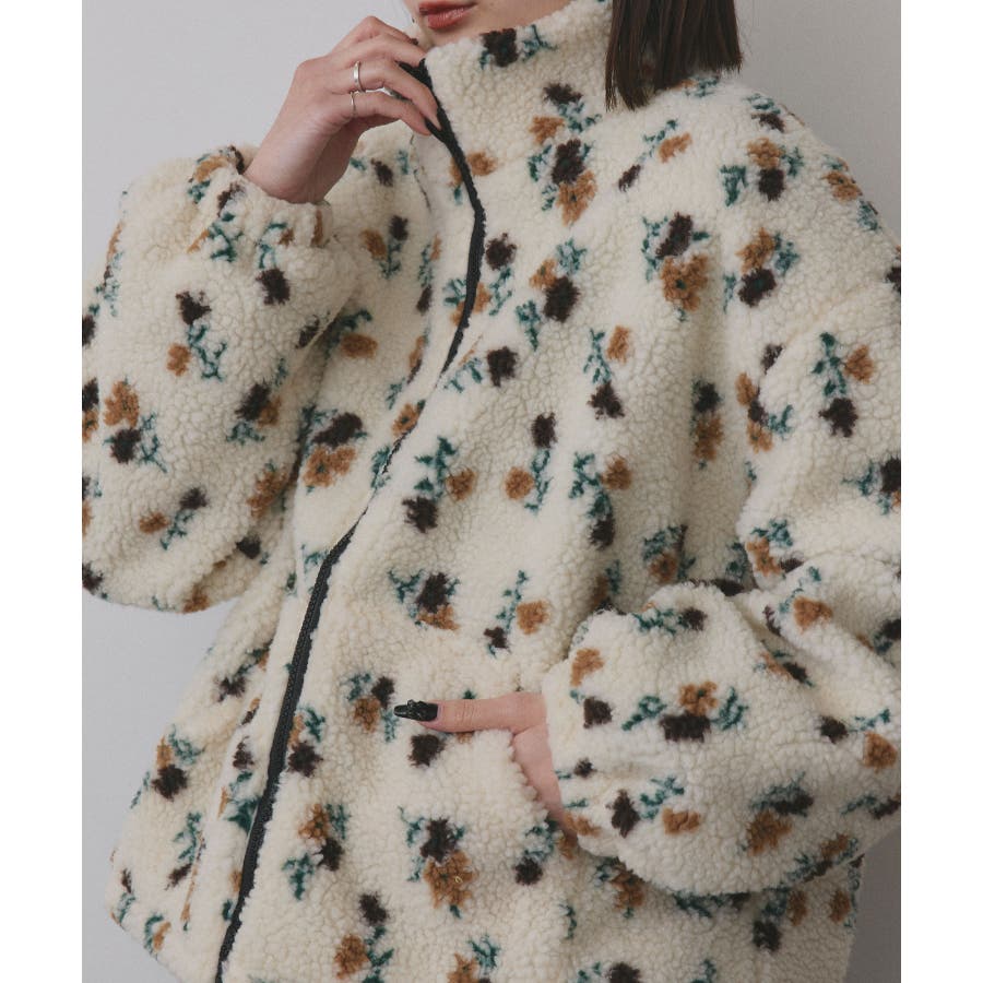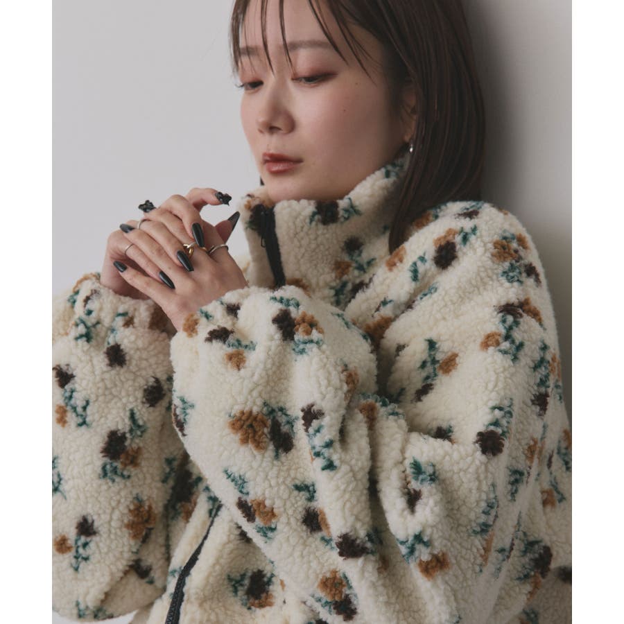 柔らかく軽いボア素材に、ほんのりフェミニンな花柄をあしらった主役ブルゾンです。