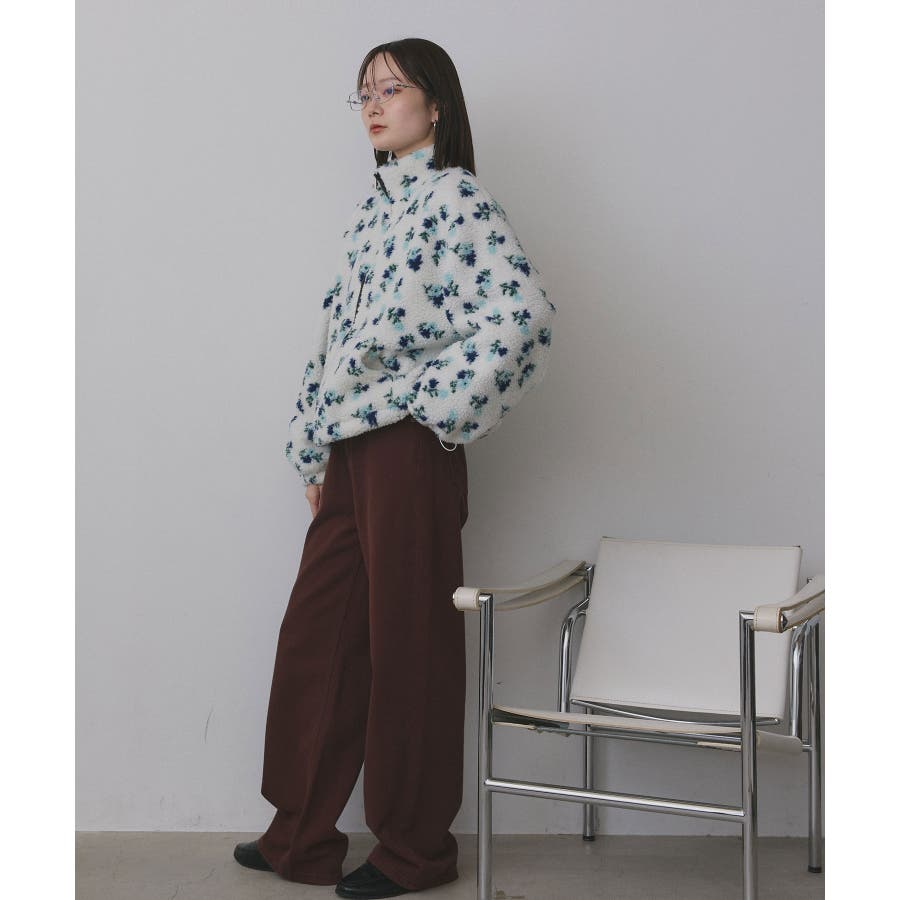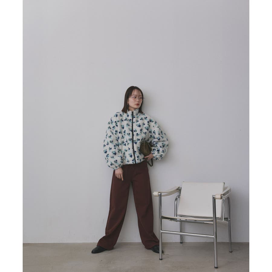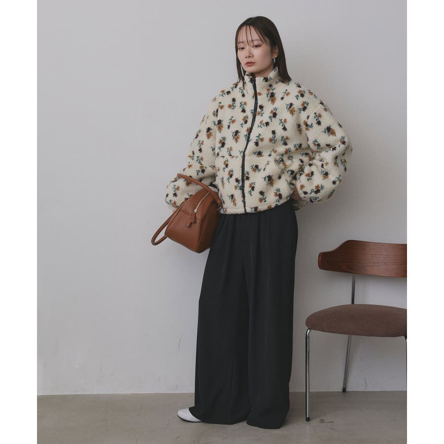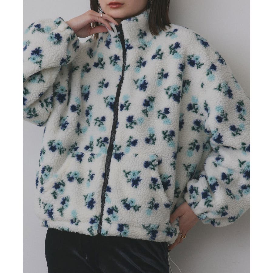 柔らかく軽いボア素材に、ほんのりフェミニンな花柄をあしらった主役ブルゾンです。